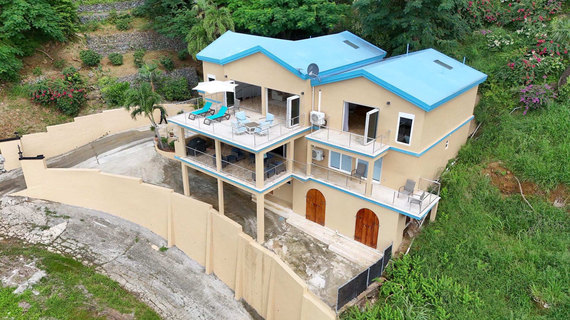 Enjoy Sweeping Southward Views over Vieques and Culebra from this Stylishly Renovated Four Bedroom Wintberg Home. Solidly built, and gut renovated, this centrally located family home has high end appliances, a beautiful waterfall island, amazing staircase and open concept living spaces. Split AC units in every room, automatic 30kw generator, separate utility room and UV water filtration system round out the systems. Private and convenient.