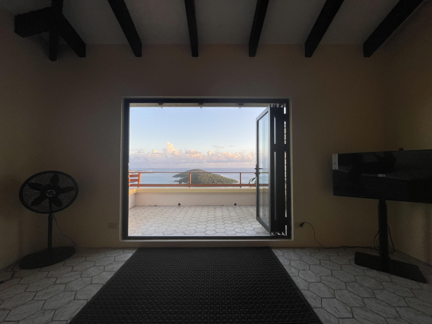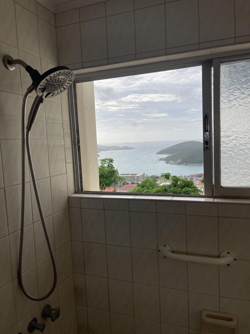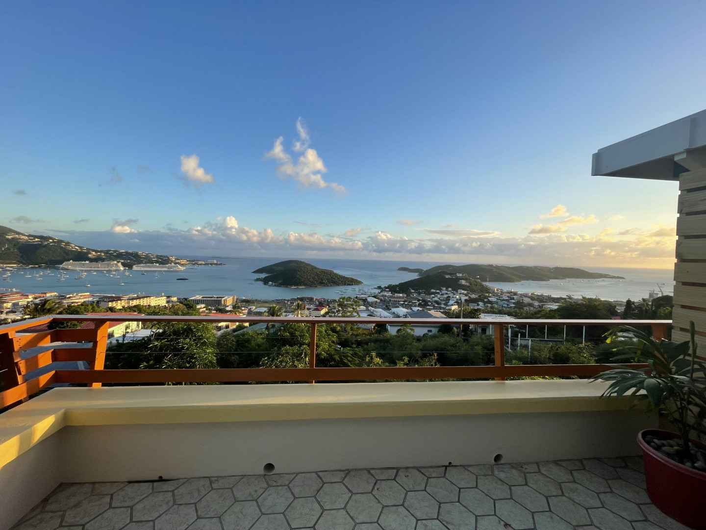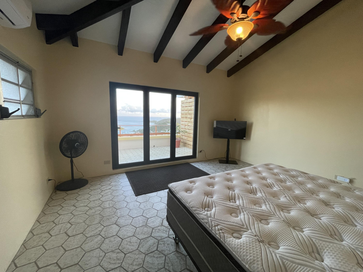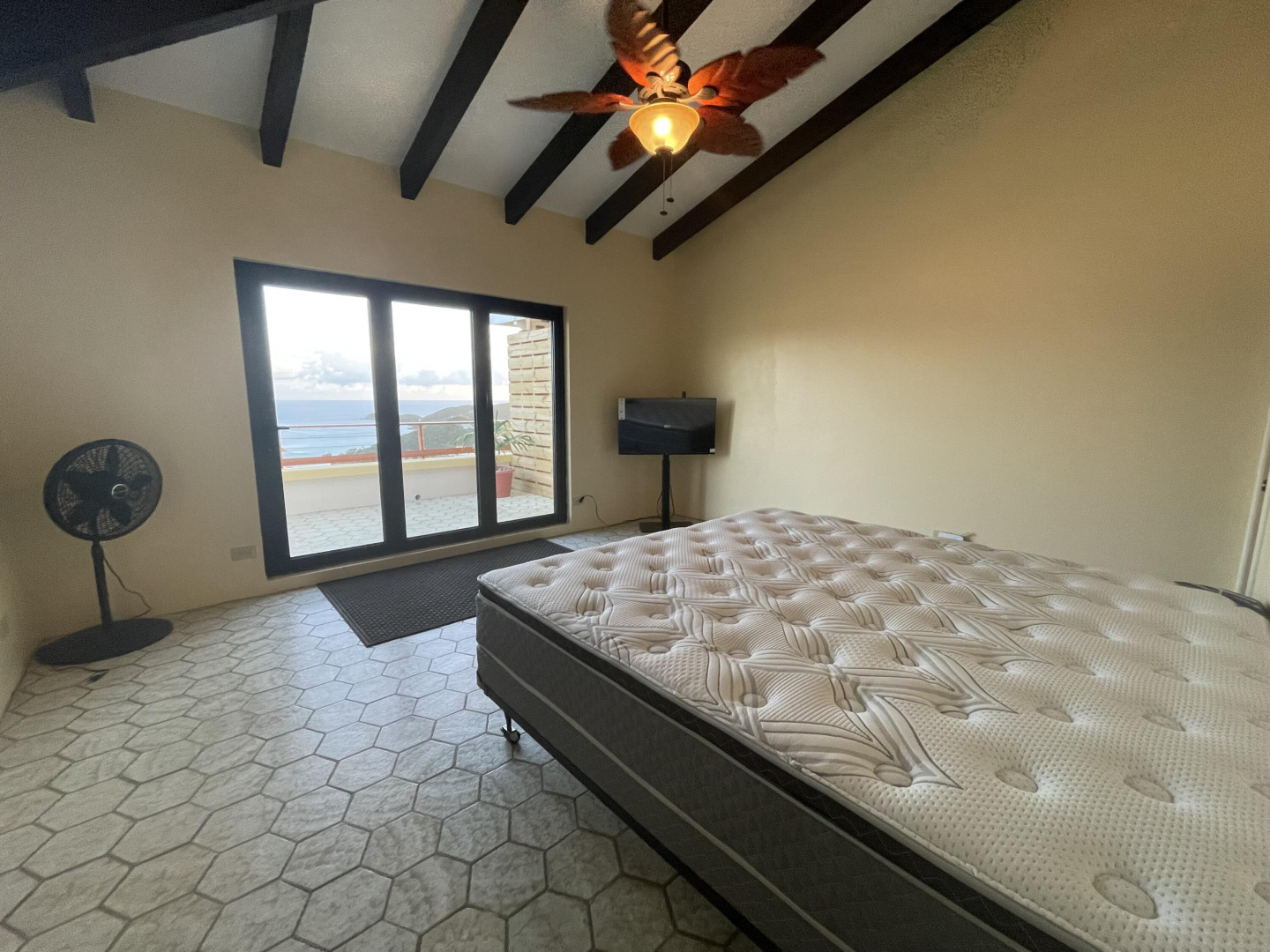 Available Dec 1. This upper level 1 bedroom 1 bath furnished apartment has expansive harbor views that extend from Havensight to Crown Bay with St. Croix on the horizon. Huge porch off the bedroom with brand new accordion sliding door and a good sized walk in closet. Bedroom also comes with a king sized bed and a 42'' TV. Brand new stainless steel appliances. The house is solar powered with battery backups to help mitigate the frequent power outage. Electricity is included in addition to wireless internet. There is a shared washer and dryer on property. Conveniently located in Solberg with a short commute to town, there is off-street parking for 1 vehicle behind the electric gate.