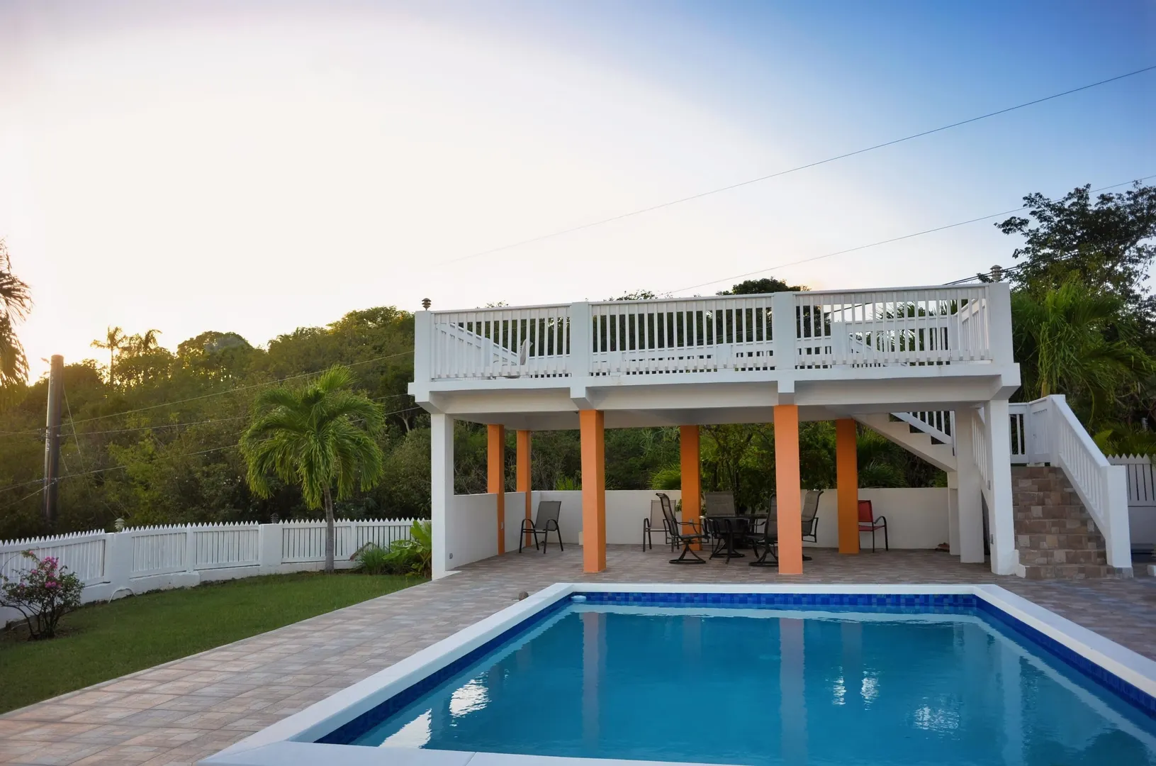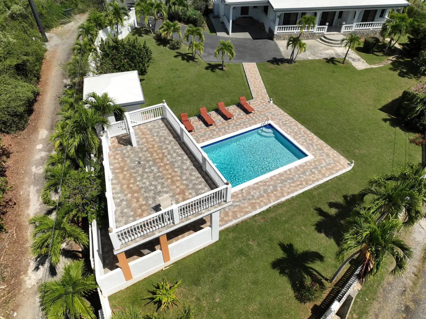 Perched on 1.18 acres with beautiful ocean views, this solid concrete multi-unit property offers space, flexibility, and income potential.The upper level features 4 bedrooms and 3 bathrooms, each bedroom with its own balcony access, allowing natural light and island breezes throughout the home.The lower level includes a separate 1 bedroom / 1 bathroom apartment with its own driveway, plus a storage room and bonus room--ideal for rental income, guest accommodations, or extended family.Outdoor living is a highlight with a 25 x 14 pool and spacious sundeck, surrounded by professionally maintained landscaping and mature palms.Additional features include:-40K diesel generator-Three cisterns plus access to WAPA water-Solar water heater-Newly painted exterior-Recoated-Solid concrete construction