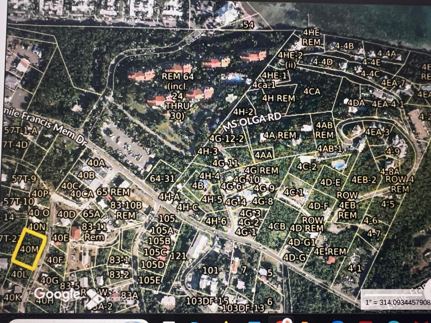 Nice, very moderately sloped building lot has good view of Pillsbury Sound and St. John, capturing the easterly breezes. Easy walk to public transportation and amenities. Concrete paved road frontage.