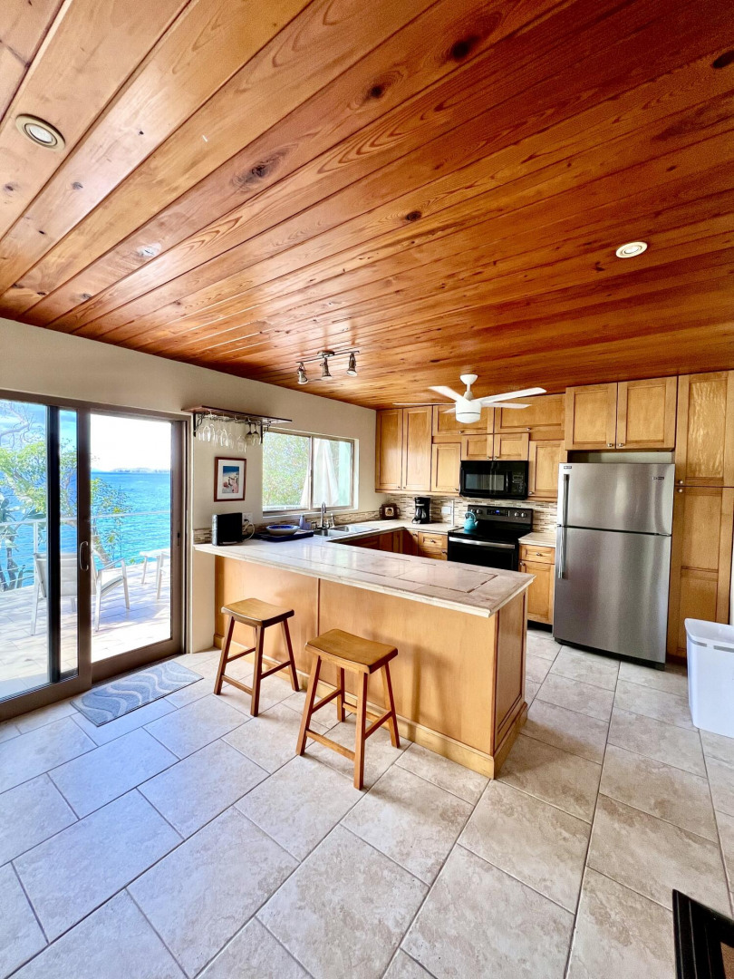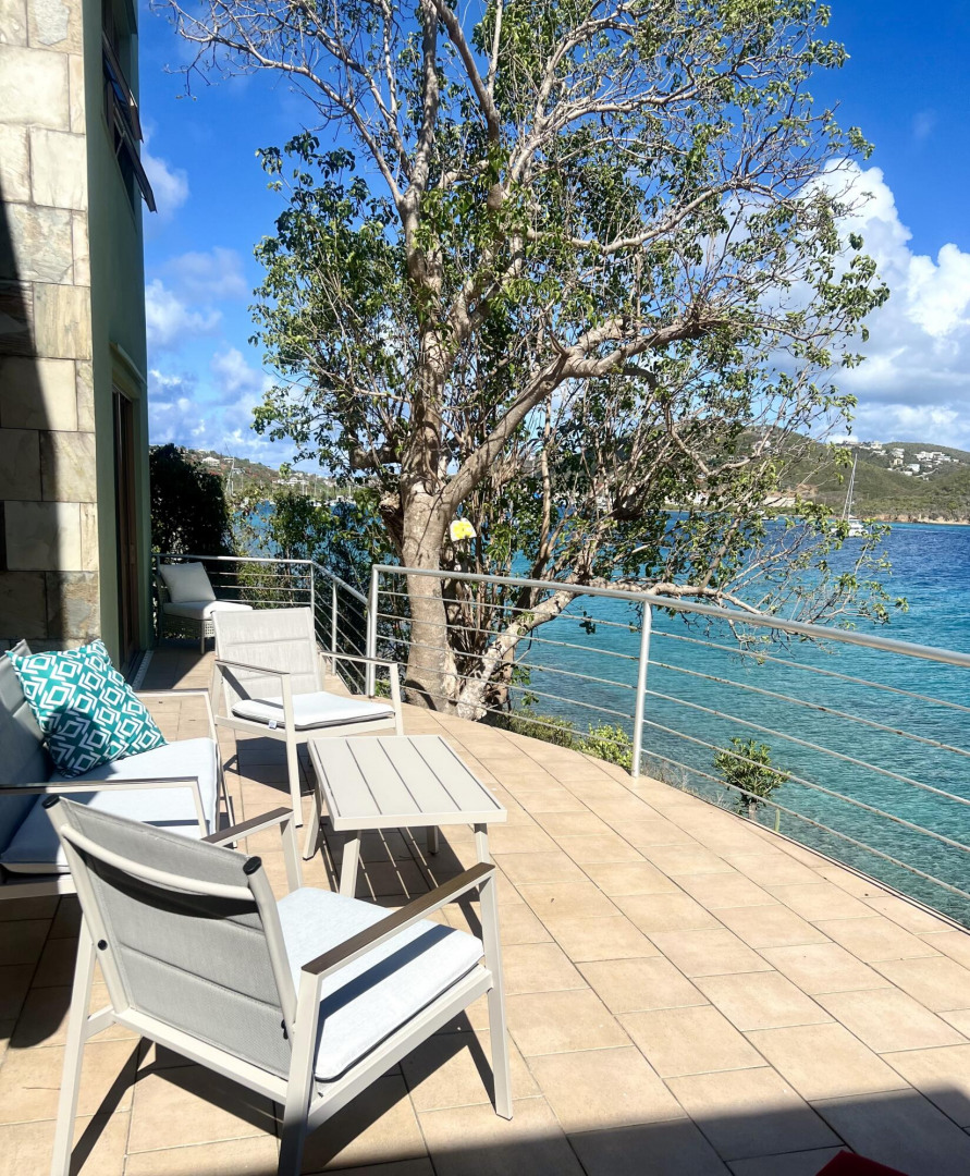 Private Executive Waterfront 2 bedroom/ 2 bath cottage. Fully furnished, W/ D upstairs. Full kitchen with DW. A/ C in bedrooms and downstair living room/dining room. Expansive patio deck overlooking the water, watch all of the boat activity going out of Red Hook. 40 KW generator. References required. Owner is the realtor