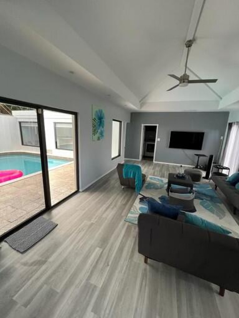 Villa Atasi is a beautiful MOVE IN READY 2 bed/3 bath/ Pool unit located in quiet neighborhood private porches with ocean views of Magens Bay lush fruit trees and healthy green foliage off street parking conveniently located 10 min from town, 15 min from Redhook Split ACs in bedrooms onsite Washer/Dryer Walk in closet/ separate shoe closet massive entertaining kitchen secluded pool Perfect for professionals or family