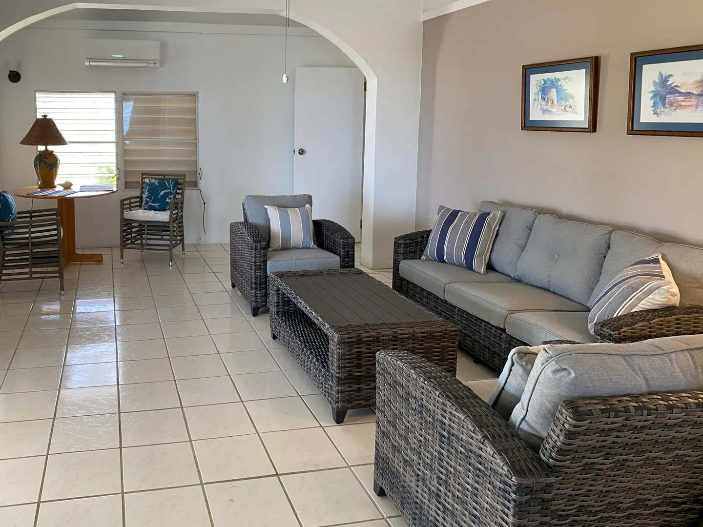 Wake up to the sound of the waves in this fully furnished one-bedroom beachfront cottage located adjacent to the Ha'Penny Bay Beach Club. Enjoy breathtaking ocean views and direct beach access in a peaceful and private setting.This cottage comes fully furnished, including all essentials. Utilities are included in the rent, covering WAPA as well as internet. Laundry facilities are shared with the Club for added convenience. Minimum one year lease is required and pets are considered. Don't miss your chance to live by the sea!