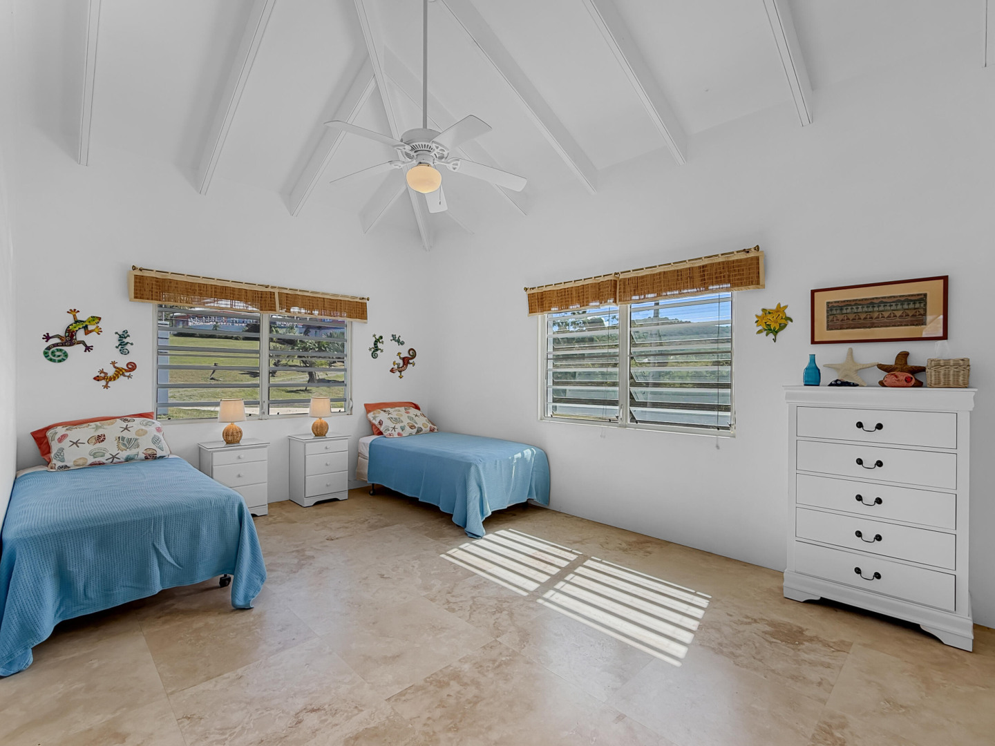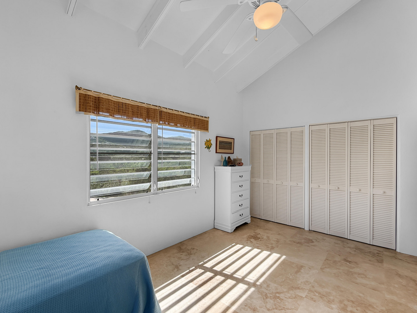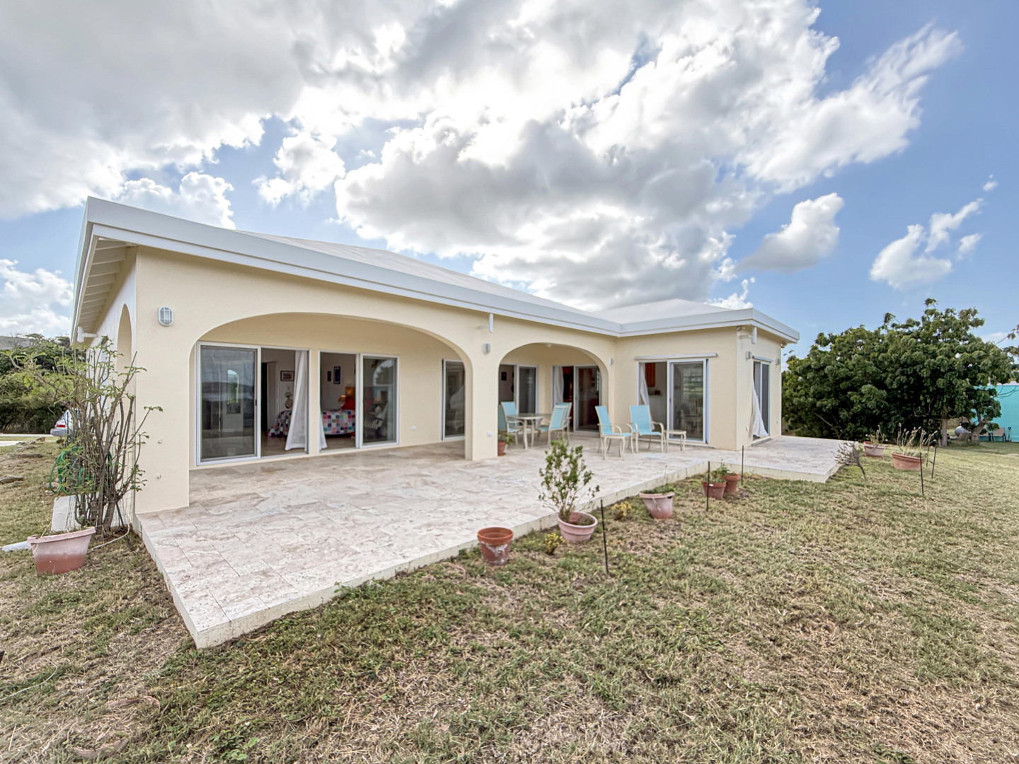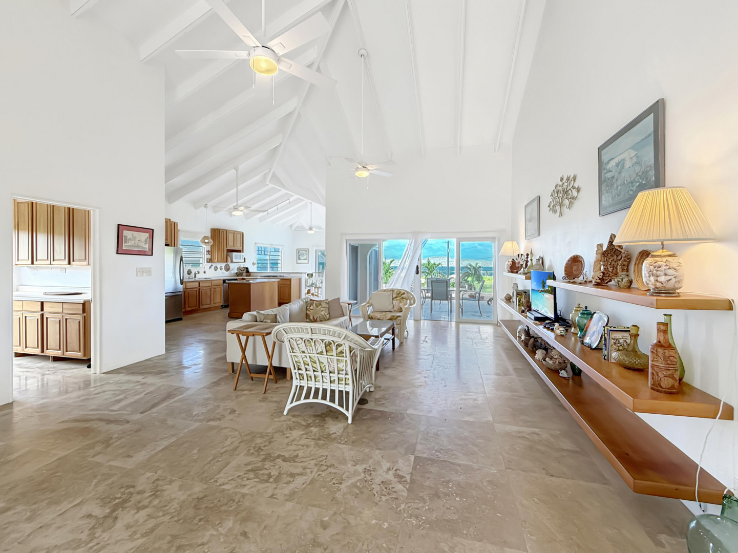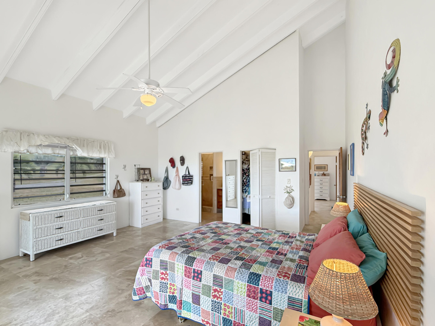 Situated to capture the breezes, this 3 bedroom 3 bathroom home with a fantastic view of Buck Island and the blue Caribbean Sea is located on the popular east end at the end of a road. This wonderful home on a double lot offers a peaceful setting for your island living. It has been meticulously maintained. There's Travertine tile throughout the house, even in the showers! The beautiful kitchen has granite countertops, stainless steel appliances, solid wood cabinets, lots of storage, and a moveable island to place where ever you'd like. With soaring vaulted ceilings, custom made floating shelves in the large great room, expansive shady gallery plus sunny patio, and storage everywhere (even a big storage room downstairs), this house is just waiting for you to make it your home! No HOA.