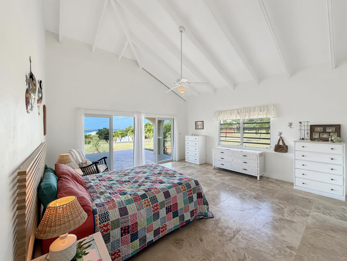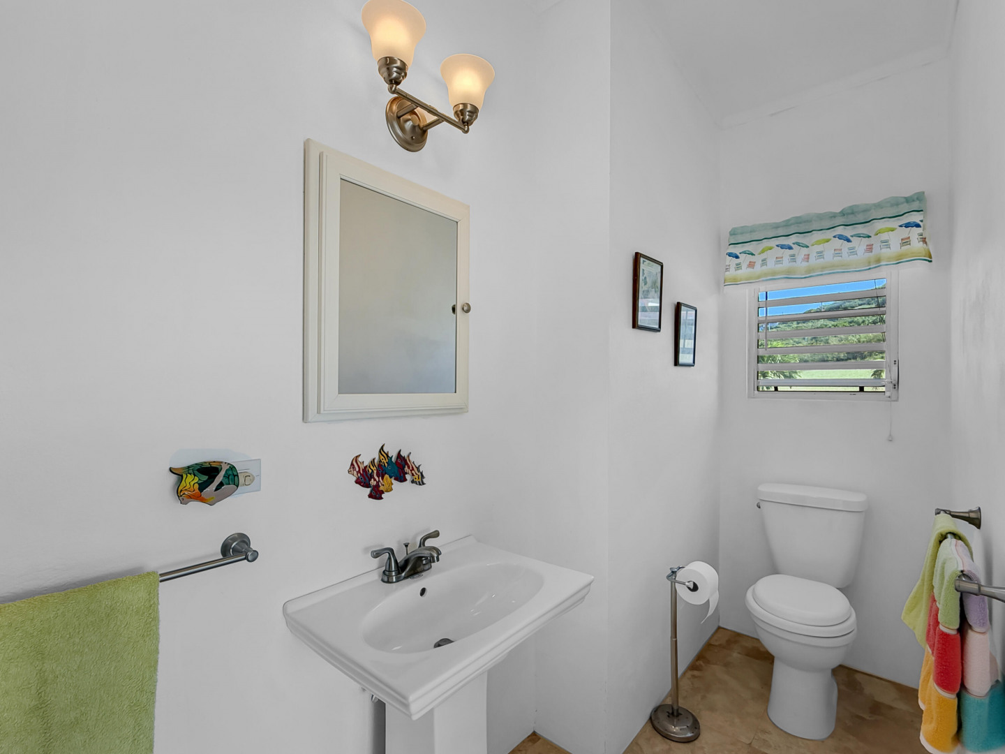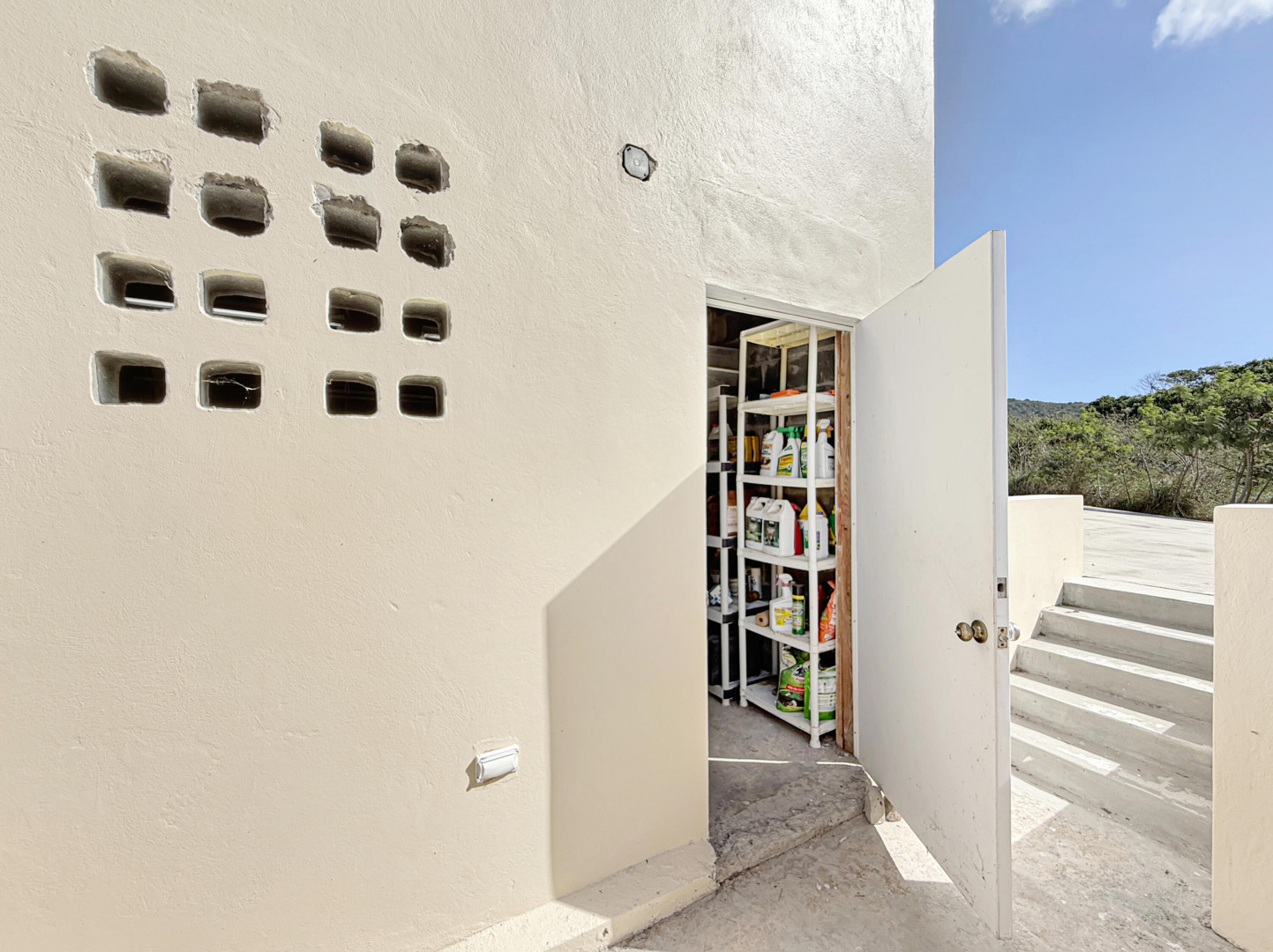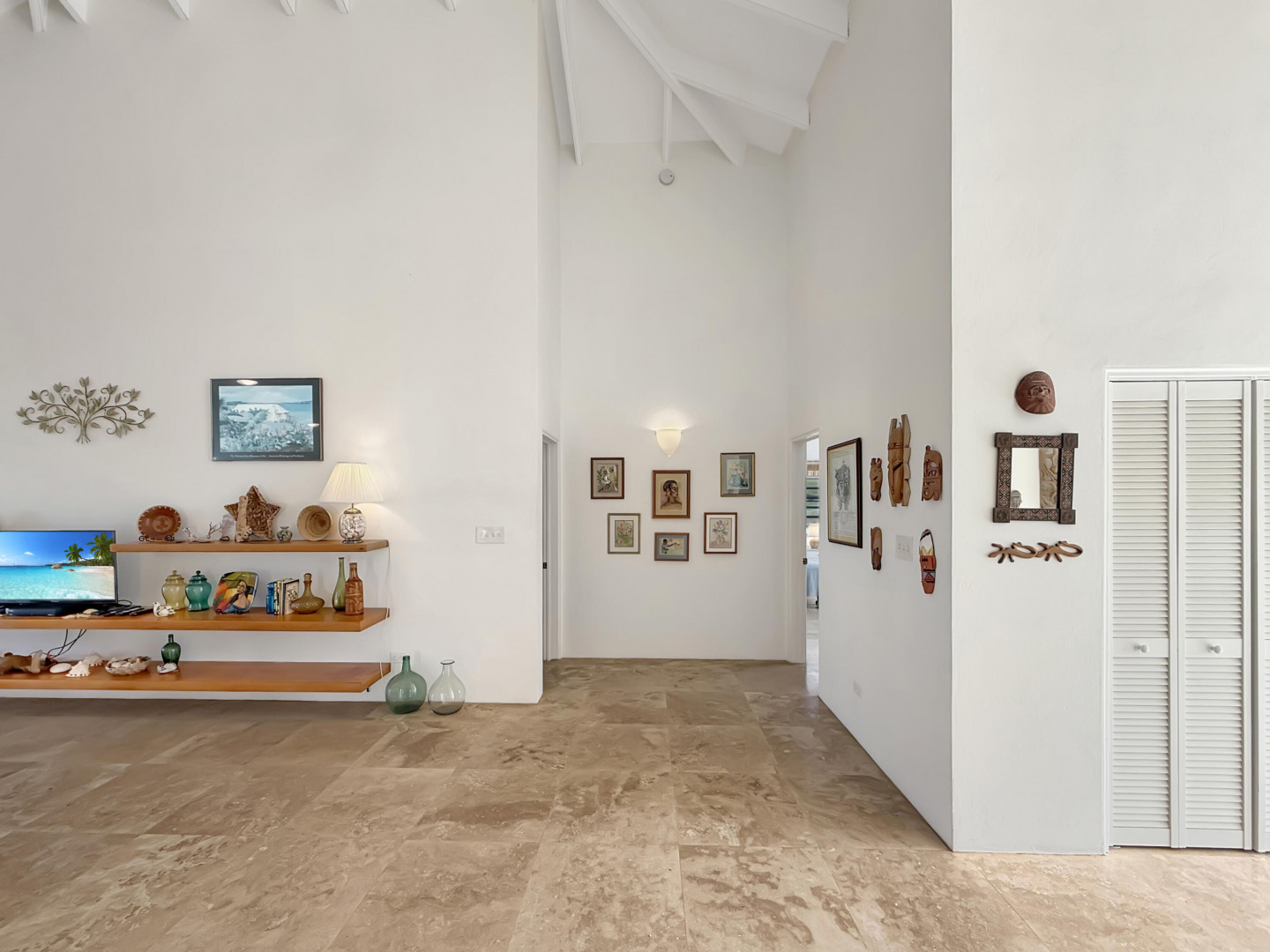 Situated to capture the breezes, this 3 bedroom 3 bathroom home with a fantastic view of Buck Island and the blue Caribbean Sea is located on the popular east end at the end of a road. This wonderful home on a double lot offers a peaceful setting for your island living. It has been meticulously maintained. There's Travertine tile throughout the house, even in the showers! The beautiful kitchen has granite countertops, stainless steel appliances, solid wood cabinets, lots of storage, and a moveable island to place where ever you'd like. With soaring vaulted ceilings, custom made floating shelves in the large great room, expansive shady gallery plus sunny patio, and storage everywhere (even a big storage room downstairs), this house is just waiting for you to make it your home! No HOA.