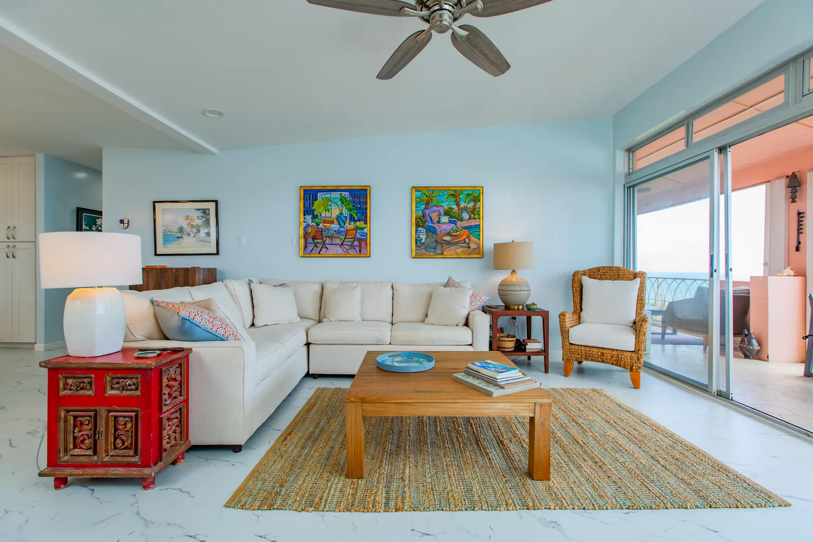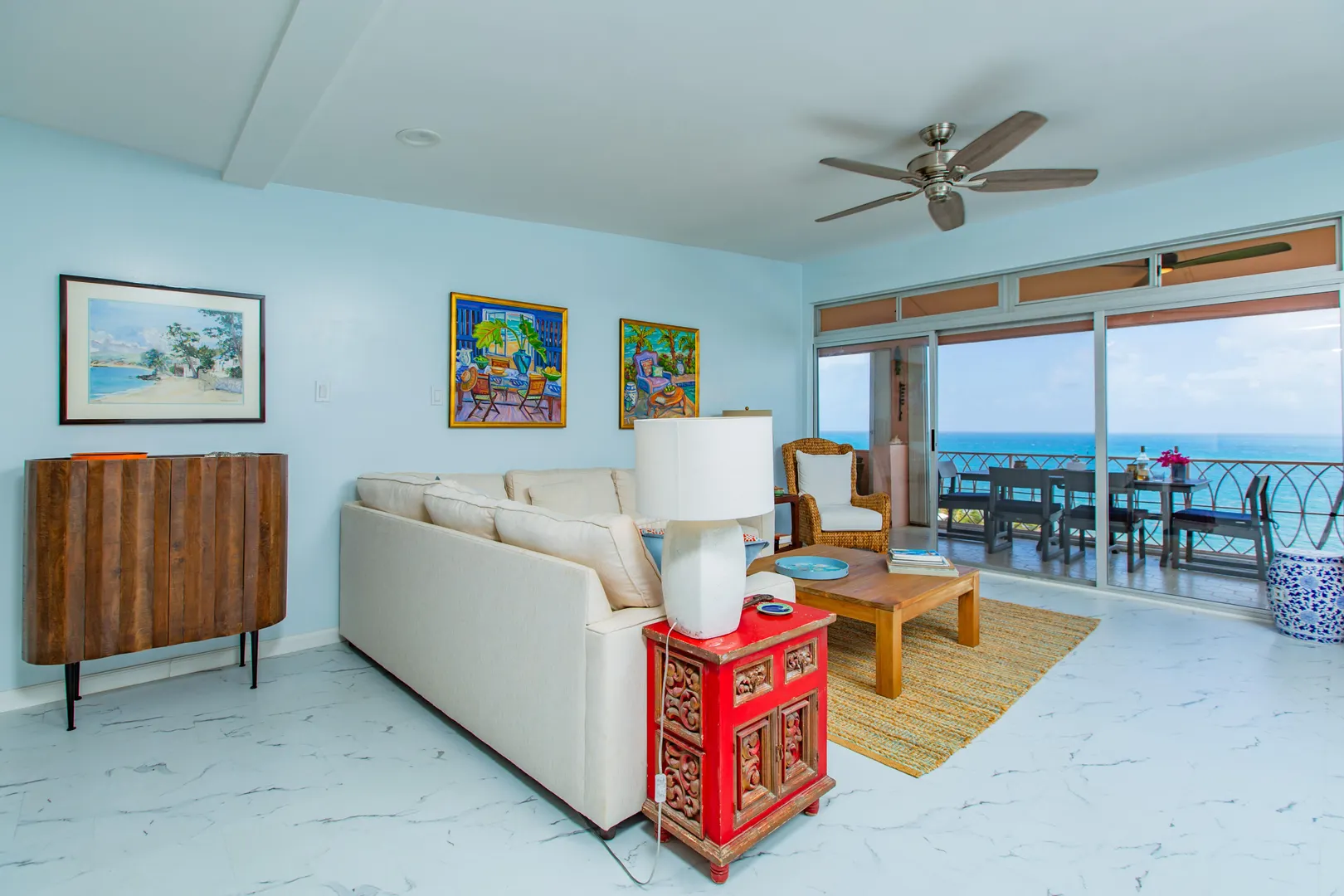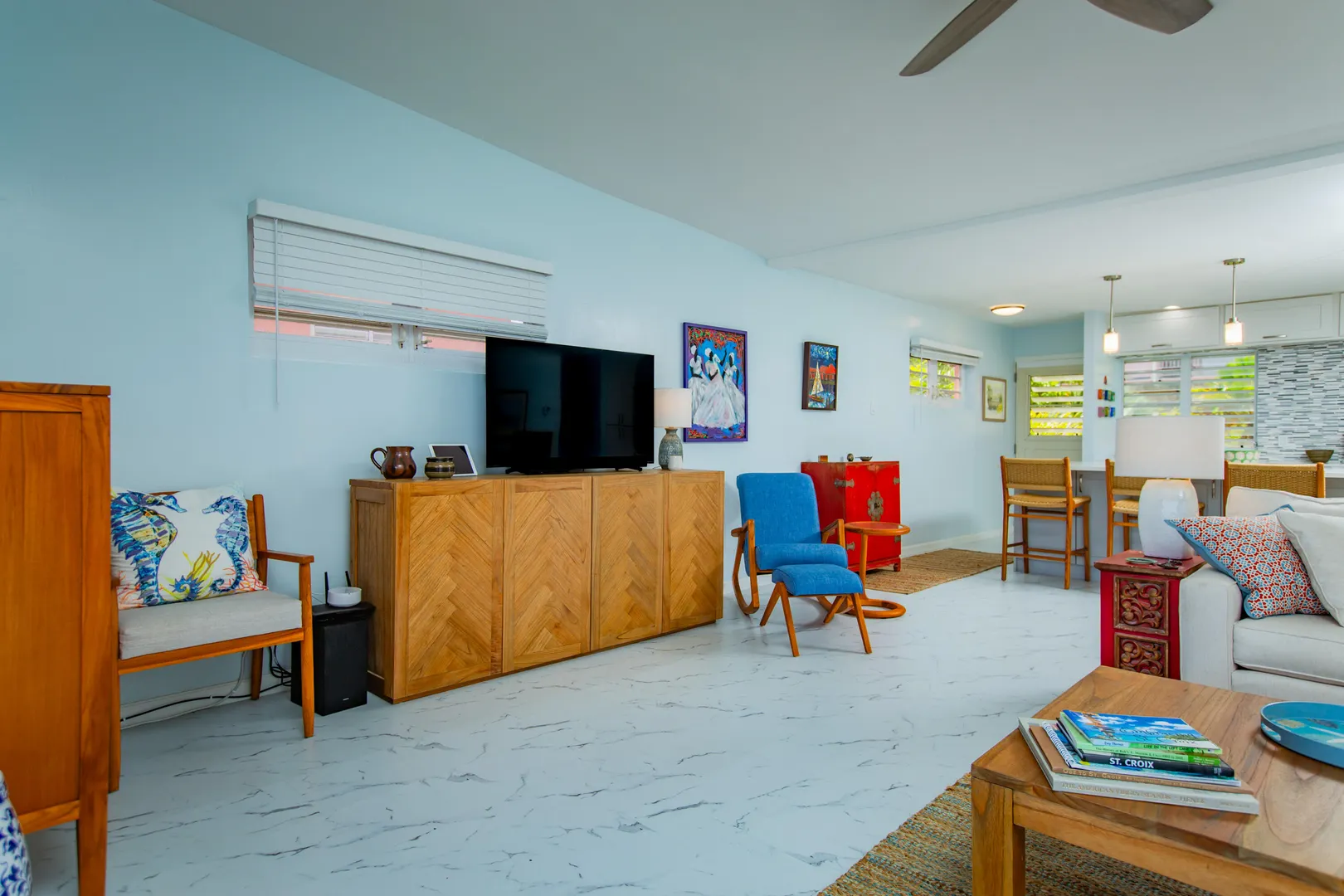 This beautifully renovated luxury residence, completed in 2023, is arguably one of the finest units currently available at Coakley and has a great rental history. The thoughtfully designed open-concept kitchen features a spacious island and captures stunning views of Buck Island and the sea the moment you enter--and even while preparing meals.Both bathrooms have been elegantly upgraded, and the unit includes a convenient in-unit washer and dryer. Ideally situated in the highly desirable B Building, which offers only one residence per floor, this condo provides enhanced privacy and is just steps from the pool and on-site restaurant. Enjoy cocktails or dine with friends on the expansive gallery while taking in the tranquil views of sailboats passing by. A wonderful investment property.