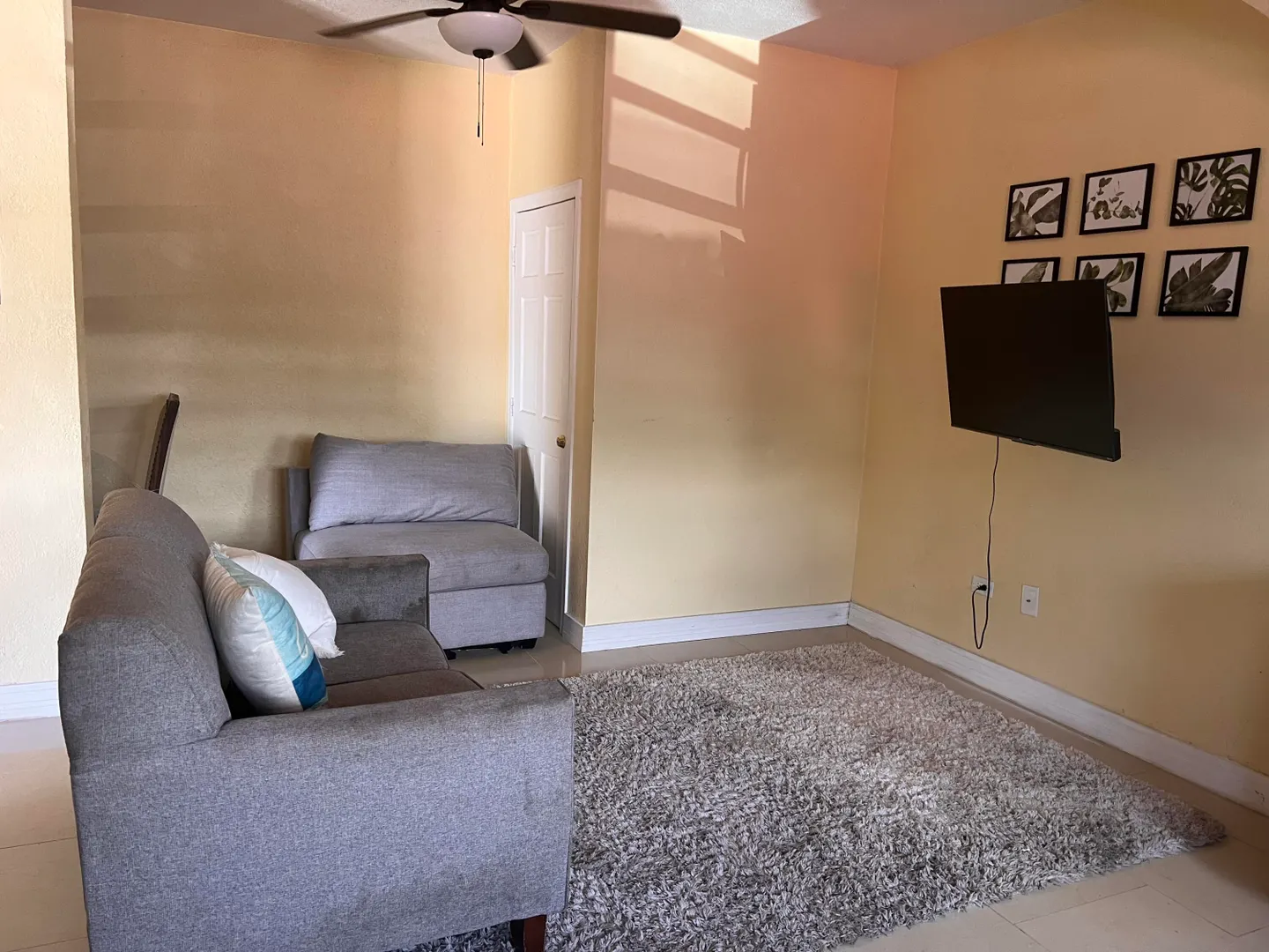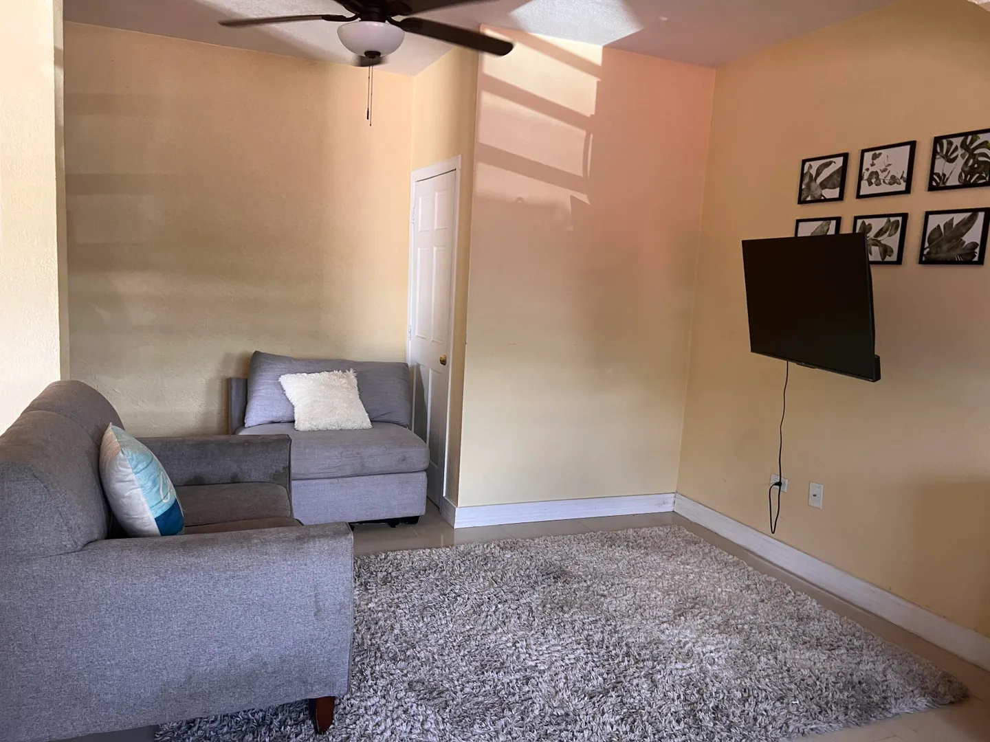 Modern 2-bedroom/2-bathroom apartment on the east end. UTILITIES INCLUDED (electricity with cap, and water)! ACs and smart TV's in each bedroom. Coined washer and dryer on the premises. First, last, and security required.