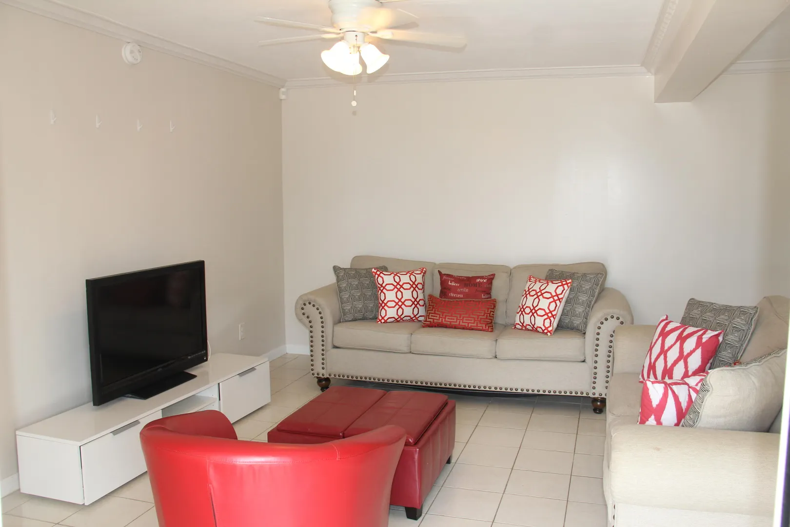 A very modern, fully furnished 2BR/1BA Apartment for rent. **Included in the rent is Cable/Internet. **This apartment has all the amenities a tenant or someone new to the island would want - back up generator, A/C in the living room, great breezes, security camera, monitors and alarm system, gated property, washer and dryer, wrap around driveway, hurricane shutters on all windows, full set of dishes and fresh linens.