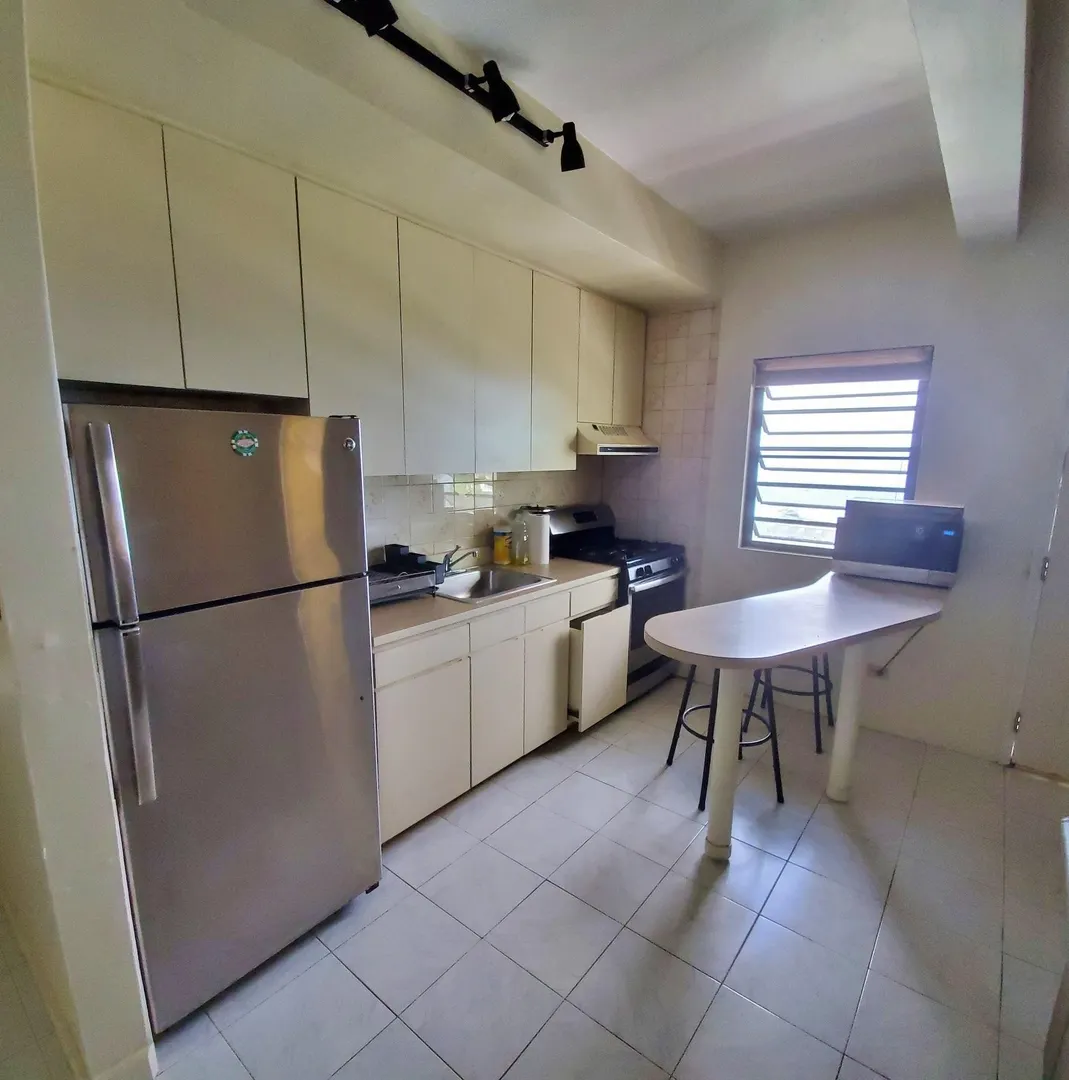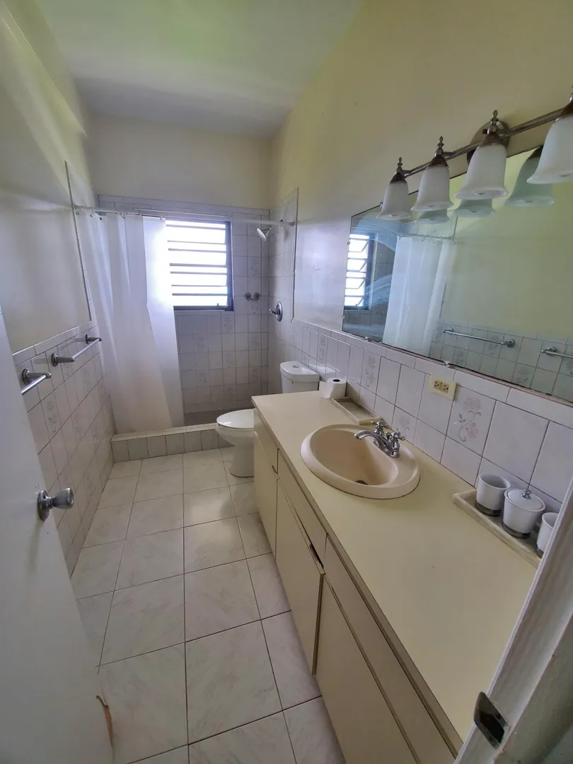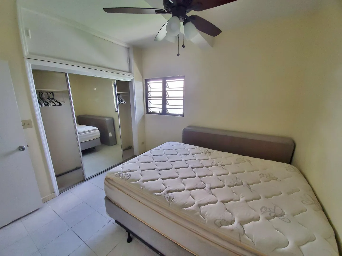 Cute furnished apartment. Great location to town and airport with beautiful views of the Caribbean Sea. A/C in master bedroom, gas stove and generator. Flat parking. Cat considered.