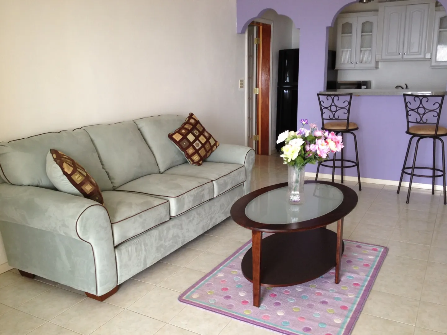 Sit on your porch and enjoy sweeping ocean views and breezes. This sweet one-bedroom apartment has a large bedroom, a granite kitchen with an eating bar, and a pleasantly furnished living area. Located inside a gated home, this apartment features a dedicated parking space, a W/D on premises, and the quiet ambiance of Northside life. Internet included. Owner says WAPA bills have run about $50-$60/mo