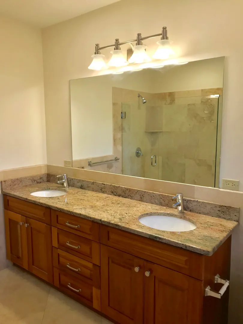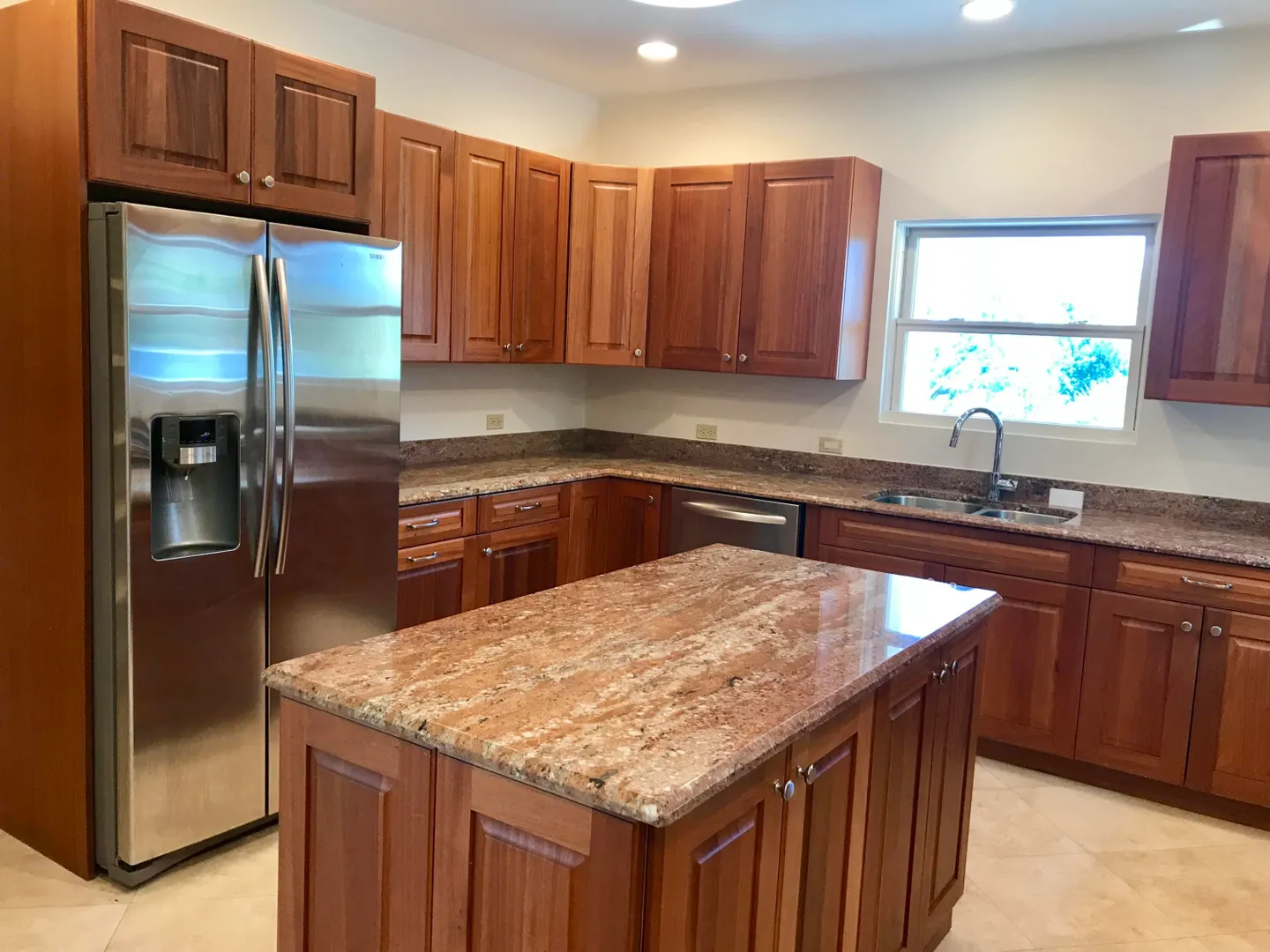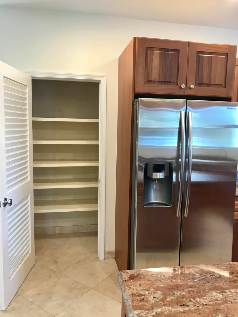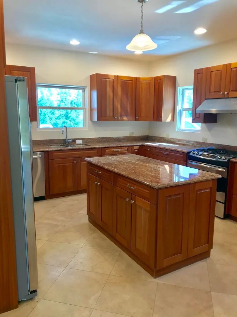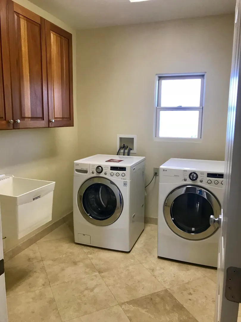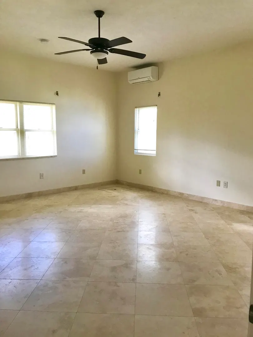 Very large (approx 2,000 sf) with covered porch running the length of the Apt. High ceilings, cool, views of outer Magens Bay and nice green space - Large laundry room, sep dining area - both bedrooms have AC. Lots of storage. Generator. This is the downstairs Apt. w 2 designated parking spots. House is on a cul de sac w gate at the entrance to subdivision. Very cool and private. No pets please. Landlord bills for WAPA- Gas hot water heater and stove. Generator is shared w upstairs.