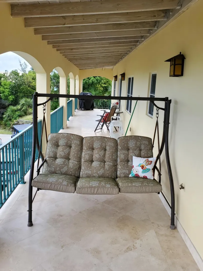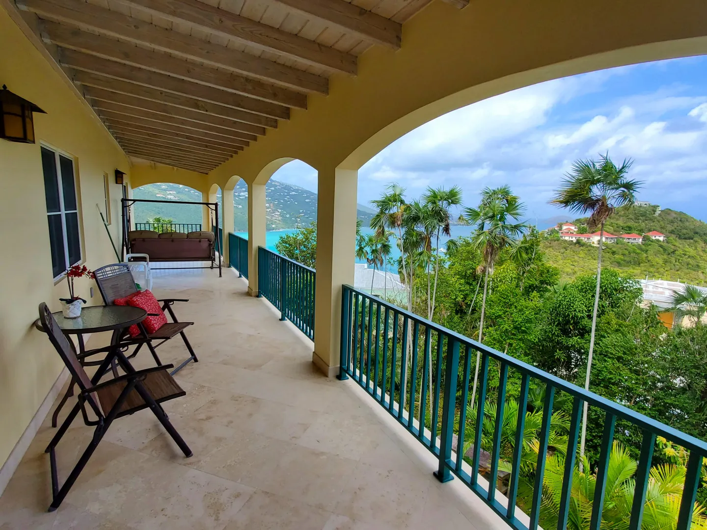 Perfectly maintained 3 bedroom house, top floor unit in a gated community in sought after Estate Peterborg. Enjoy your day on the huge porch facing both Magens Bay and the Atlantic Ocean. There is an auto generator, your own cistern, separate electric meter, gas stove and gas dryer. NO pets.