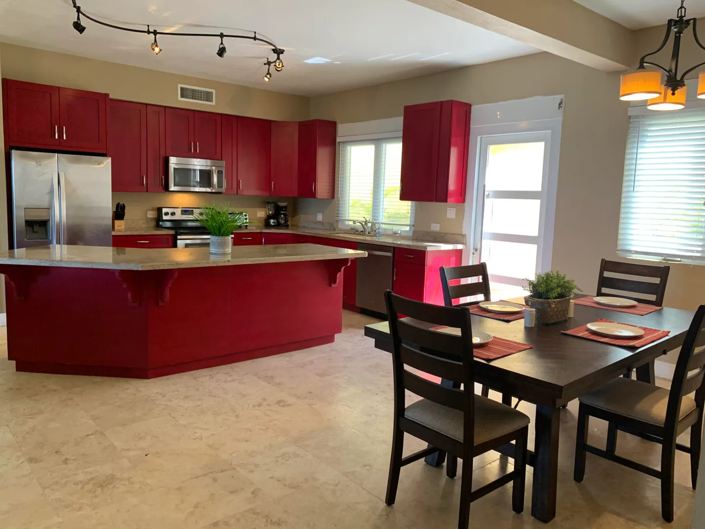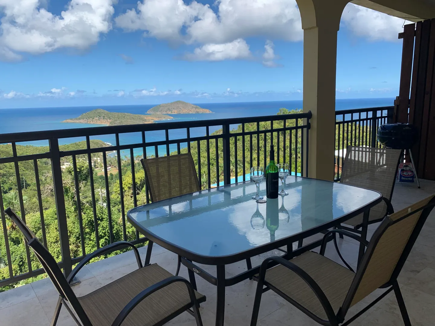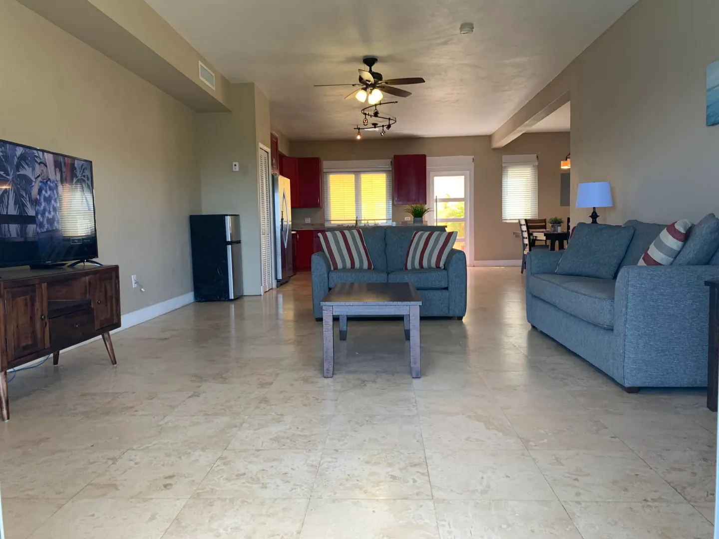 This beautifully furnished turnkey 2 bedroom 1 bath house boasts amazing views of Inner and Outer Brass. Both bedrooms are well appointed with a private balcony off of the master bedroom where you can relax and enjoy the views after a long day at work. Both bedrooms have walk in closets with closet organizers. The bathroom is extremely spacious with double vanities. The living room has a flat screen TV and a queen sleeper sofa to sleep your extra guests. With beautiful travertine floors throughout and soft close kitchen drawers with granite countertops in both the kitchen and bathroom, no expense has been spared. There is central air in the common areas and mini splits in the bedrooms. Blinds are installed throughout the apartment. Stainless steel appliances