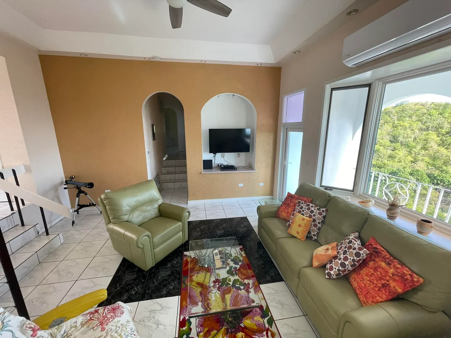 Tucked away on Hawk Hill three bedroom, two bath home for rent. Fully furnished, generator and AC throughout.