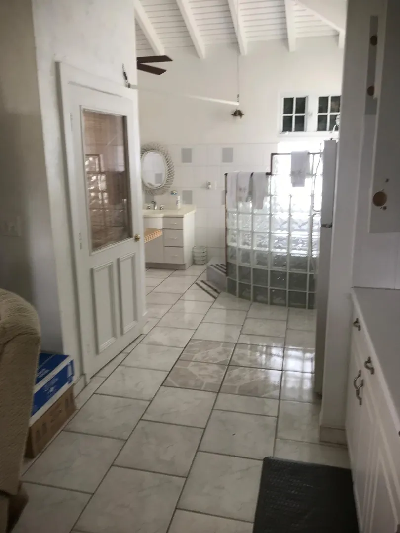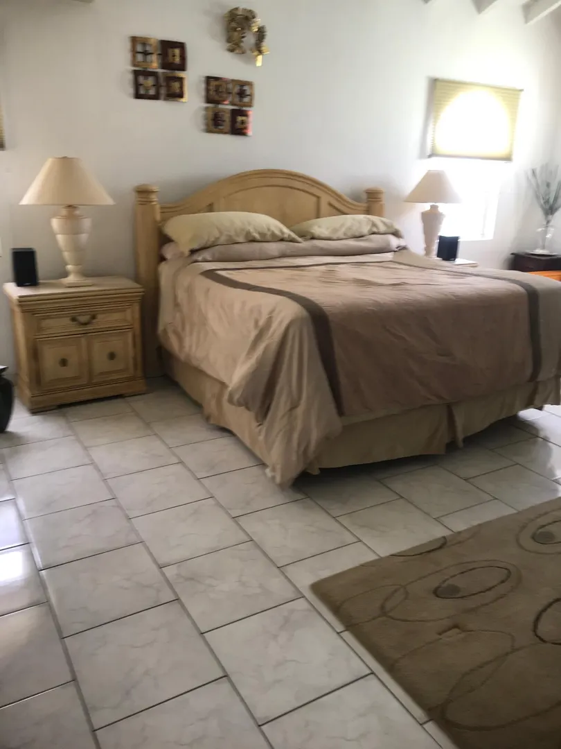 This is a large studio apartment located on the top of the owner's residence. It is well equipped, furnished, clean and has a large bath/shower area. It is located at the top of the hill taking the road directly across from the Bolongo Hotel, restaurants bars and beaches. Close to town, groceries, medical, shopping, laundry, etc. There are nice breezes here. NO PETS! $1600 monthly rent. Water and electric are included, but if the bill runs over $400, the tenant is responsible to pay anything over the $400 First, last and security are required.