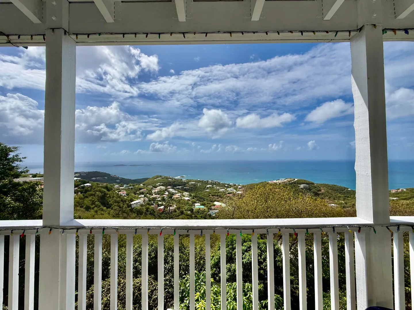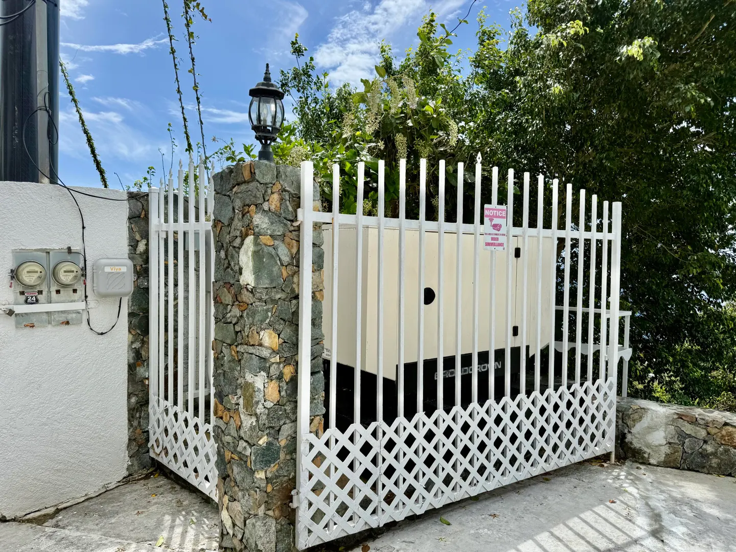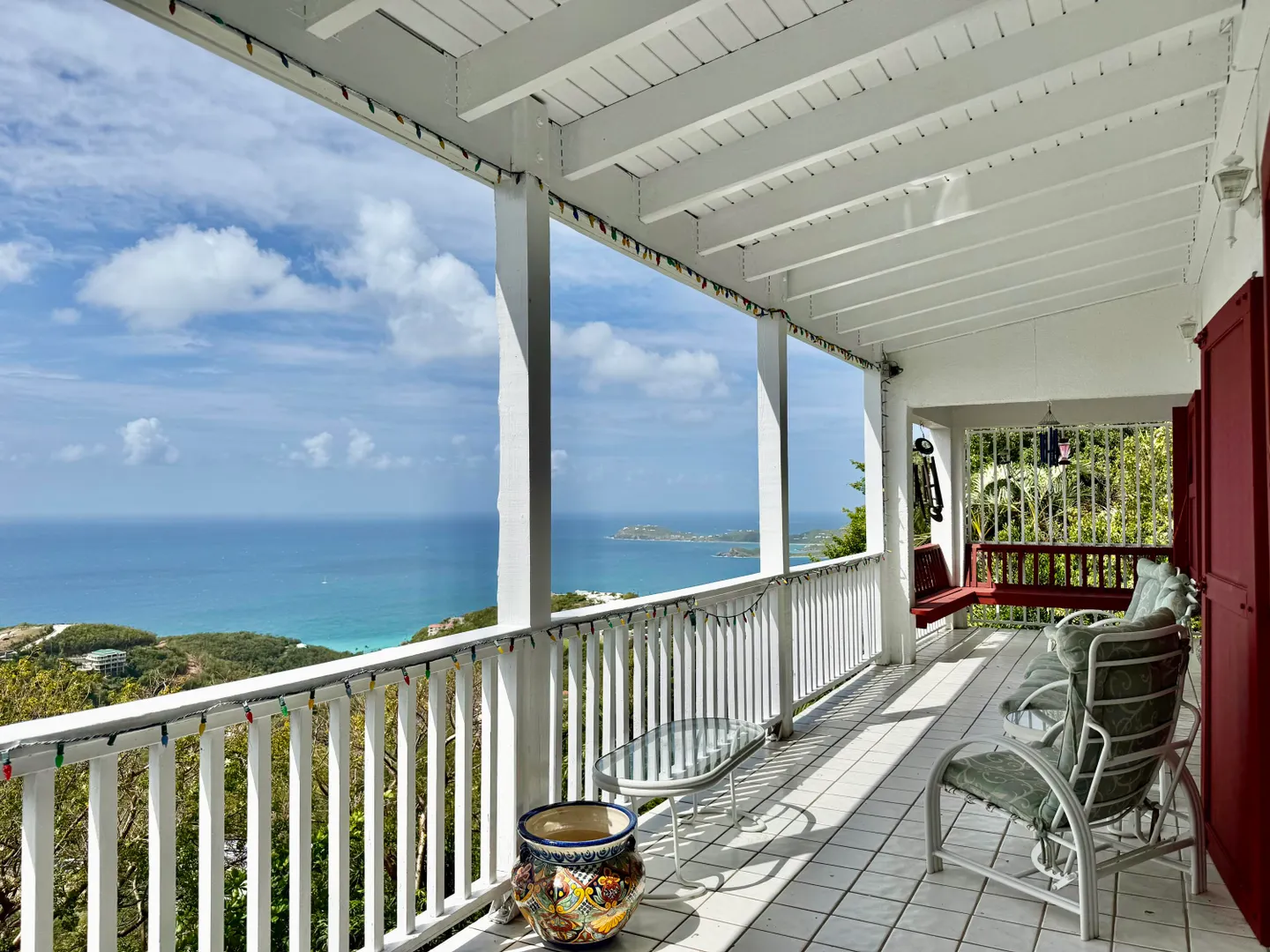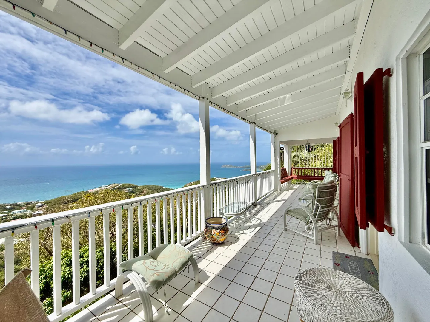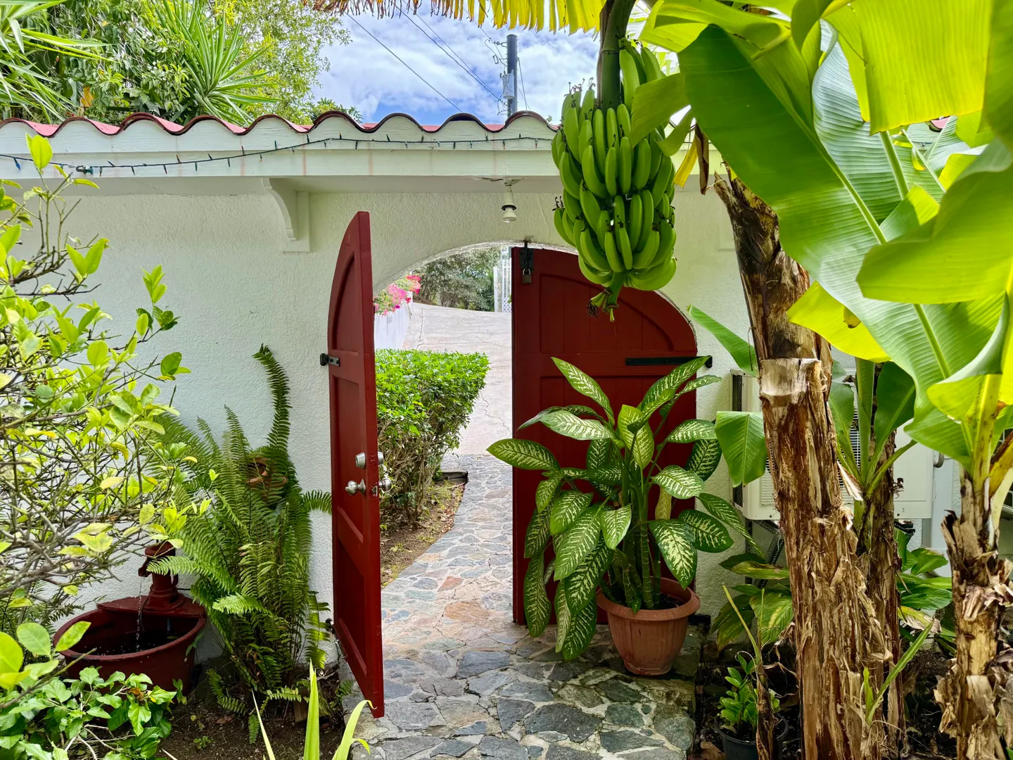 Beautiful Frenchman's Bay pool home with gated driveway, formal stone path garden entrance, spacious deck around the pool for entertaining, den/office, wrap around covered gallery, large apartment, generator, 5000 gal grey water cistern, lovely southwest to west water views, plenty of flex space below for storage or any usage, fruit trees galore including guava, avocado, mango, lemon, bay leaf, sugar apple, soursop and more.