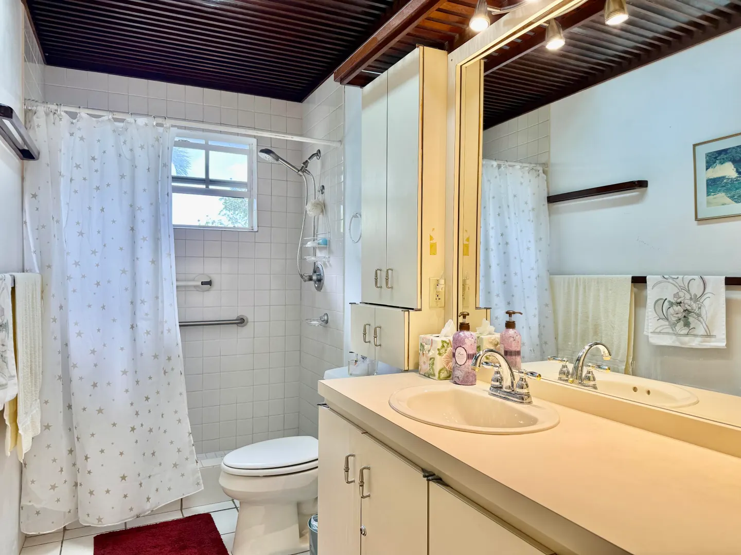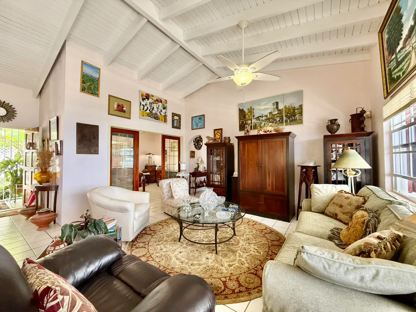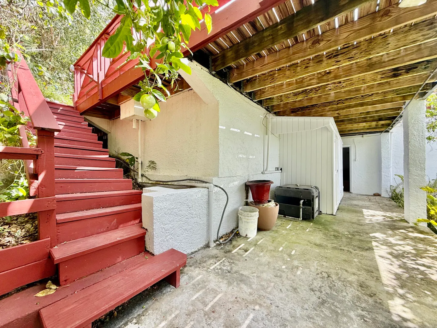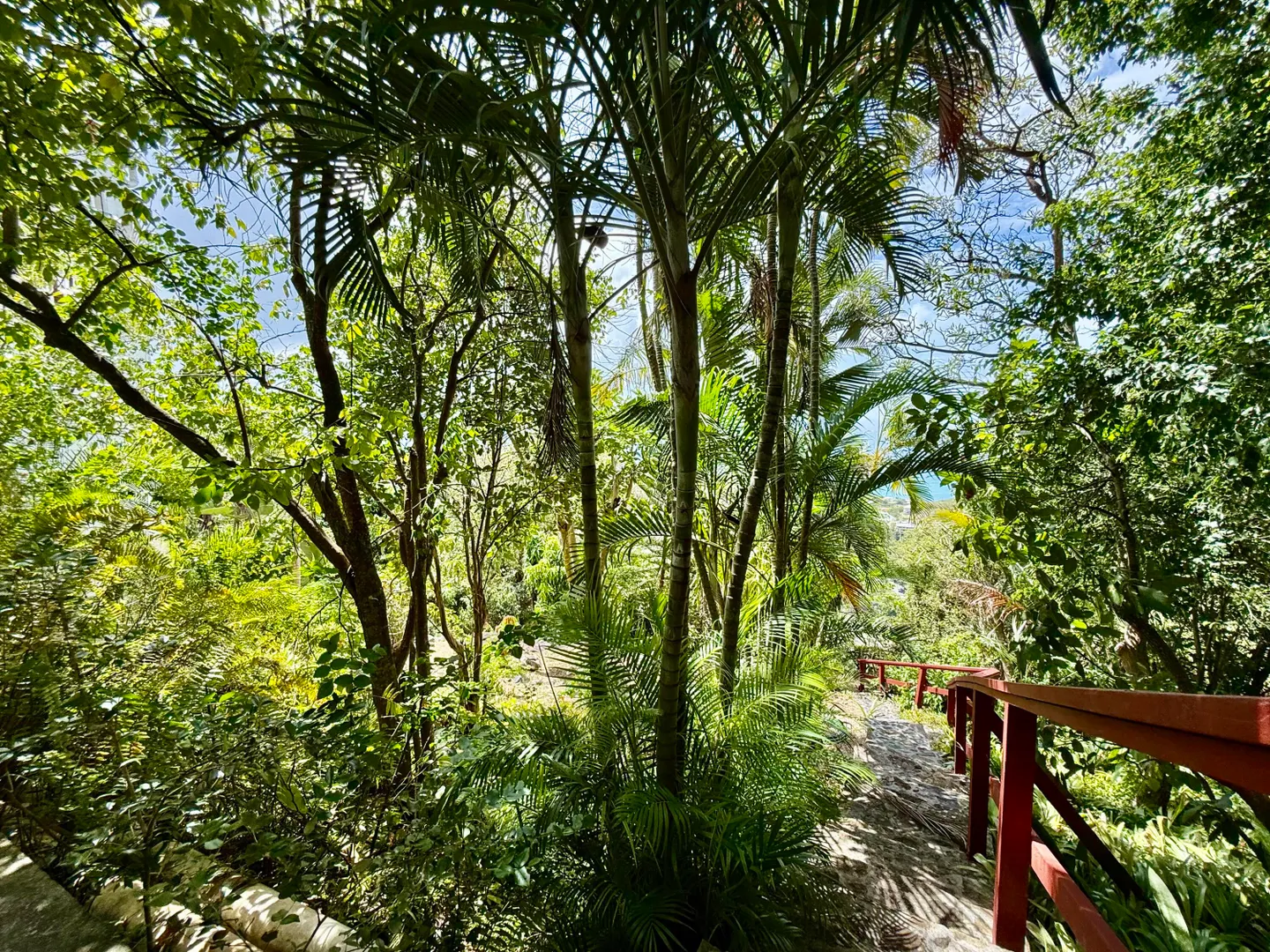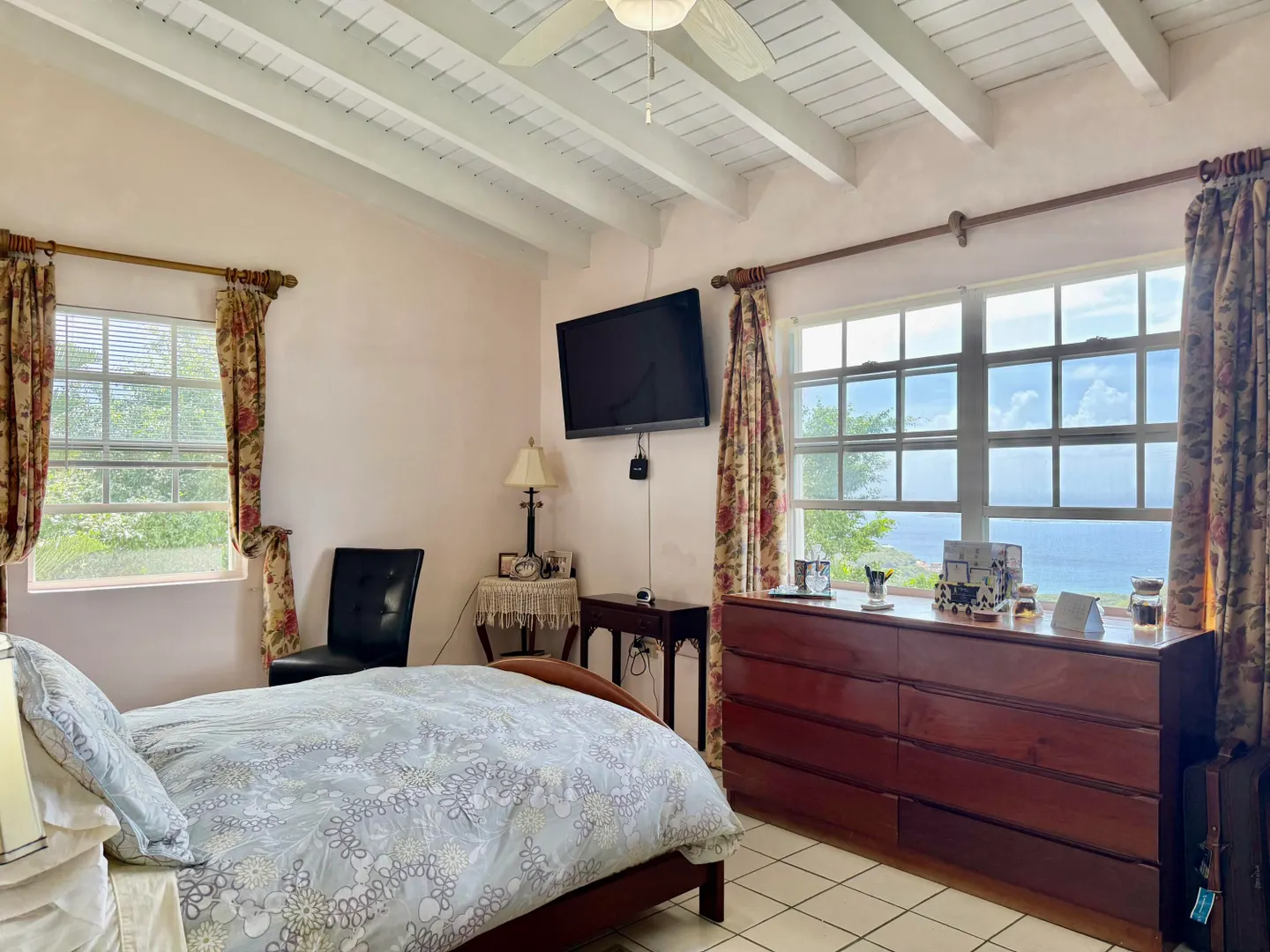 Beautiful Frenchman's Bay pool home with gated driveway, formal stone path garden entrance, spacious deck around the pool for entertaining, den/office, wrap around covered gallery, large apartment, generator, 5000 gal grey water cistern, lovely southwest to west water views, plenty of flex space below for storage or any usage, fruit trees galore including guava, avocado, mango, lemon, bay leaf, sugar apple, soursop and more.
