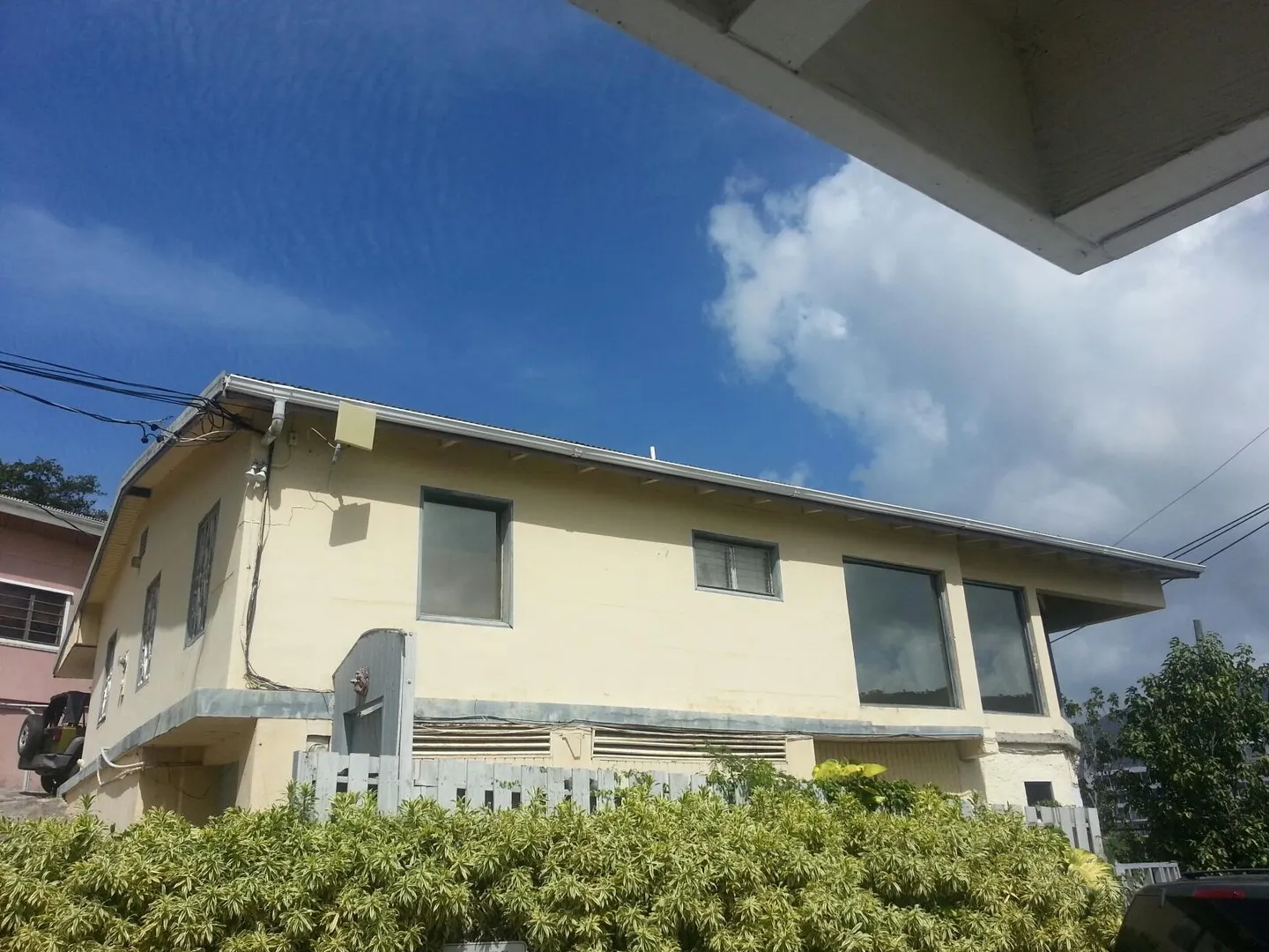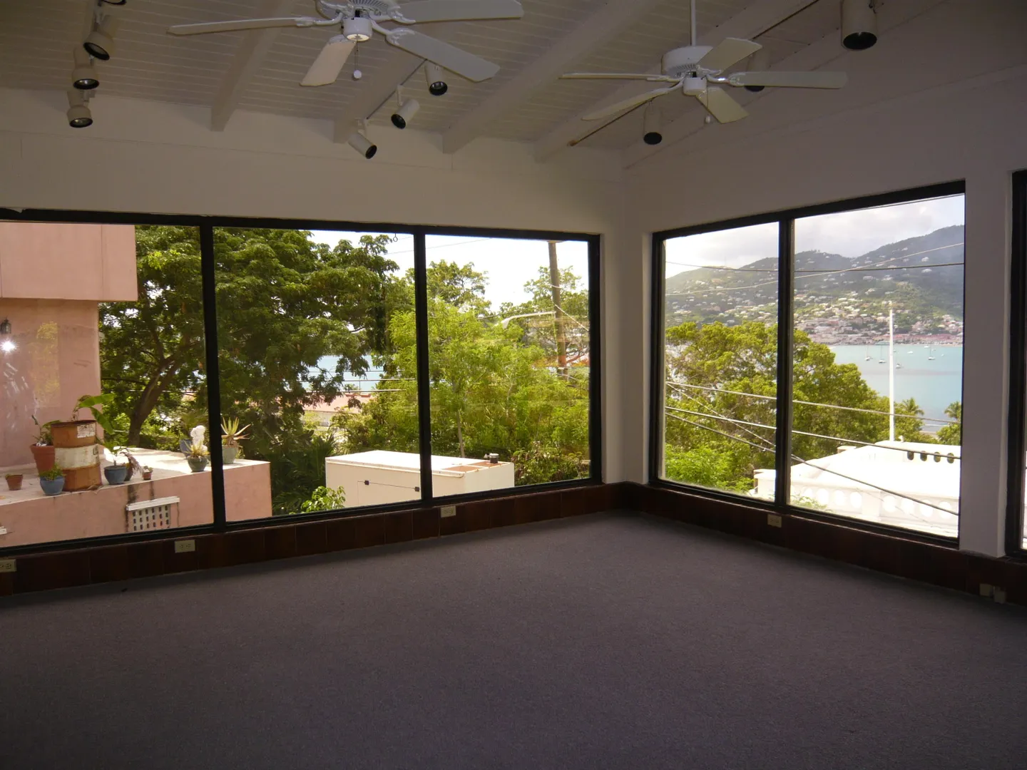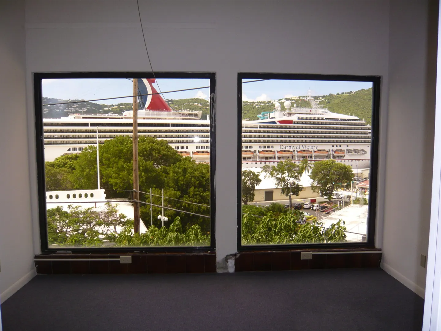 Great commercial building in a mixed residential/commercial neighborhood with views of the town/harbor and cruise ships. Top floor with 1561 sq. ft. of office space with 7 offices, kitchenette and bath. Floor to ceiling windows overlooking the cruise port views. Two one bedrooms apartments on lower floors, garage/storage and separate large lot for parking. Needs renovation but what a location.