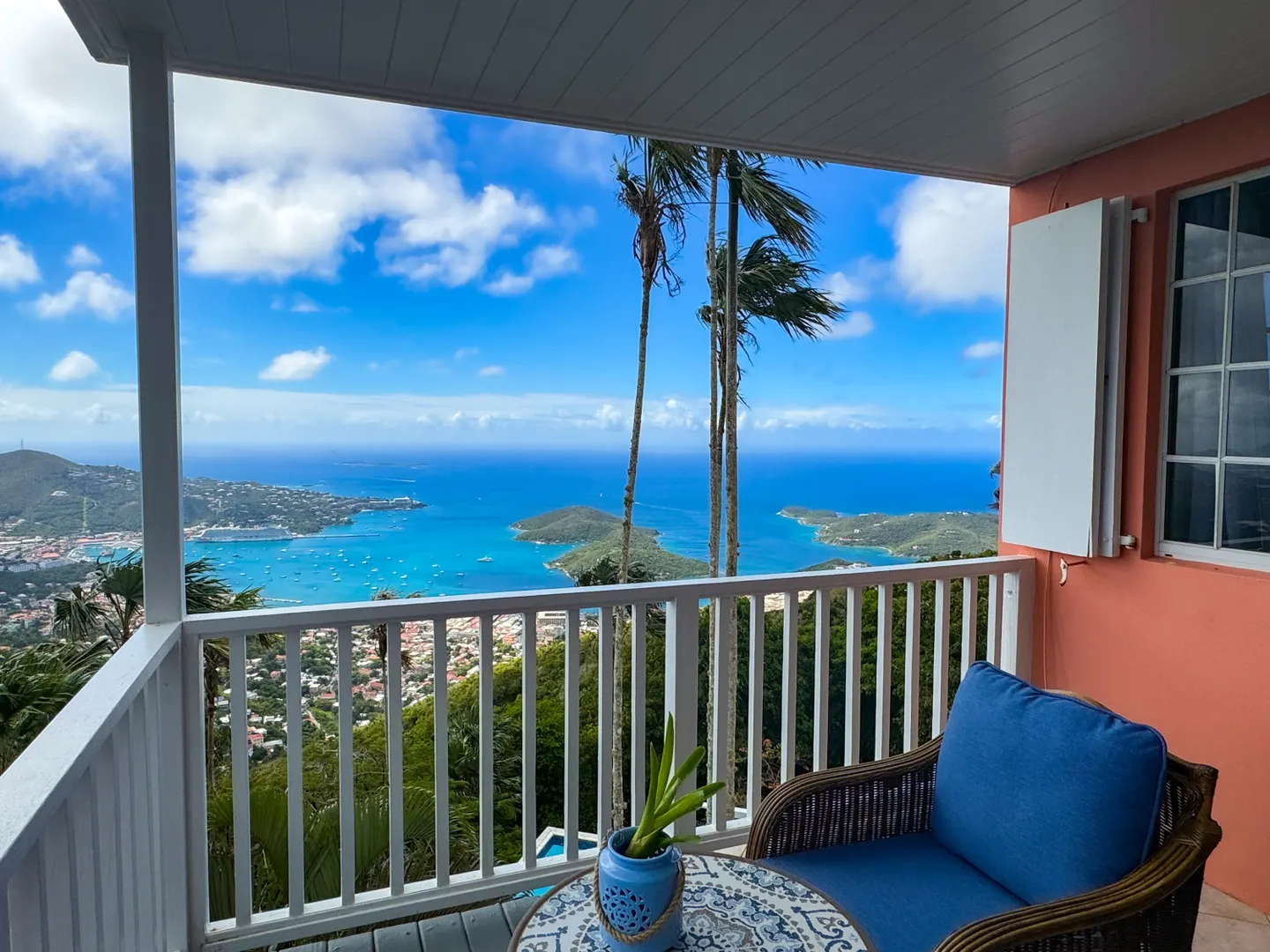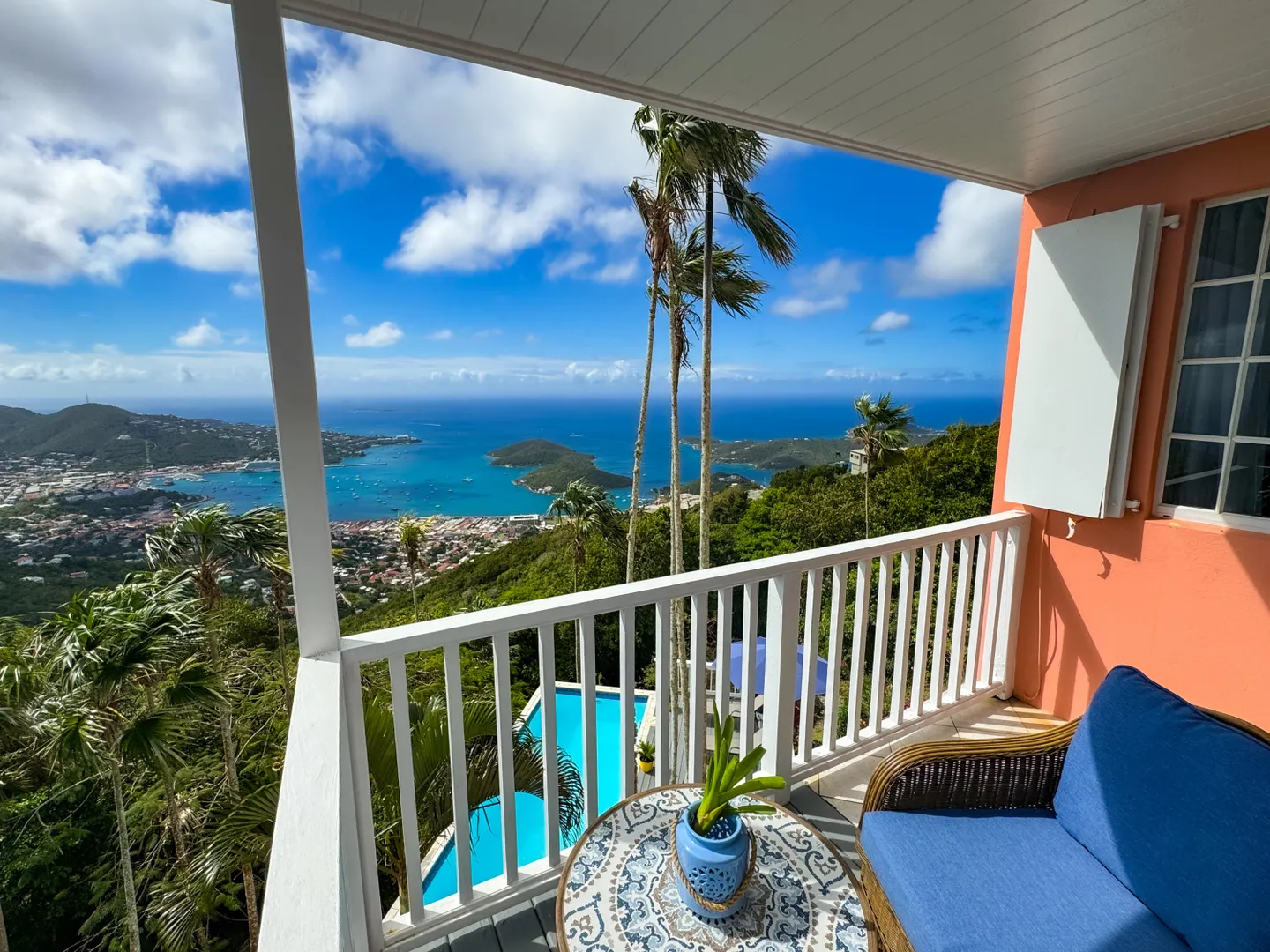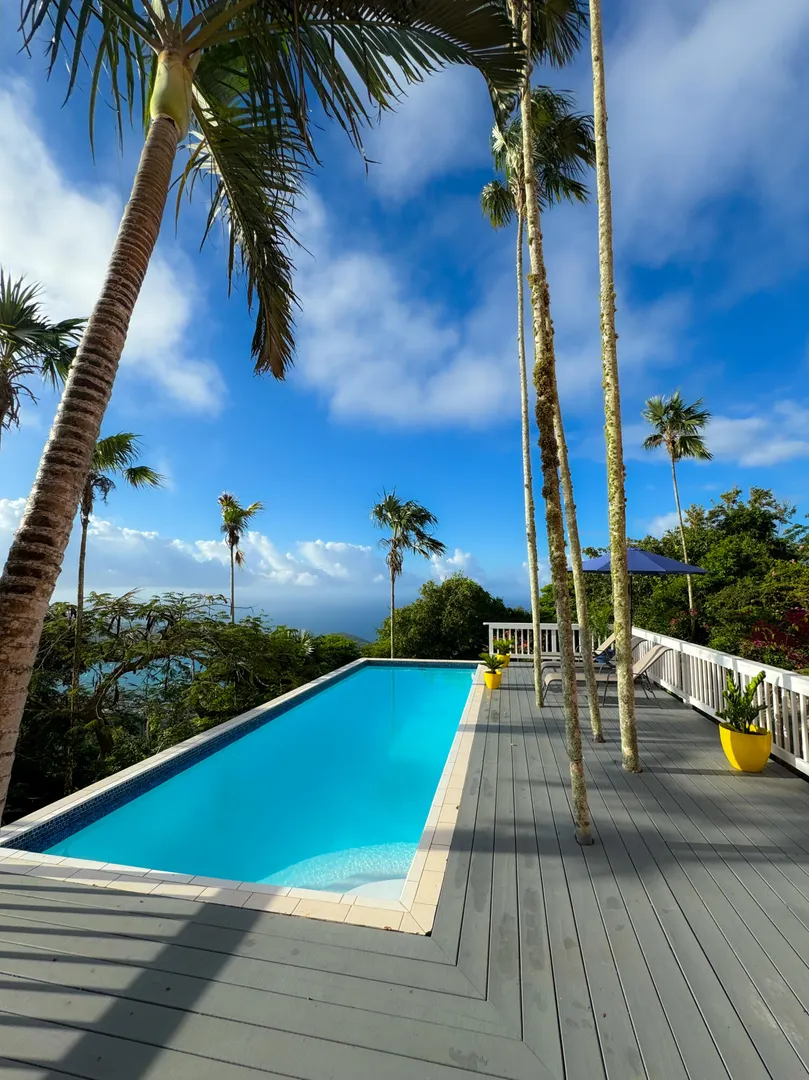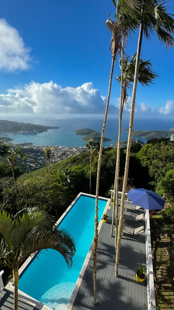Sitting on top of the world! Imagine waking up to these views!! This well appointed villa has it all. Location is ideal with easy access to town and island amenities. Beautifully finished and furnished... all you need is your suitcase. Enjoy the expansive views from your decks and the quiet enjoyment of your own pool. This private villa offers 2 bedrooms and 2 baths plus a loft area. Great living space perfect for entertainment. Truly a perfect island oasis. Recent renovations and upgrades are lovely!