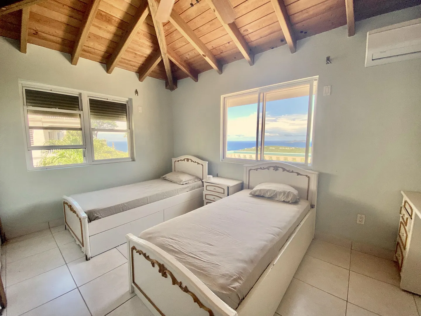 Spacious 2 bed/2.5 Bath fully furnished apartment with Large Patio and Amazing Views of the BVI's! A/C, Washer/Dryer in unit. Great Central Location! 5min to Magen's, 10min to Town! Automatic Generator!