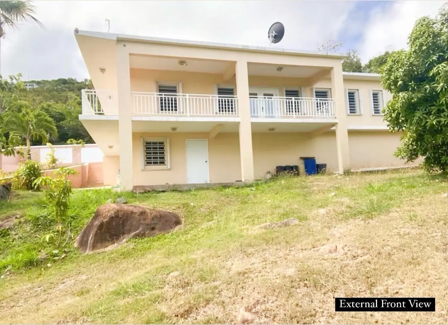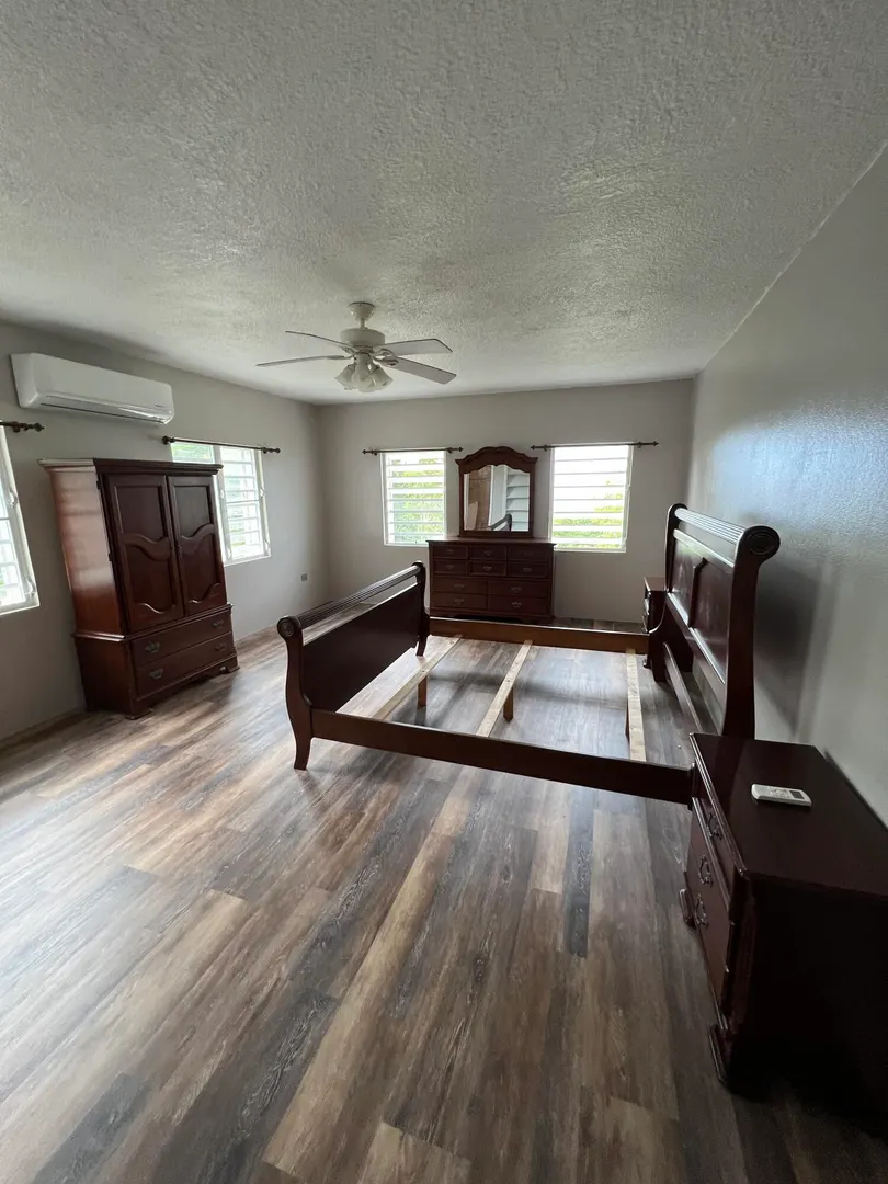 Free-standing, solid concrete construction 4 bedroom, 3 bath home (plus separate office) is located on the quiet northside. Back Up Generator, plenty of parking is move-in read. The lot is perfectly situated at a quiet, end-of-the-road location highlighting mango and avocado trees with nice grassy area and views of Megans Bay and beyond. Exterior porch wraps around from the kitchen to the living room for you to enjoy the views, breezes and beauty of the Northside. See supplement for key amenities list.
