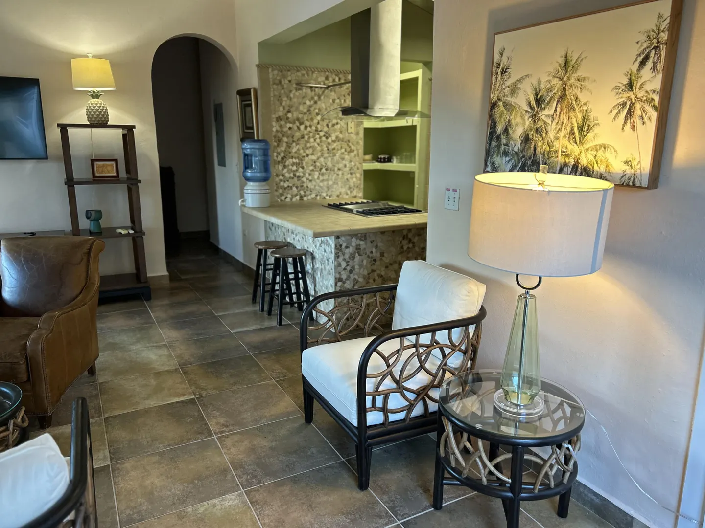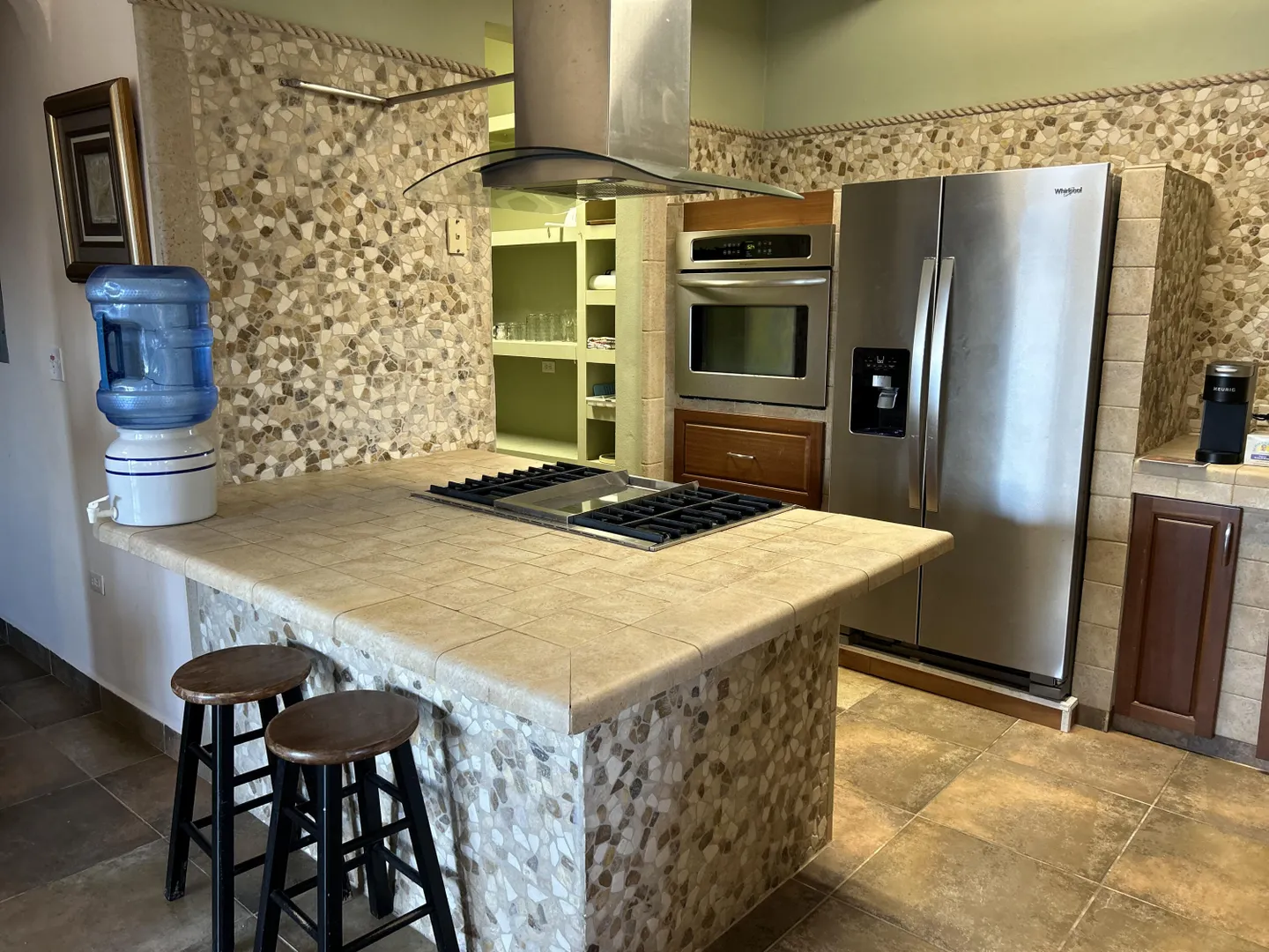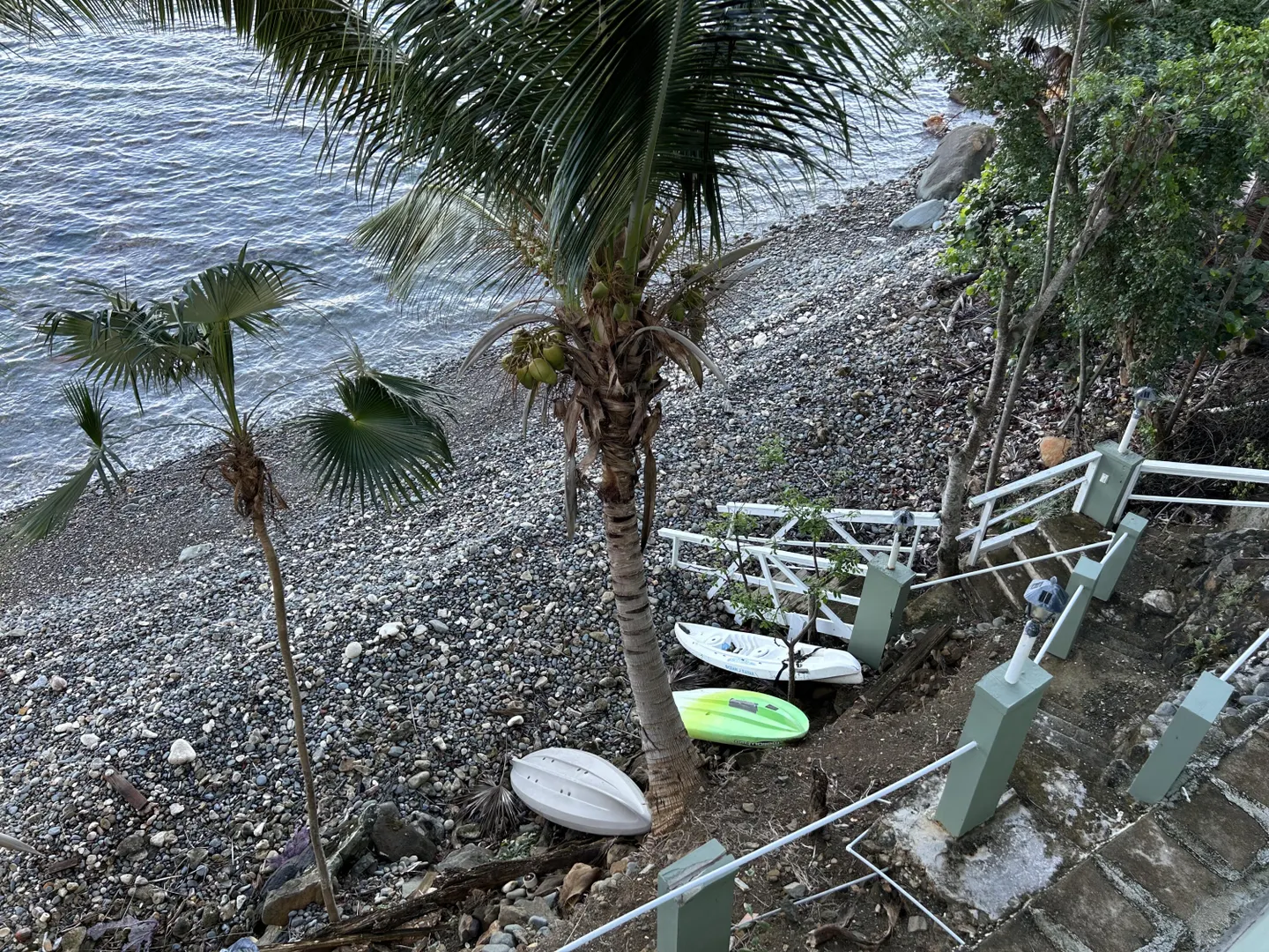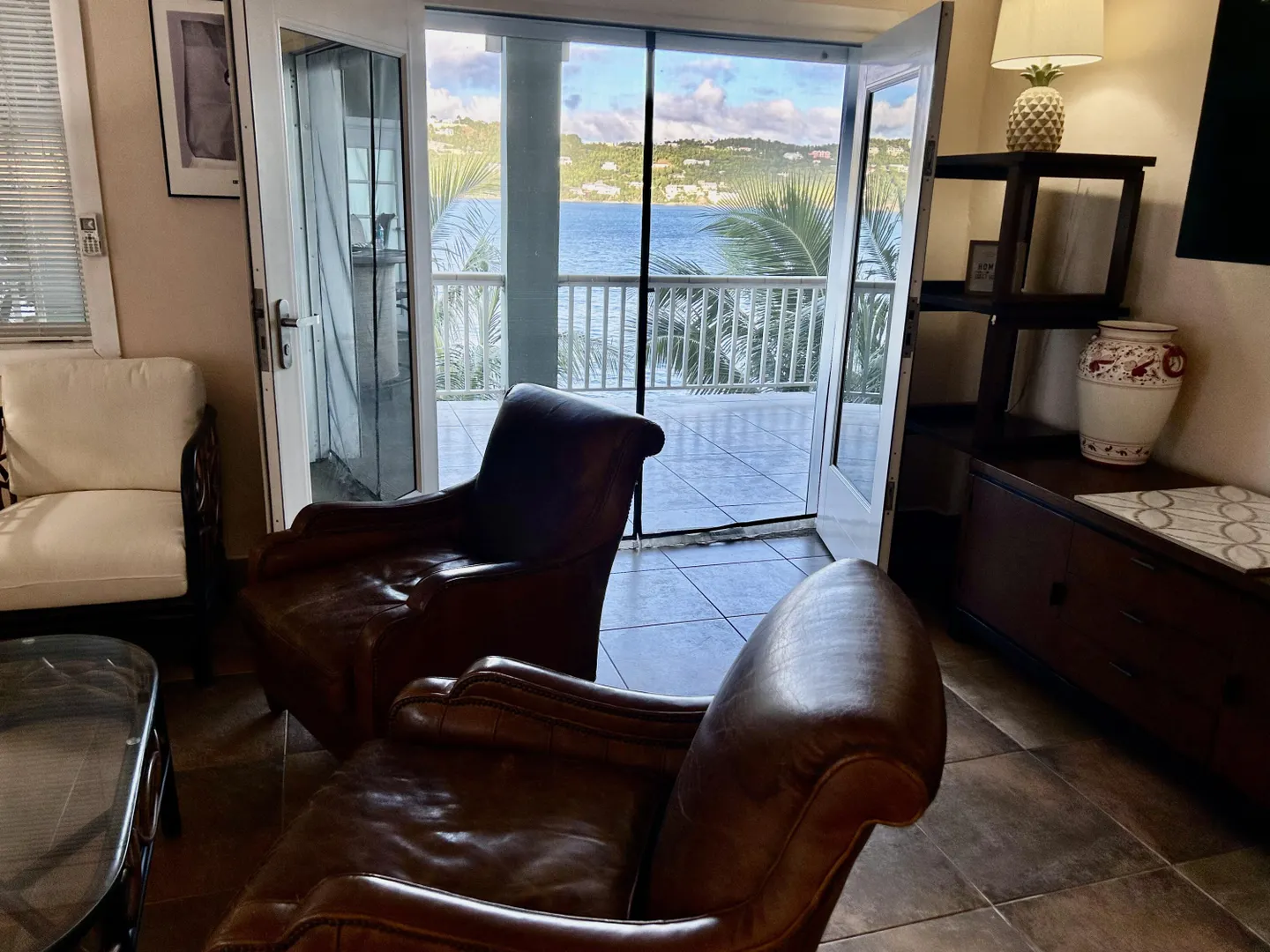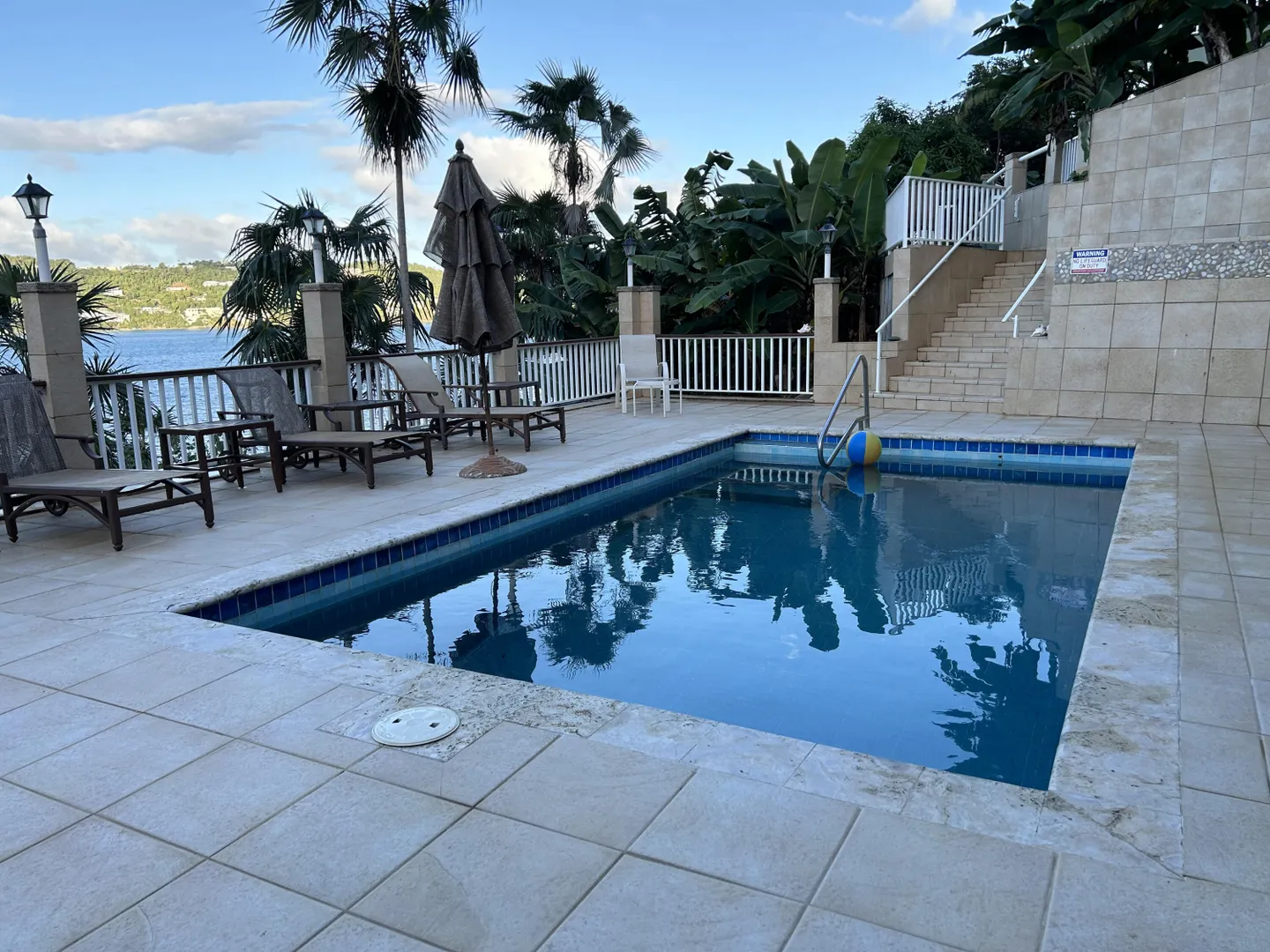 LUXURY WATERFRONT LIVING. This 2/2 apartment sitting on the cool side of Magens Bay features stone finishes, new furnishings, a porch with a wet bar sink,and a dream kitchen for cooking, including a huge pantry. Located in a gated compound with a shared pool and cabana facilities, it also has a W/D, new A/C, Auto Generator, two dedicated parking spaces, and Kayaks at the ready. Just stroll down the stairs from your apartment to Magens Bay! WAPA INCLUDED