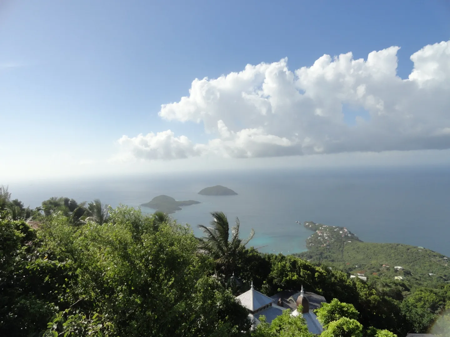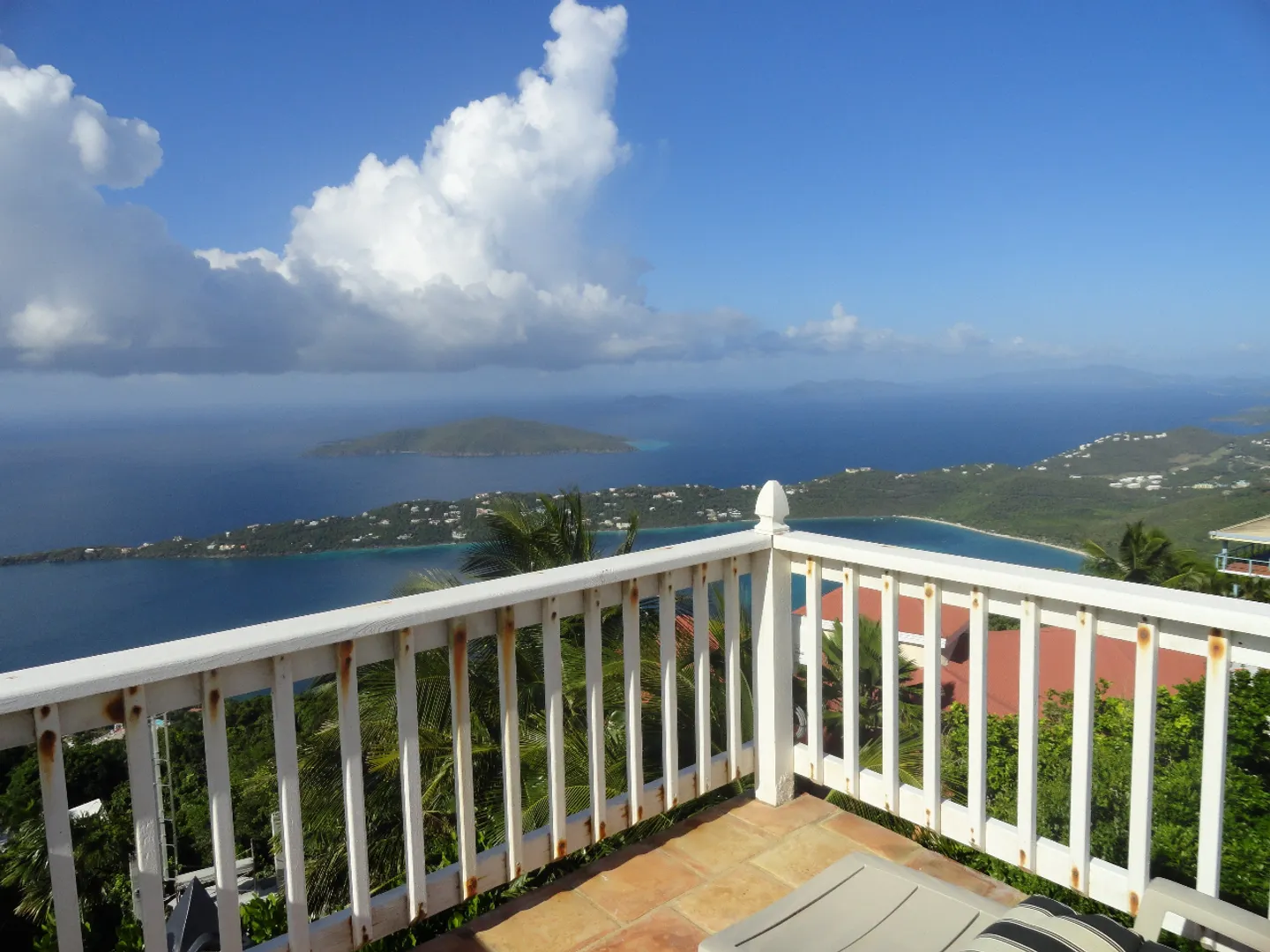 Incredible 2 bedroom, 2 bath home on two levels with garage and jacuzzi. Enjoy panoramic views to the British Virgin Islands from the third floor deck. Living room with 12' ceilings, a fireplace and leather and teak furnishings. Washer/dryer, dishwasher,gas grill, generator. Located on a private estate at Mountain Top in lush tropical grounds. Available for long term rent.