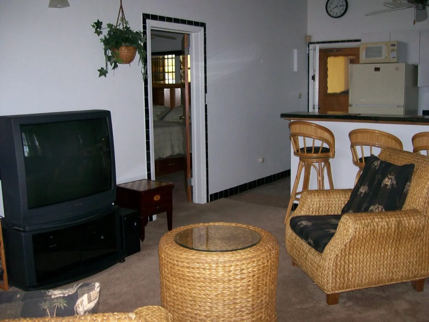 ''Ready to Move-In!'' Spacious open living and kitchen area fully furnished apartment. Two bedrooms with window A/C units in each, ample closet & storage space with connecting bath. Fully equipped with TV's, DVD, and cable ready. Laundry facilities on premises, two parking spaces plus back-up generator. Electric included.