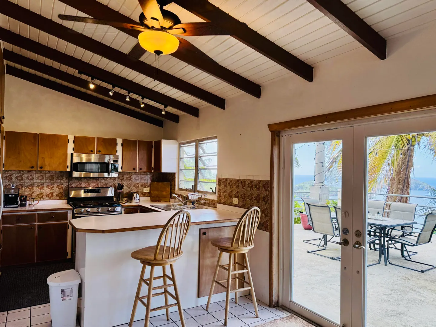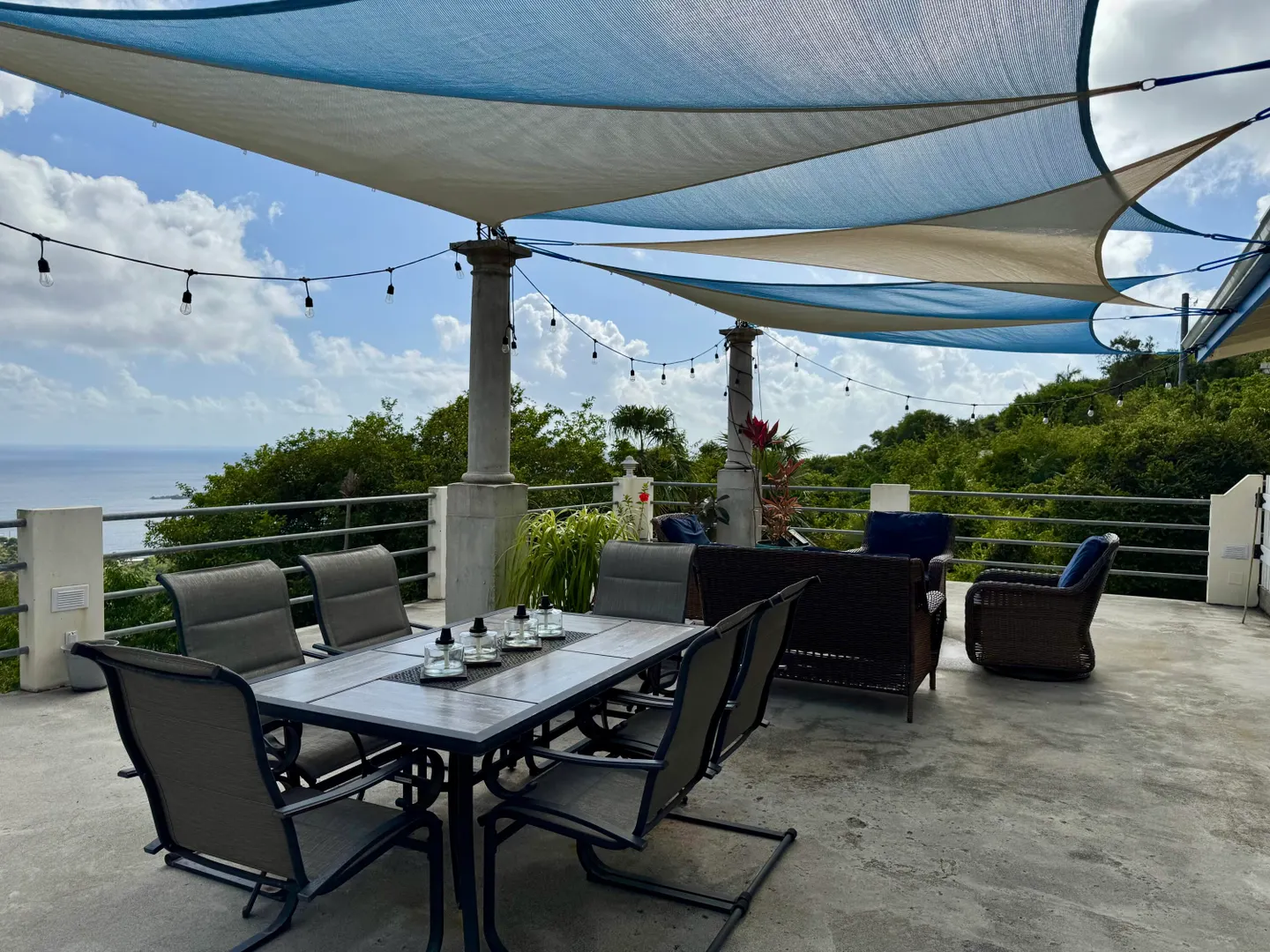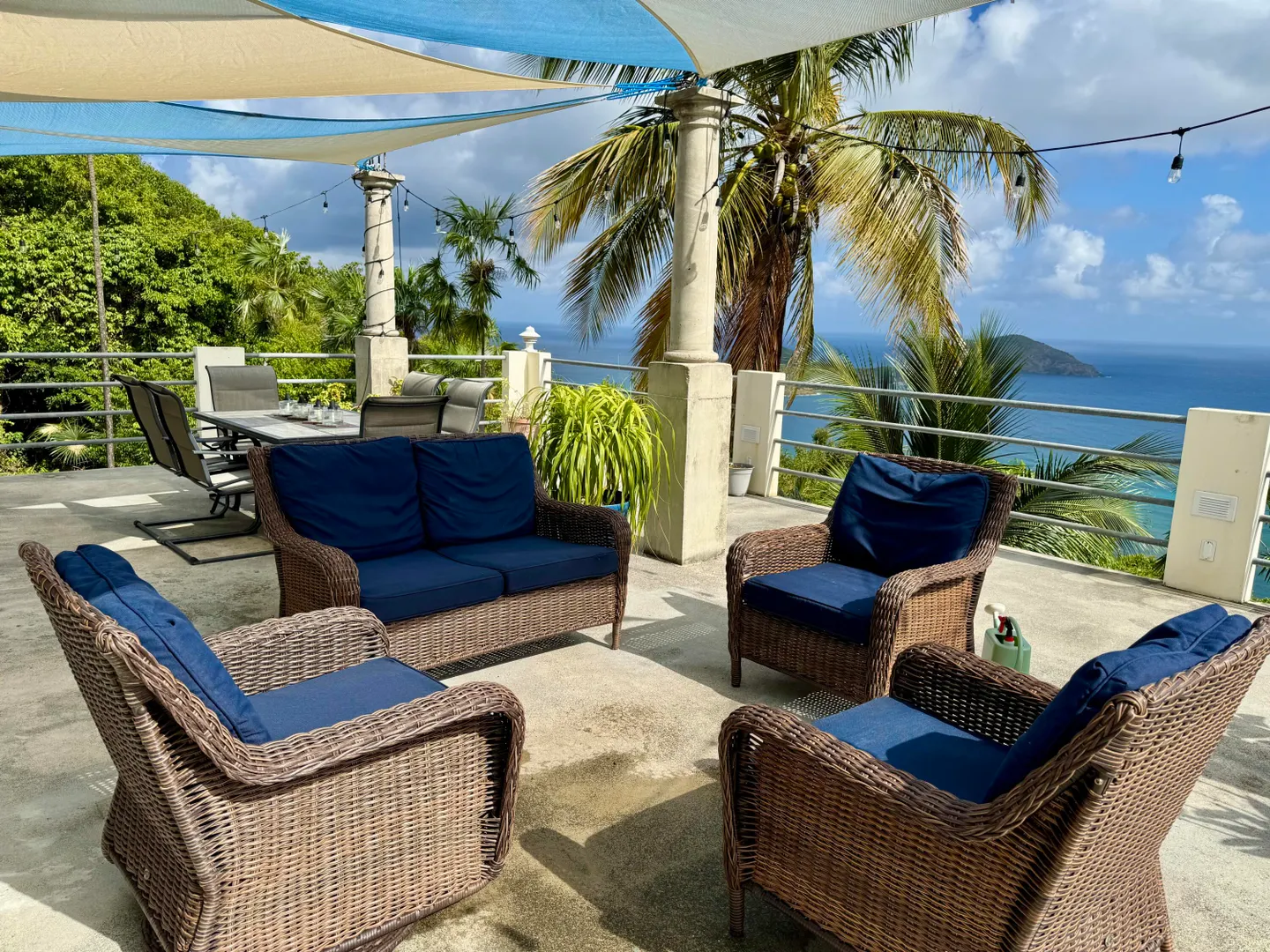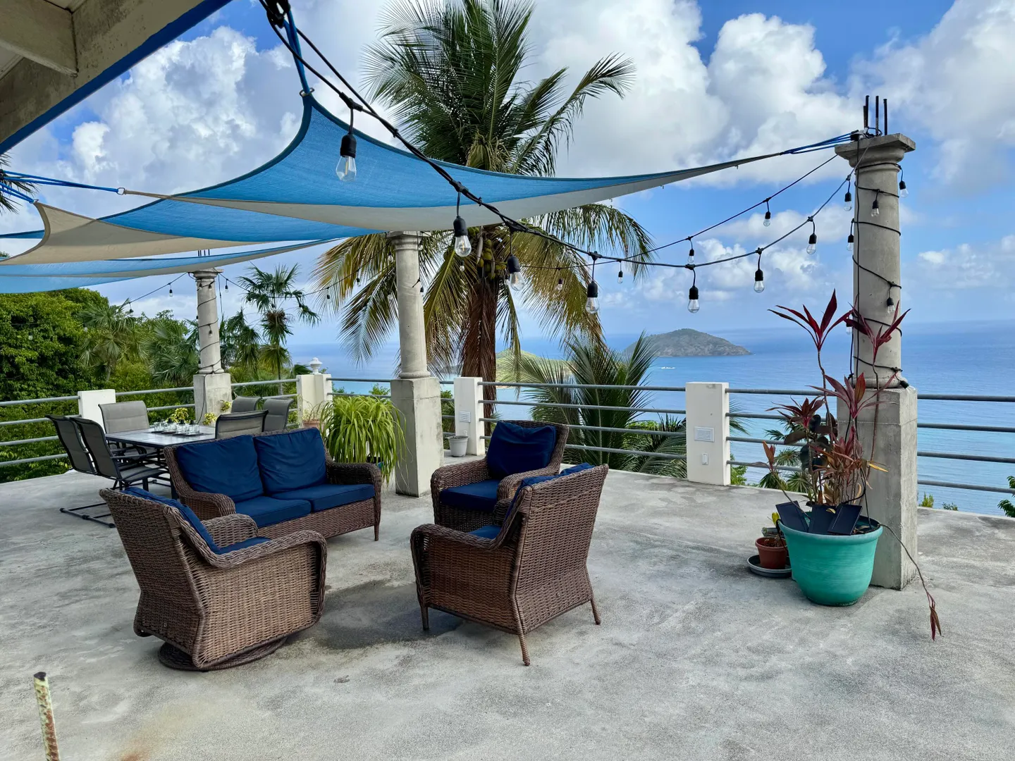 Northside living at its best with a spectacular ocean view all the way to the horizon from your huge balcony patio. Completely furnished, lower level bedroom with its own full bath and separate entry is great for guests. One of the entry level bedrooms could also serve well as a private office. Charming Hull Bay Beach with it's beach bars/restaurants just 2 minutes away...Magens Bay only 10 minutes further!!! NOTE: Entire free-standing 4 bdrm/3 bath home can be rented separately (see MLS# 25-1404) OR Lower 1 bdrm/1 bath may be rented separately (see MLS # 25-1402 ).