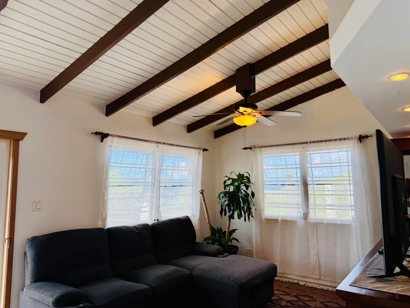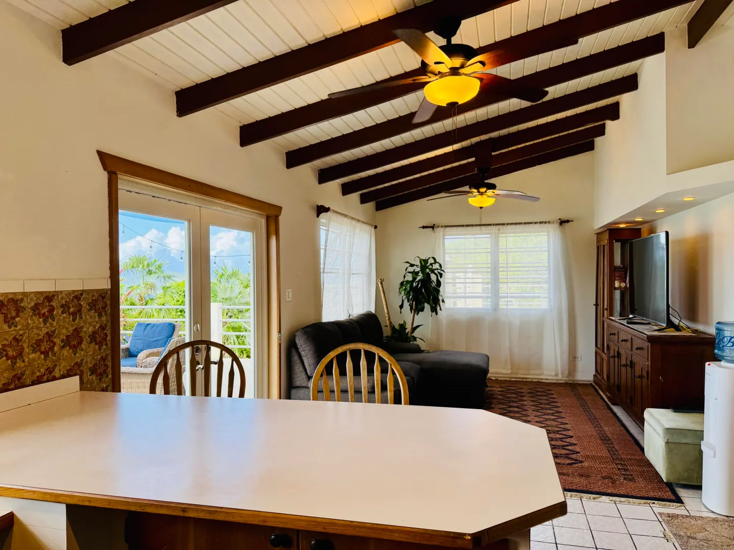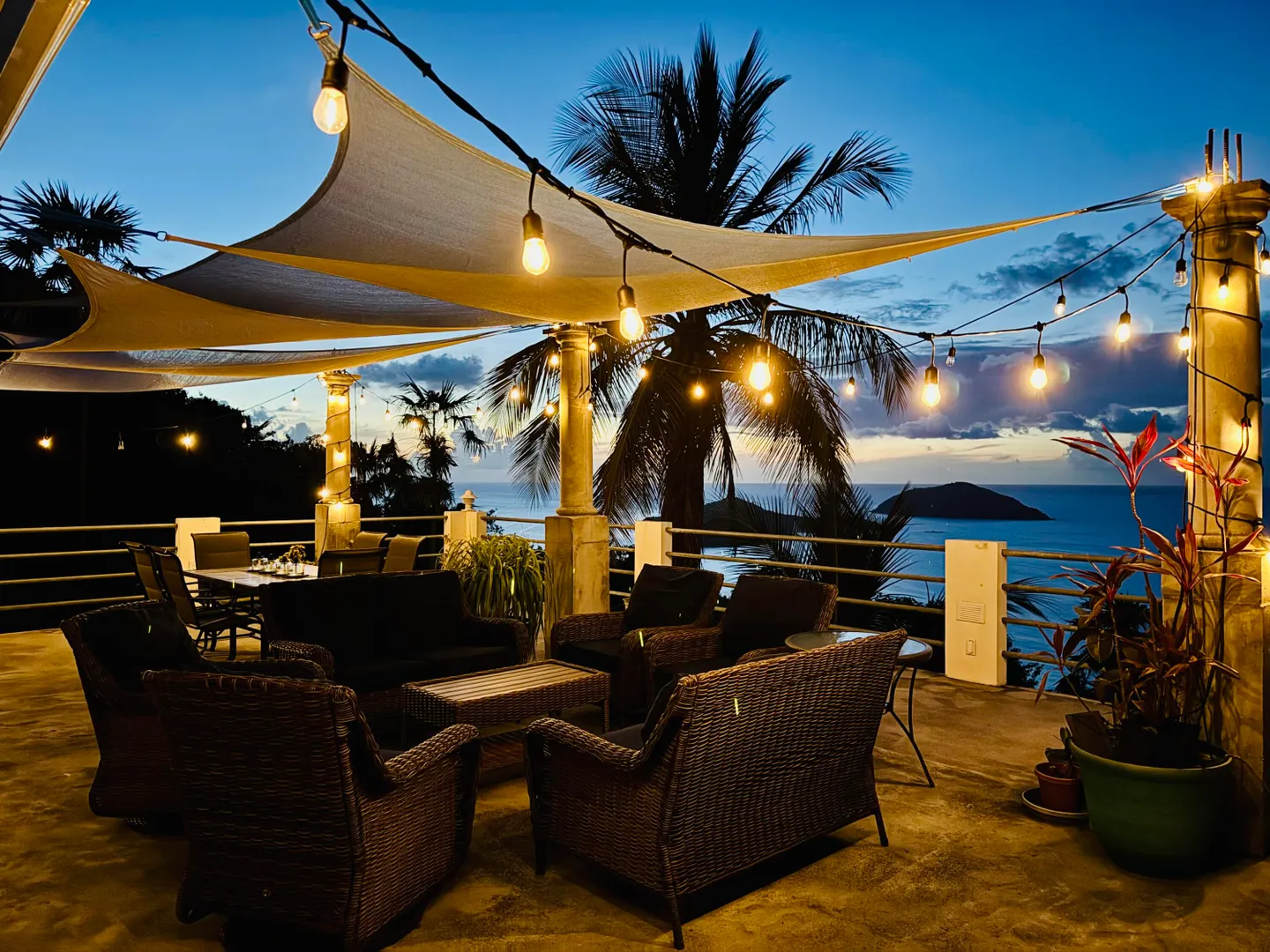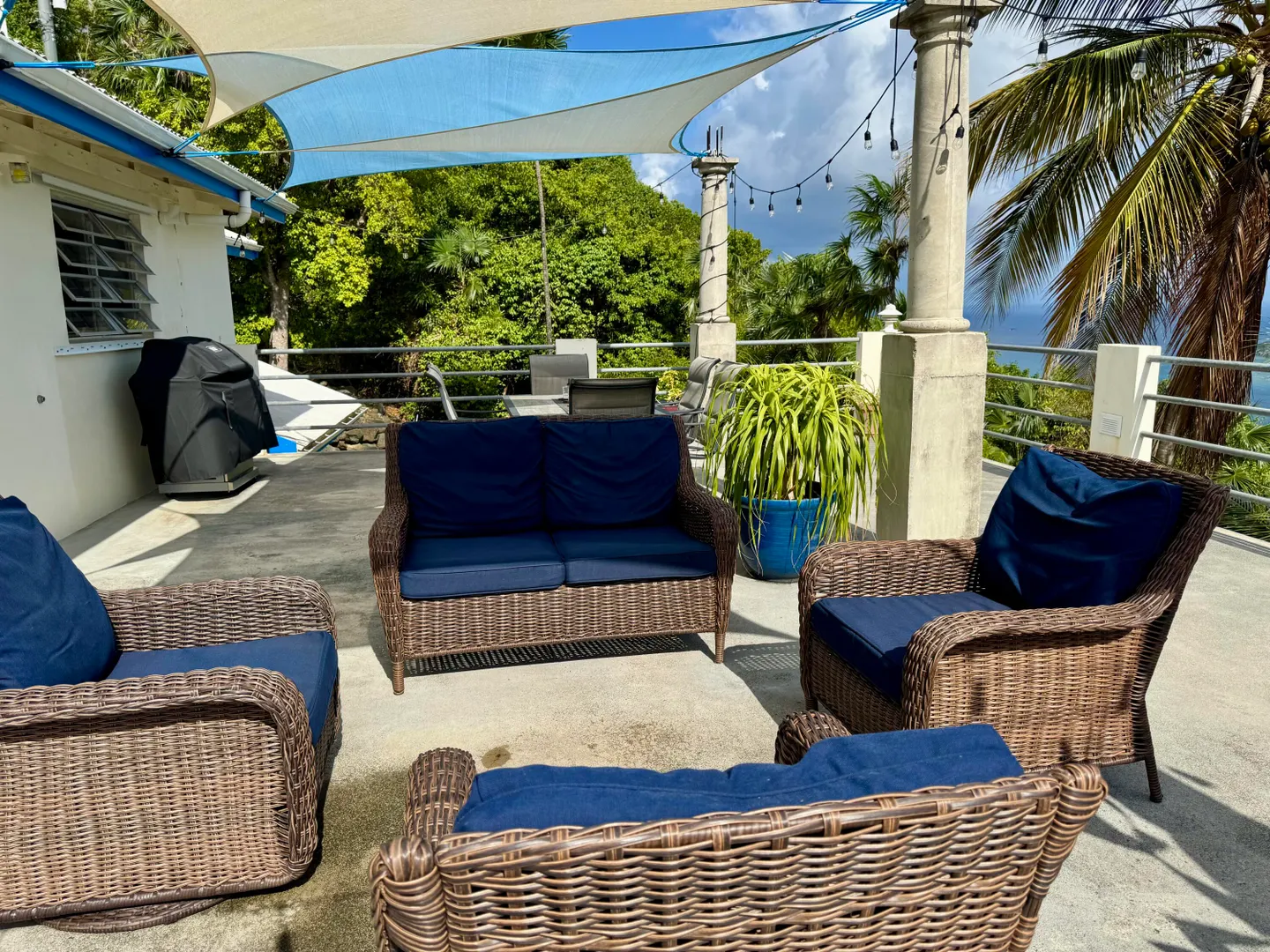 Northside living at its best with a spectacular ocean view all the way to the horizon from your huge balcony patio. Completely furnished, lower level bedroom with its own full bath and separate entry is great for guests. One of the entry level bedrooms could also serve well as a private office. Charming Hull Bay Beach with it's beach bars/restaurants just 2 minutes away...Magens Bay only 10 minutes further!!! NOTE: Entire free-standing 4 bdrm/3 bath home can be rented separately (see MLS# 25-1404) OR Lower 1 bdrm/1 bath may be rented separately (see MLS # 25-1402 ).