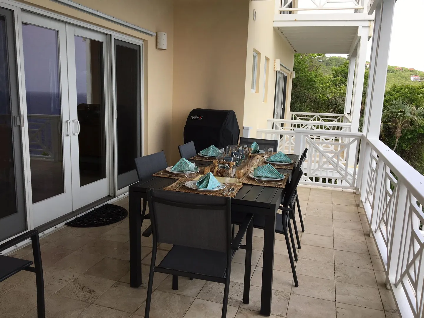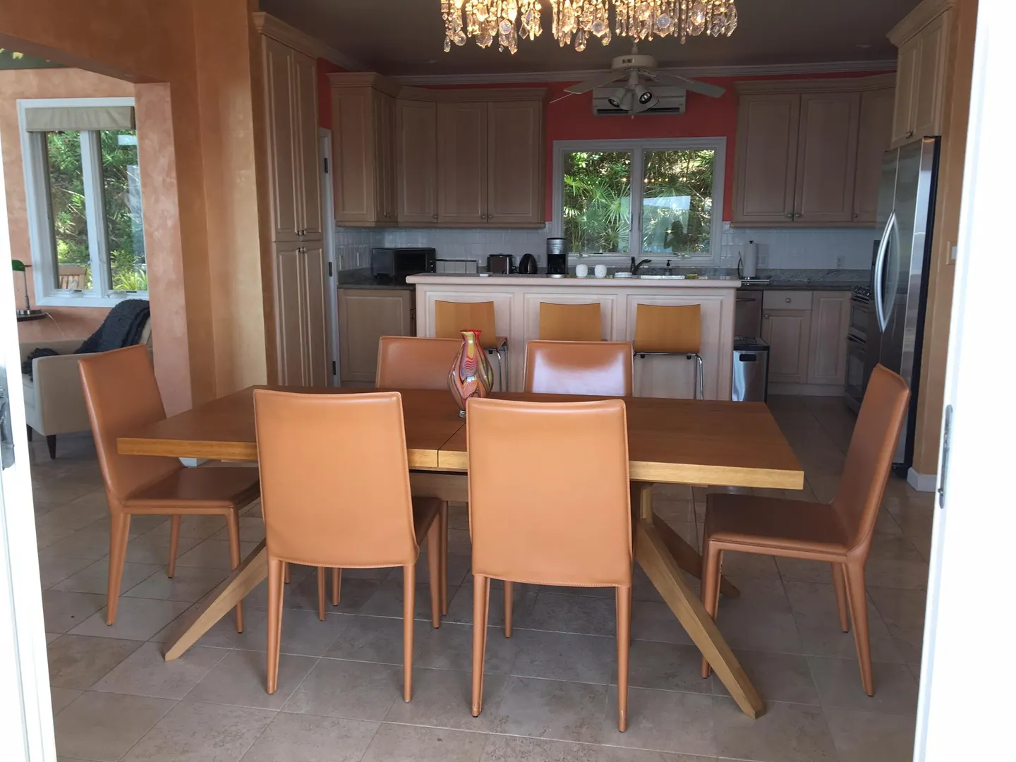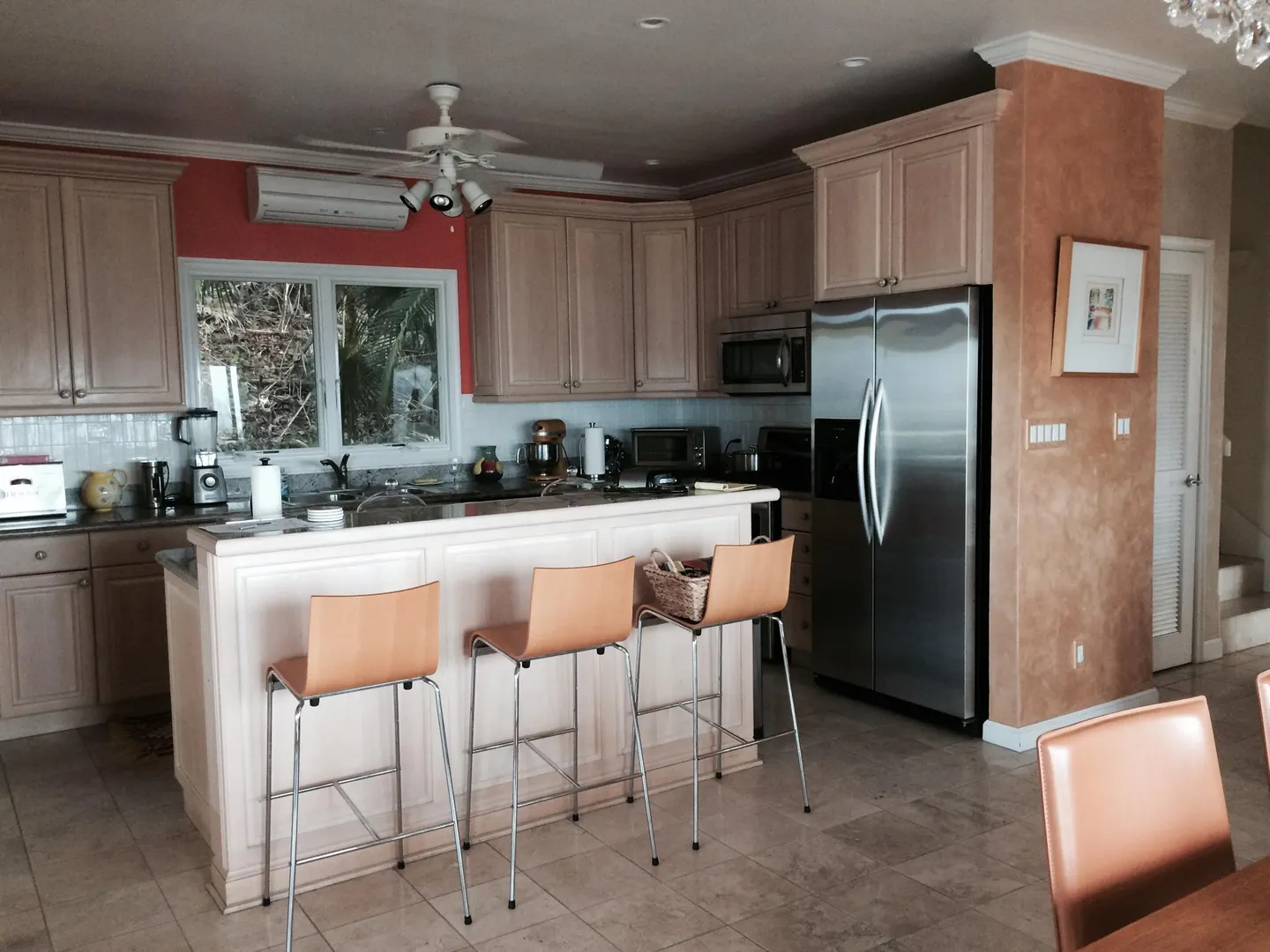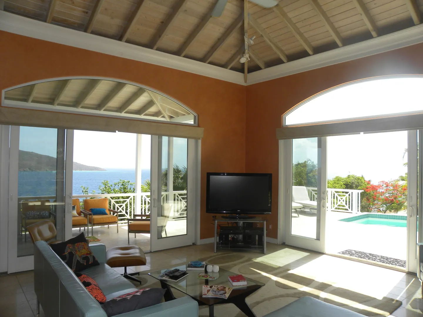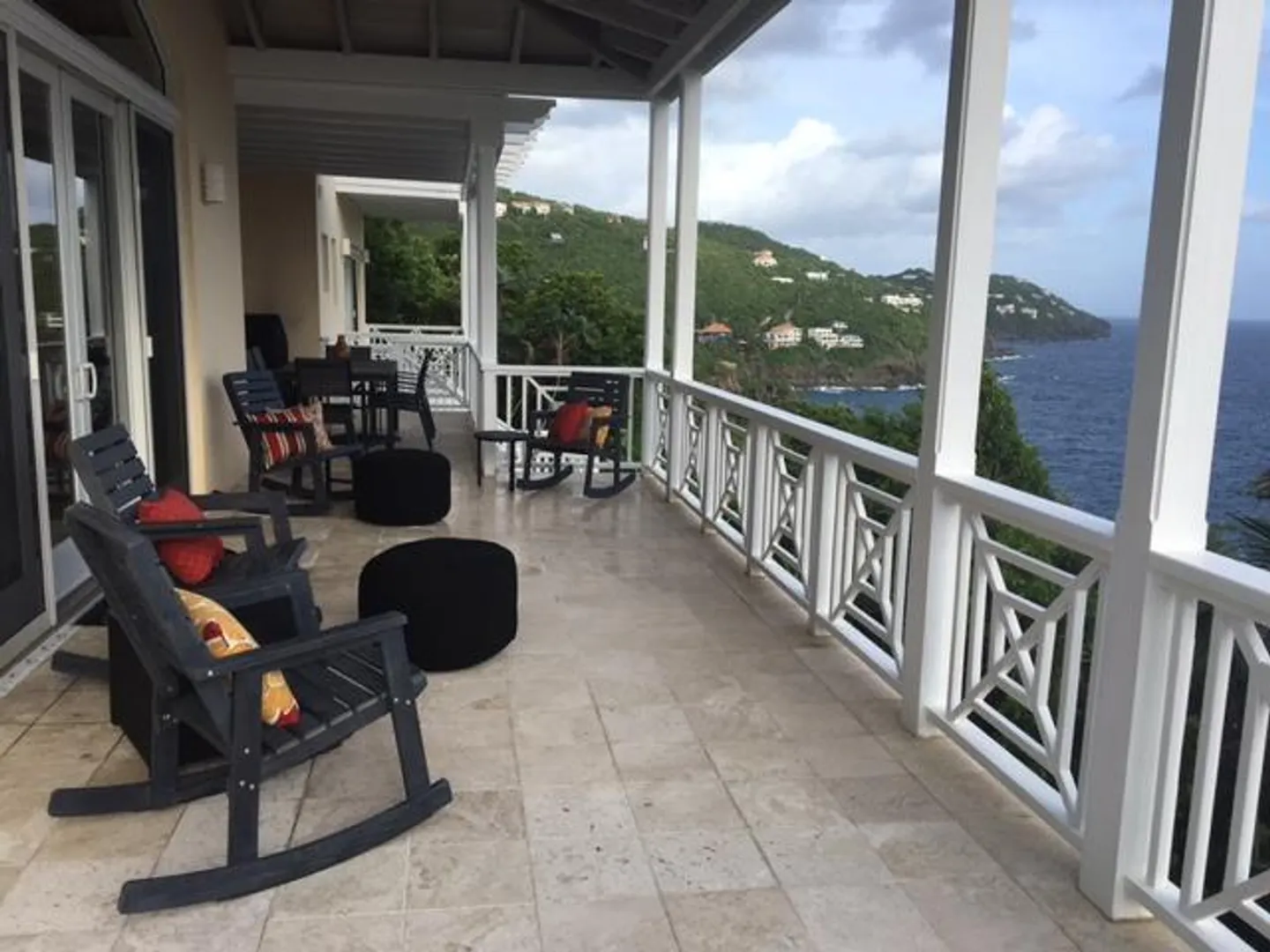 Beautifully furnished & finished, 5 bedroom 4.5 bath Mahogany Run home w/ one bedroom configured as a gym/office. 5th bedroom is a separate studio apartment with full bath and kitchenette. Bedrooms are large. Private location w/ covered gallery & large pool area. Lovely views of Hans Lollick & down island. Refurbished generator. A/C throughout, new living room and master bedroom units recently purchased. All new outdoor furnishings. Showings may be done on short notice.Gym is equipped with treadmill, stationary bike and free weights. New outdoor furniture on order. Pets considered. 2 car garage. Turnkey. First/Last/Security.
