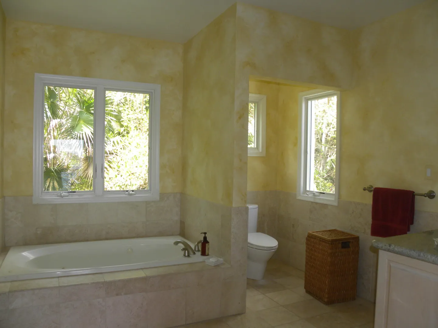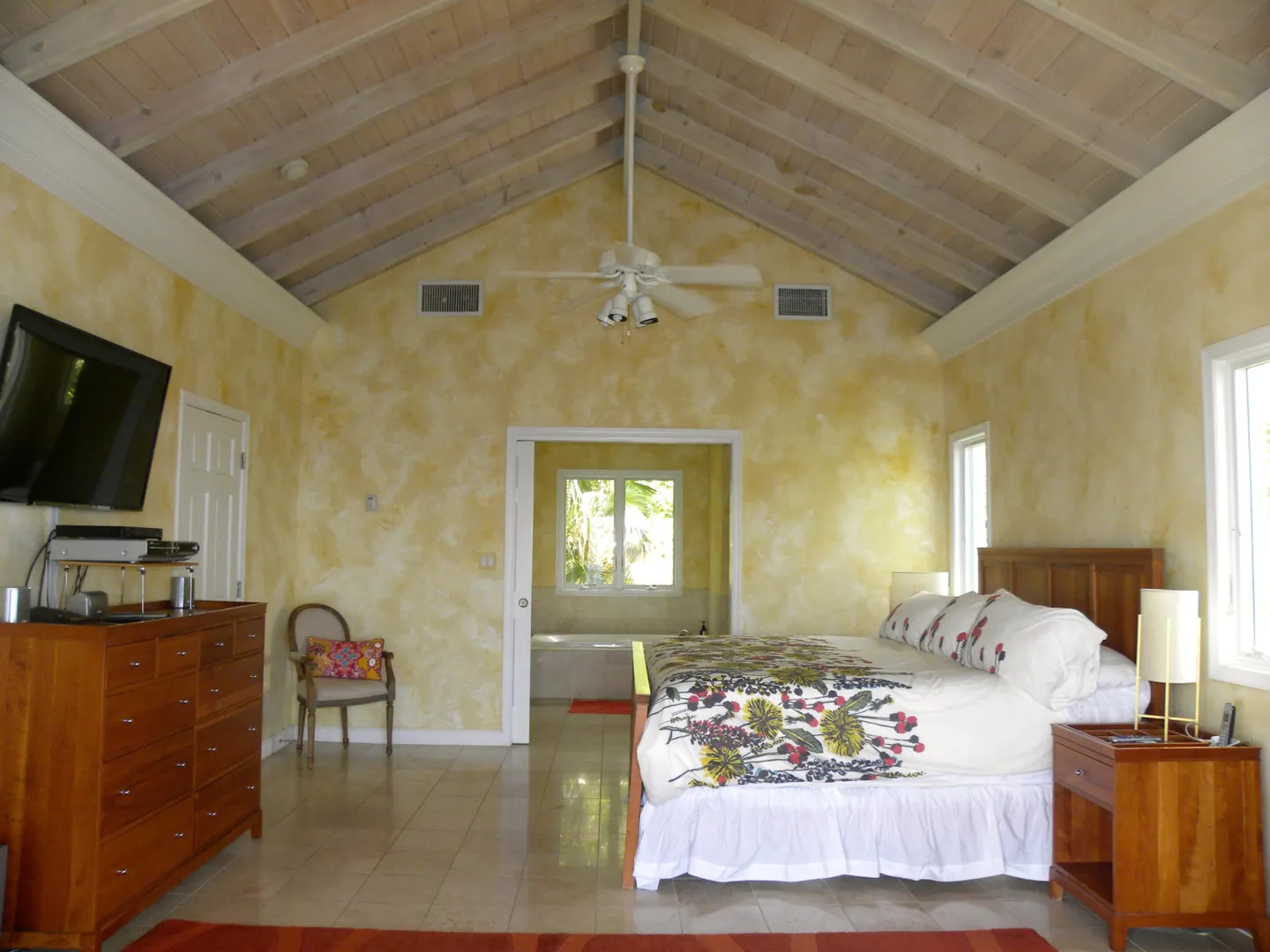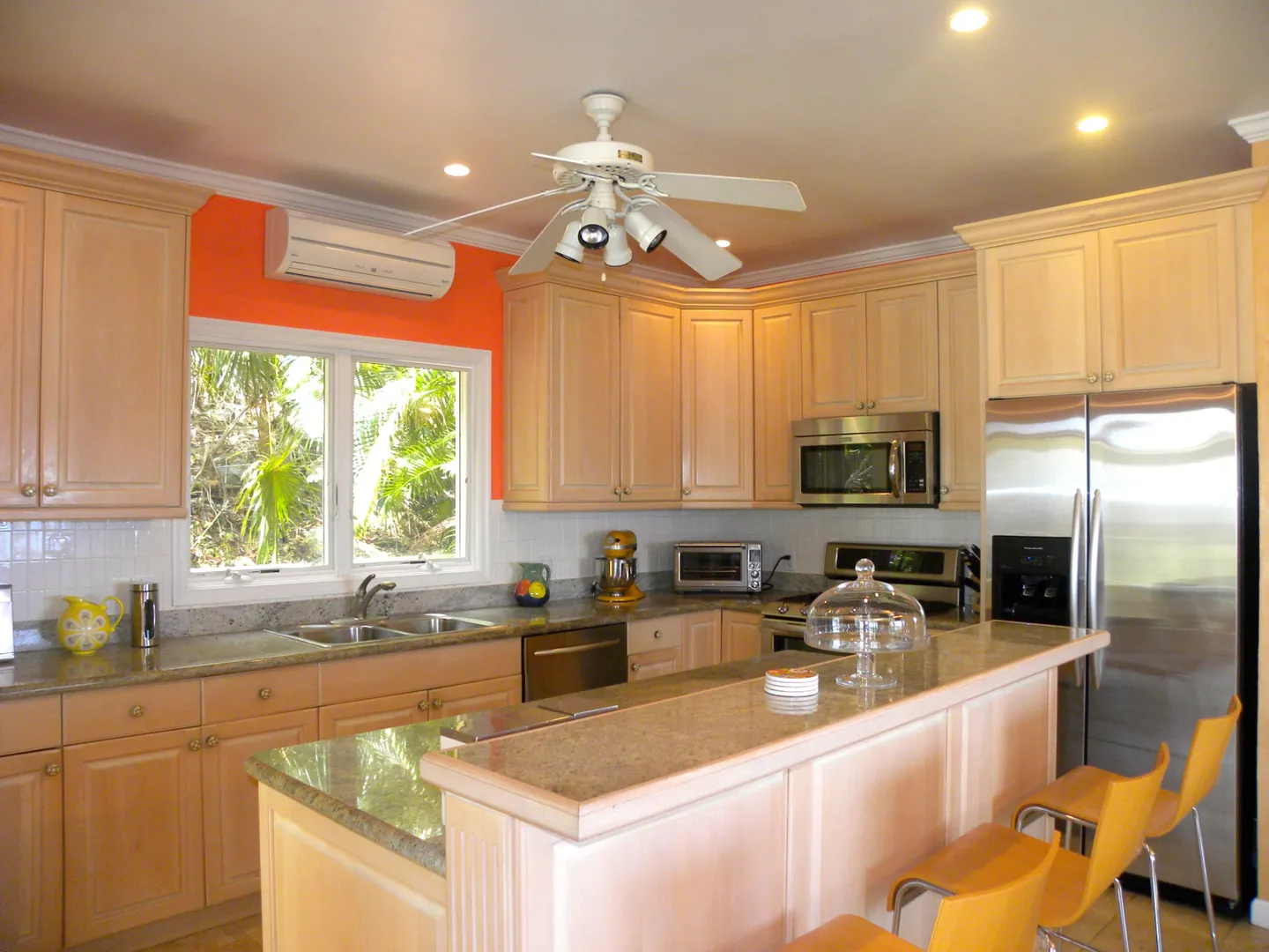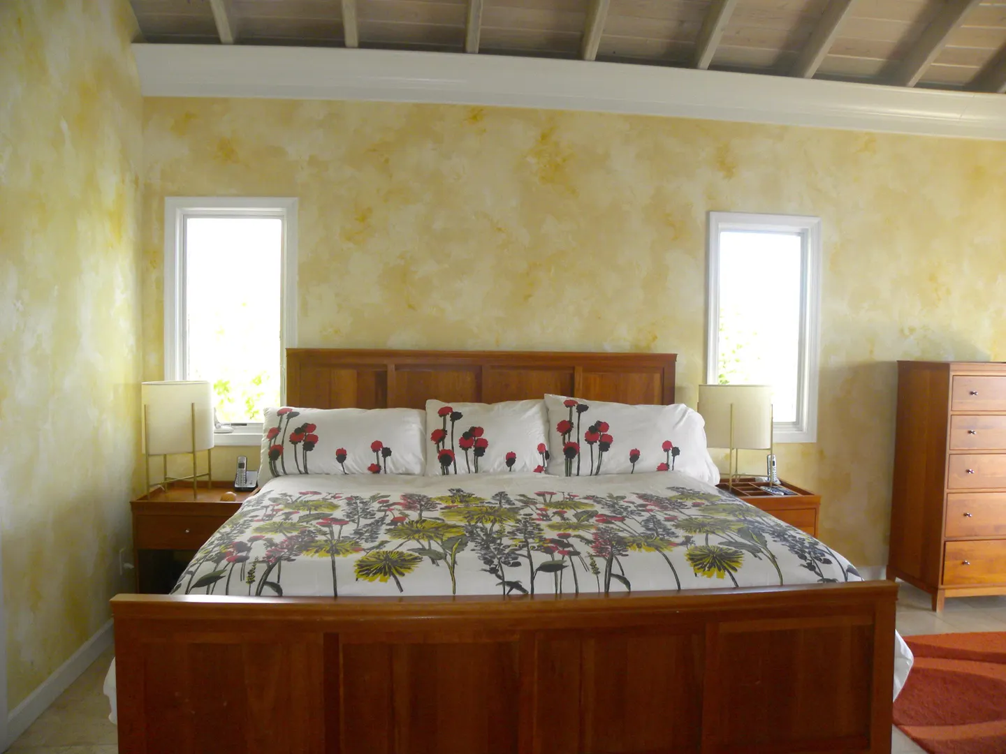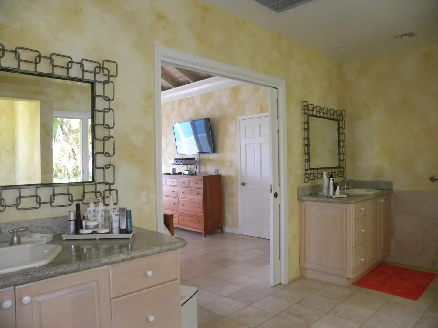 Beautifully furnished & finished, 5 bedroom 4.5 bath Mahogany Run home w/ one bedroom configured as a gym/office. 5th bedroom is a separate studio apartment with full bath and kitchenette. Bedrooms are large. Private location w/ covered gallery & large pool area. Lovely views of Hans Lollick & down island. Refurbished generator. A/C throughout, new living room and master bedroom units recently purchased. All new outdoor furnishings. Showings may be done on short notice.Gym is equipped with treadmill, stationary bike and free weights. New outdoor furniture on order. Pets considered. 2 car garage. Turnkey. First/Last/Security.