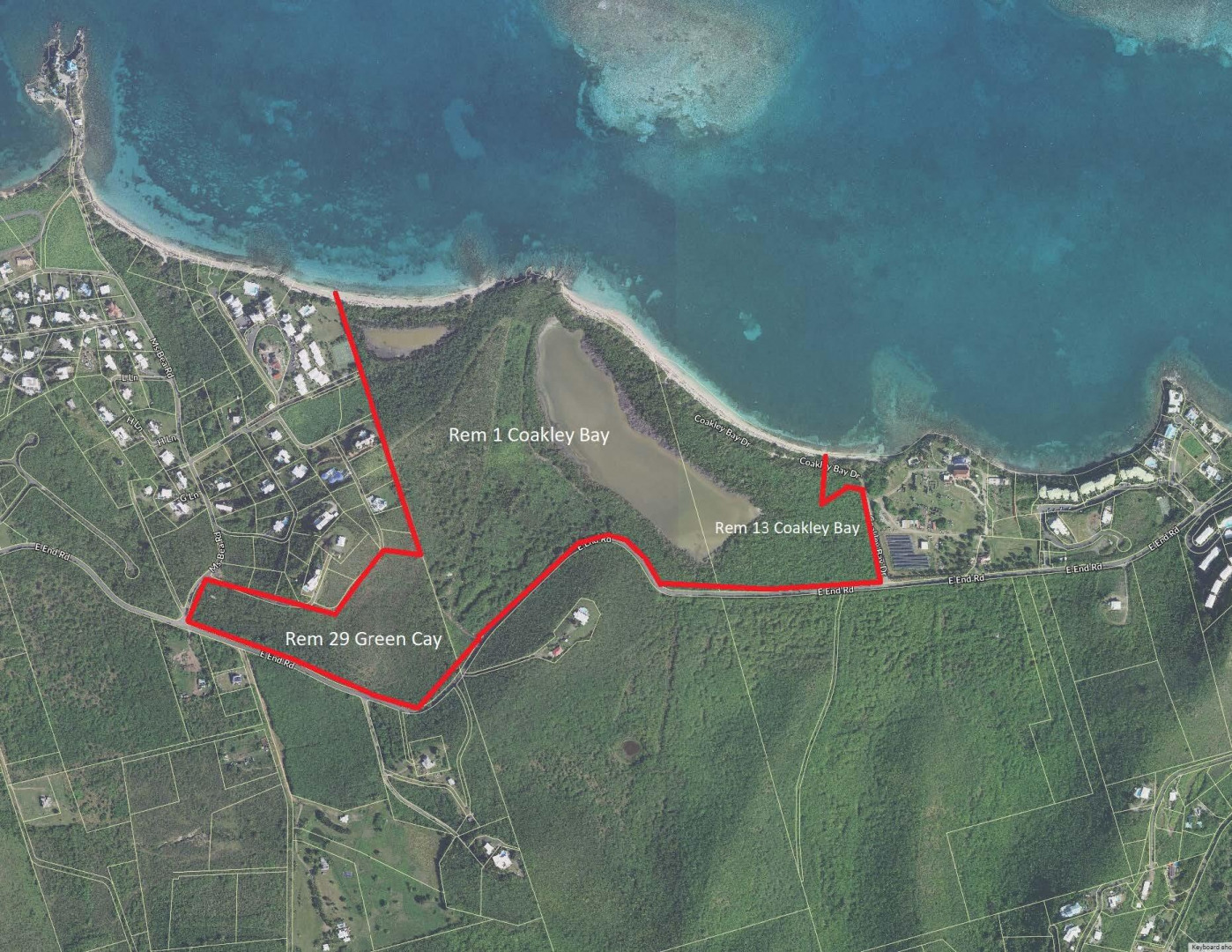 ***Spectacular Beach Front Property***Nearly 100 acres with over 3,000 ft. of gorgeous white sand! St. Croix most desirable East End location; Dual entrances either from Miss Bea Road in Green Cay or along East End Road heading east. The western portion of this parcel is zoned R-3 and is ideal for resort development, or large private estate site or family compound The elevated waterfront point is a spectacular site to build a home or resort. Deeded beach rights to Green Cay beach. Large body of water off beachfront is your very own bird sanctuary! Tropical paradise!