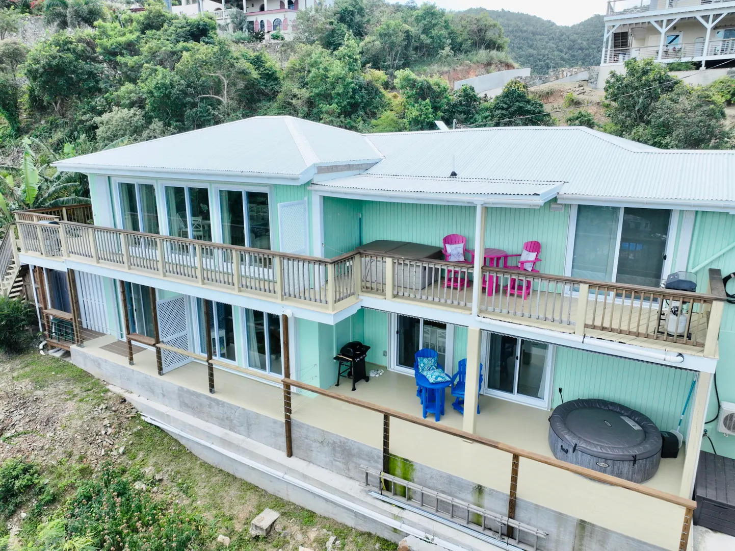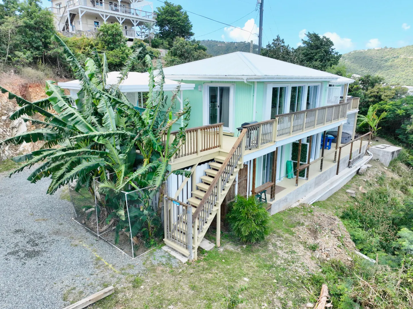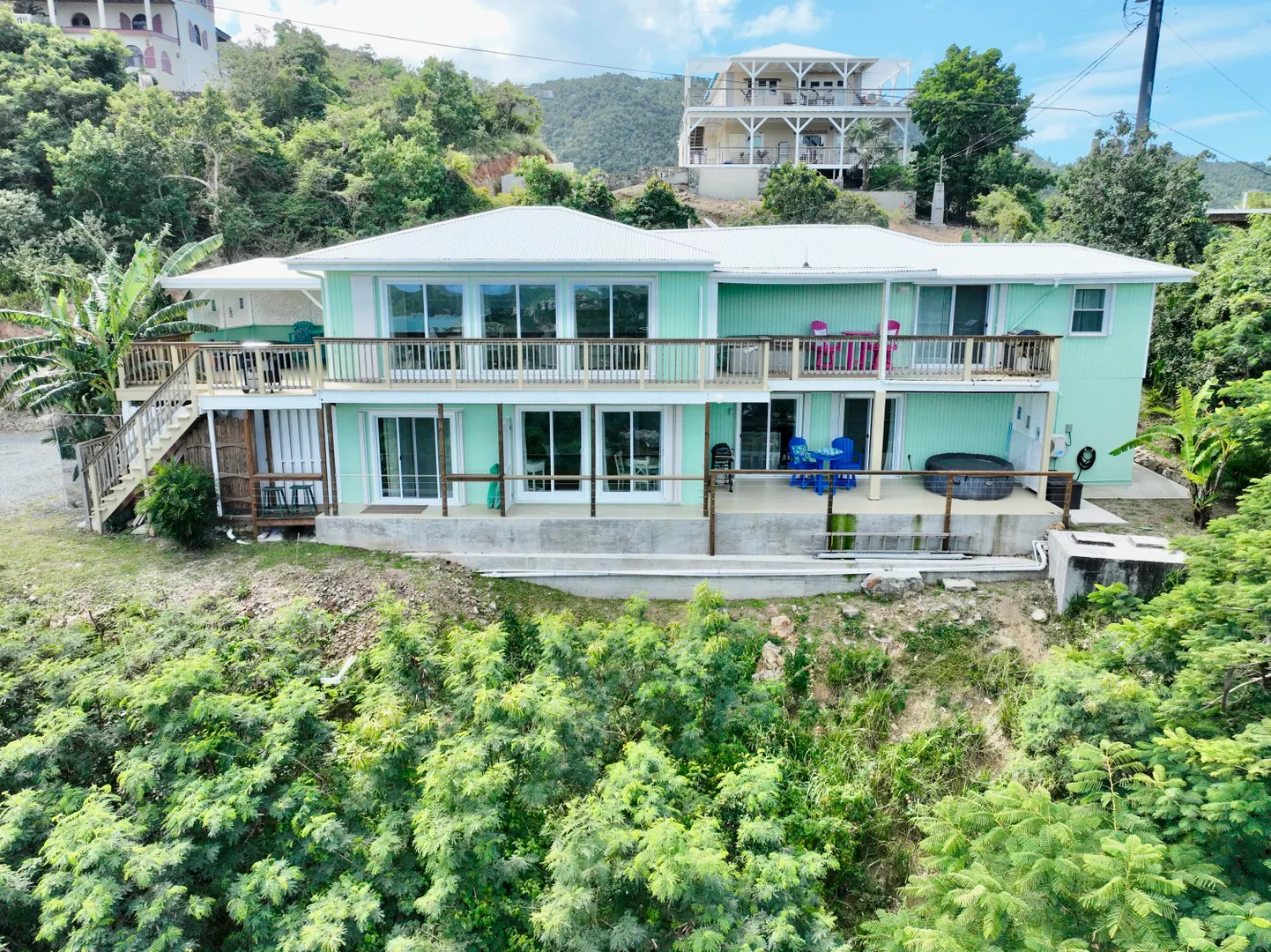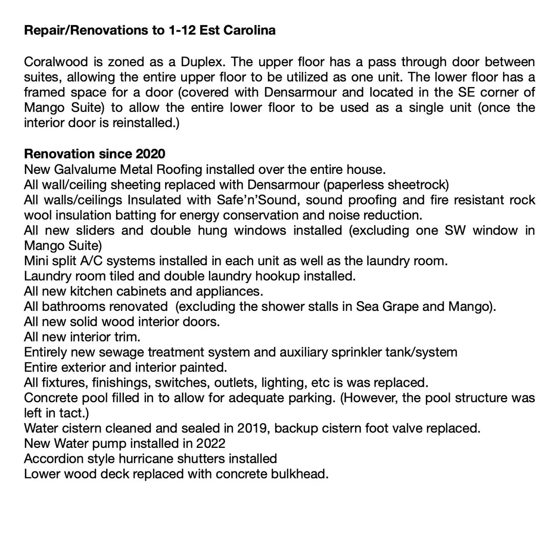PRICED TO SELL WITH A $200k PRICE REDUCTION on CORALWOOD, a beautifully renovated income-producing property with nice water views of Coral Bay Harbor. This flexible floor plan allows for an array of uses. Strong rental income makes this a thriving business opportunity. See P&L under the documents tab. Amenities include ample parking, keyless entries, and 3 hot tubs. Completely rebuilt in 2020, everything is new for you! Views towards the BVI's, hurricane hole, and Carolina below await you. Please find the renovations list on documents tab. INSURANCE AVAILABLE