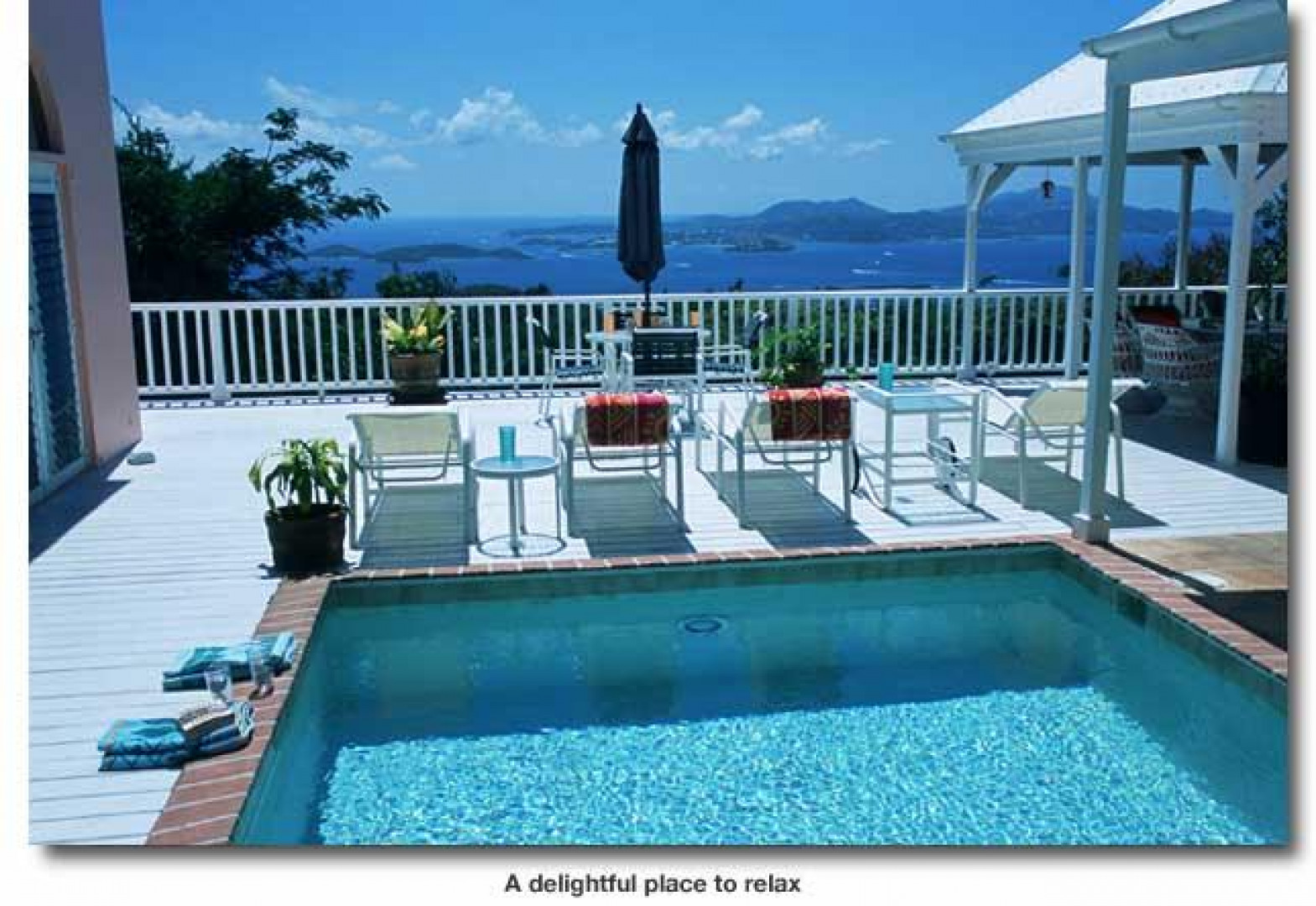 'Coconuts', one of the 'Gifft Hill Villas', offers impressive views of Pillsbury Sound, St. Thomas and neighboring cays. Enjoy memorable sunsets and the twinkling lights of St. Thomas from the new covered, tastefully furnished, outdoor living area and spacious sundeck. From the newly configured parking area one enters a gated, central courtyard with inground pool. SEE SUPPLEMENT !!From the newly configured parking area one enters a gated, central courtyard with inground pool. To the left is the Caribbean style kitchen with an open bar and adjoining utility pantry. Just beyond is a spacious great room and indoor dining area plus a full bath, and stair case up to a large loft bedroom. The bedroom wing with two private suites is to the right of the pool. Convenience to town and beaches, paved access, a flat lawn with plenty of room to expand, nice breezes and incredible views make this villa a favorite short term rental and a great island home.