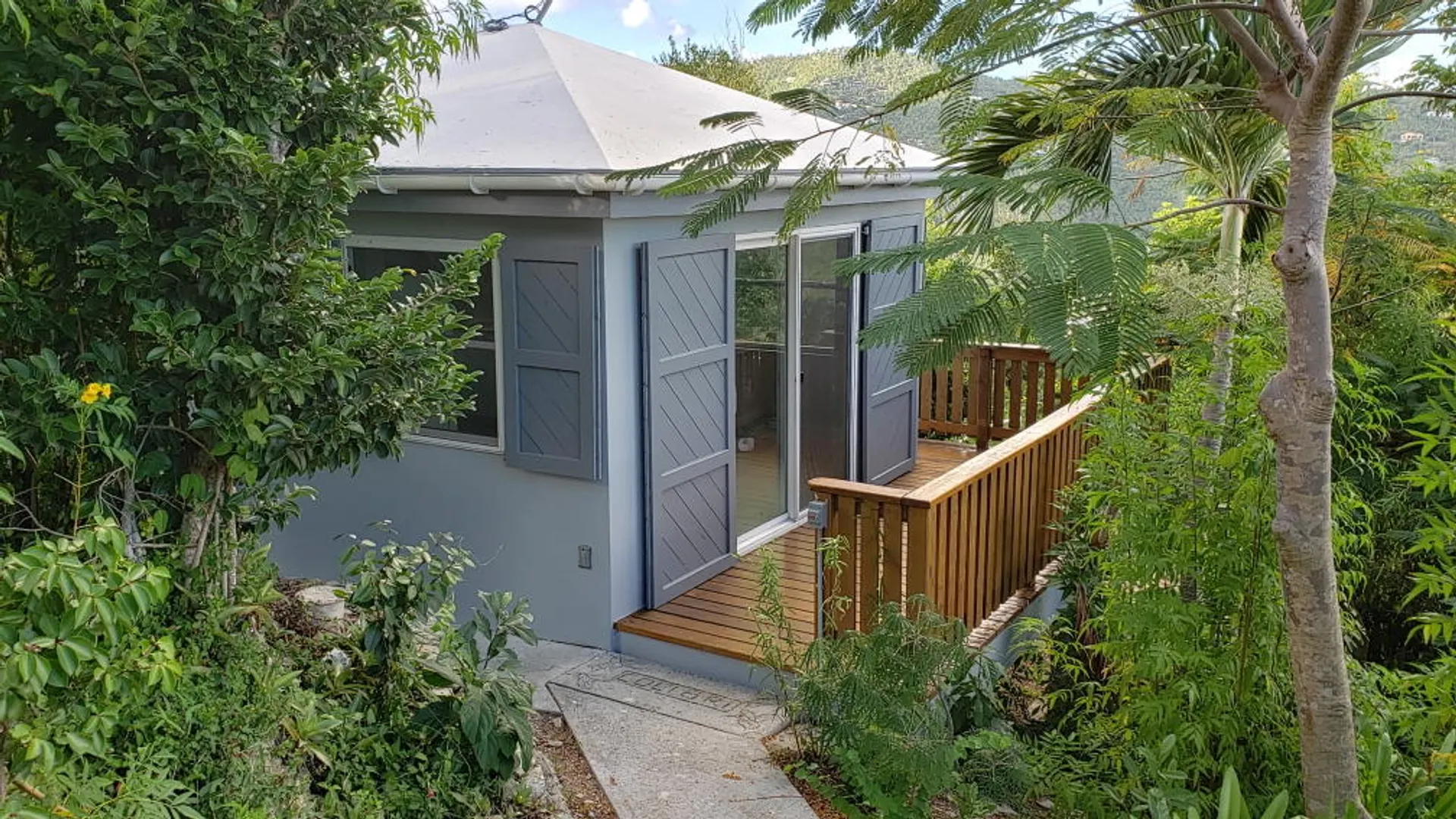 Enjoy breathtaking water views over Coral Bay and the BVI all the way to Virgin Gorda from this solid masonry two bedroom home with separate guest cottage. A complete makeover has just been completed and the house looks and feels like brand new. All structures were freshly painted inside and out with all new windows and doors, new fixtures and new tile throughout, including decks. The result is a clean, aesthetically pleasing home that is naturally bright and airy. It features a gated entry, lush landscaping, artistic designed hand laid mosaic walkways and stonework, a separate guest cottage with the same amazing views, plenty of storage areas, a workshop, and a lower level tiled veranda that could be enclosed as an additional bedroom. This home is unoccupied and is being offered......as is. The new owner will have the opportunity to design a new kitchen and furnishings to their own taste. The adjacent half-acre parcel with a level building envelope on a knoll has a paved driveway and is available for purchase (see MLS#19-458). See as-built survey map in Documents