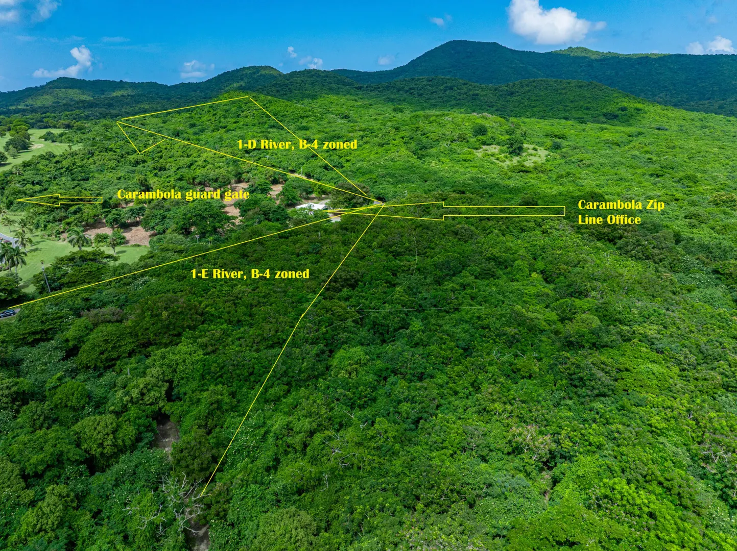 BUSINESS ZONED 24+ ACRES ACROSS FROM CARAMBOLA GOLF COURSE AND ZIP LINE! Discover an exceptional opportunity with this B-zoned vacant parcel, ideally situated directly across from the Carambola Golf Course and neighborhood guard gate. This mostly flat and buildable lot offers endless potential for development, investment, or your next custom project. The land is currently overgrown, providing a blank slate ready for transformation. Its prime location offers both convenience and accessibility -- just minutes from grocery stores, main roadways, and essential amenities. Centrally located, this property provides easy access to all parts of the island while maintaining a peaceful, residential atmosphere.