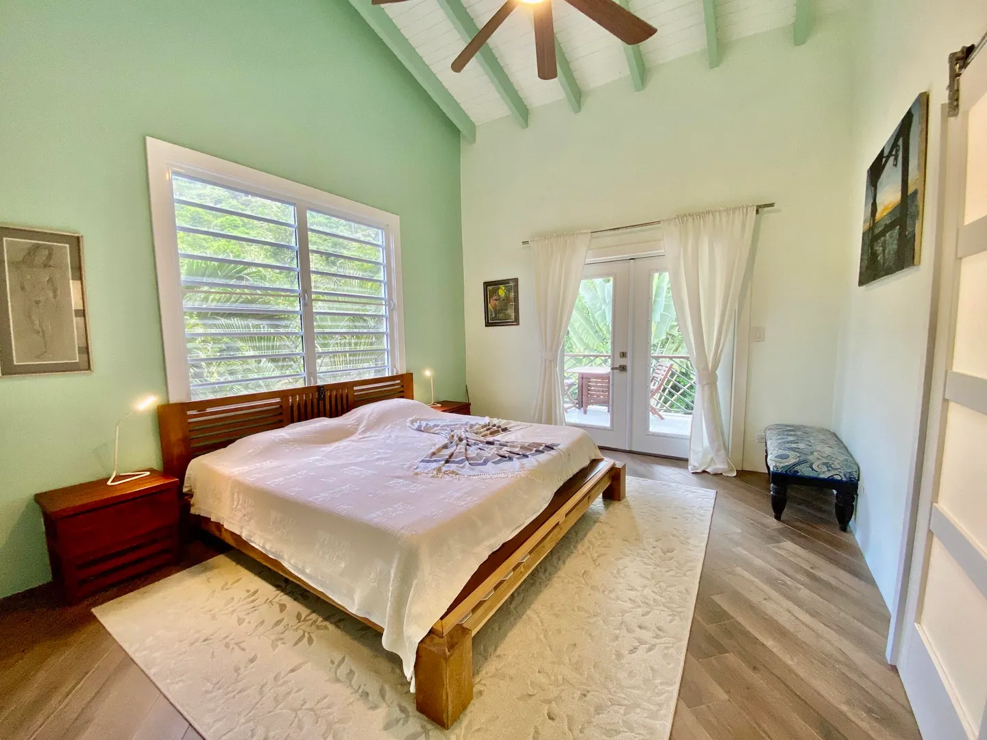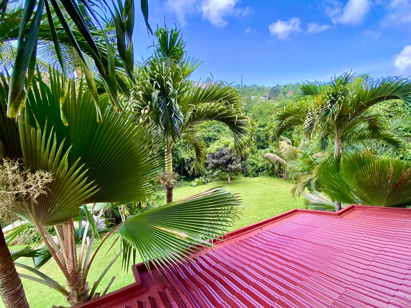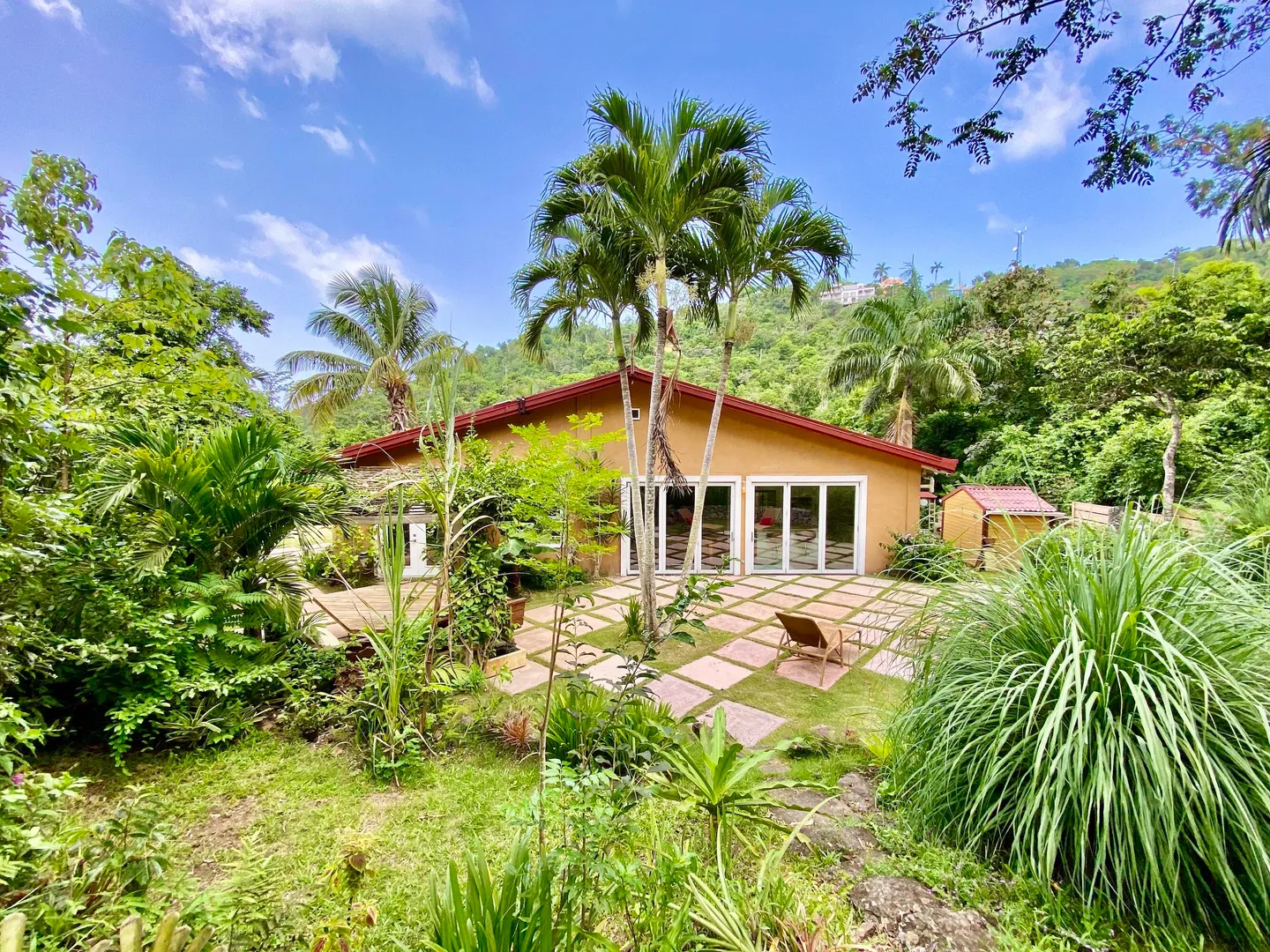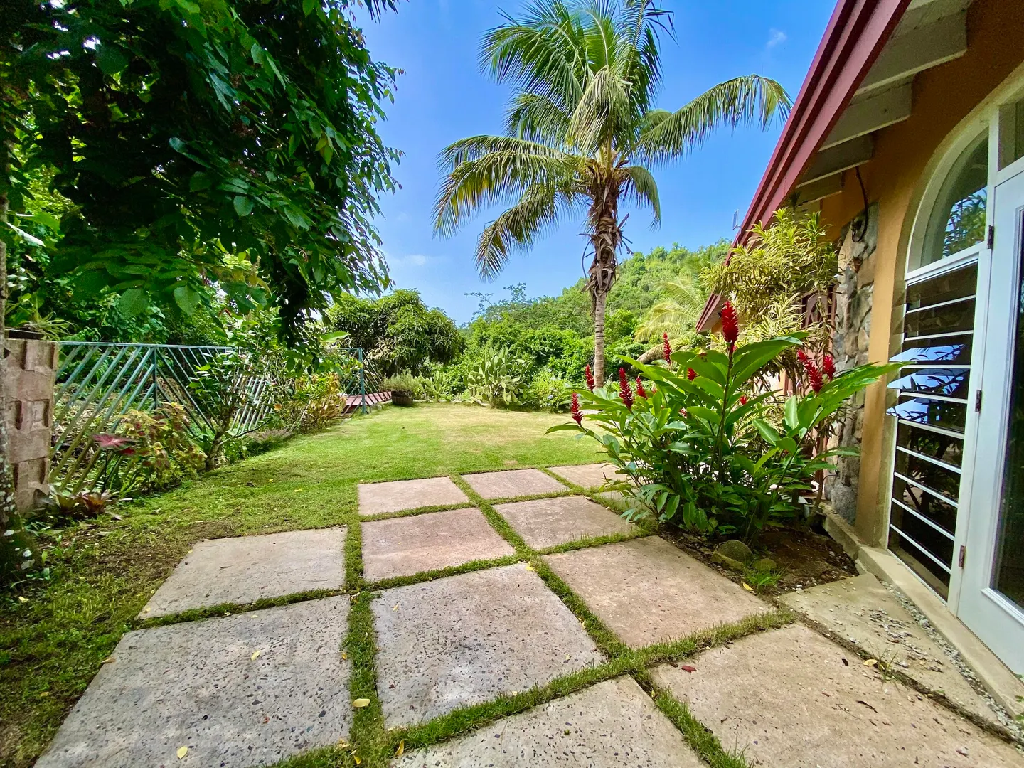 This house is located on the tropical, lush north side of St. Thomas surrounded by various fruit trees, flat green yard space and a serene outdoor dining area. This well-built concrete house offers 4 bedrooms and 3 bathrooms with an office upstairs and a mother-in-law suite below. There is also a 2 bedroom/1.5 bathroom apartment below for rental income or guests. The main house and the mother-in-law suite are connected to solar and has net metering. The house is set up to add more panels so you can include the apartment. Two 30K gallon cisterns hold more than enough water for a full house!