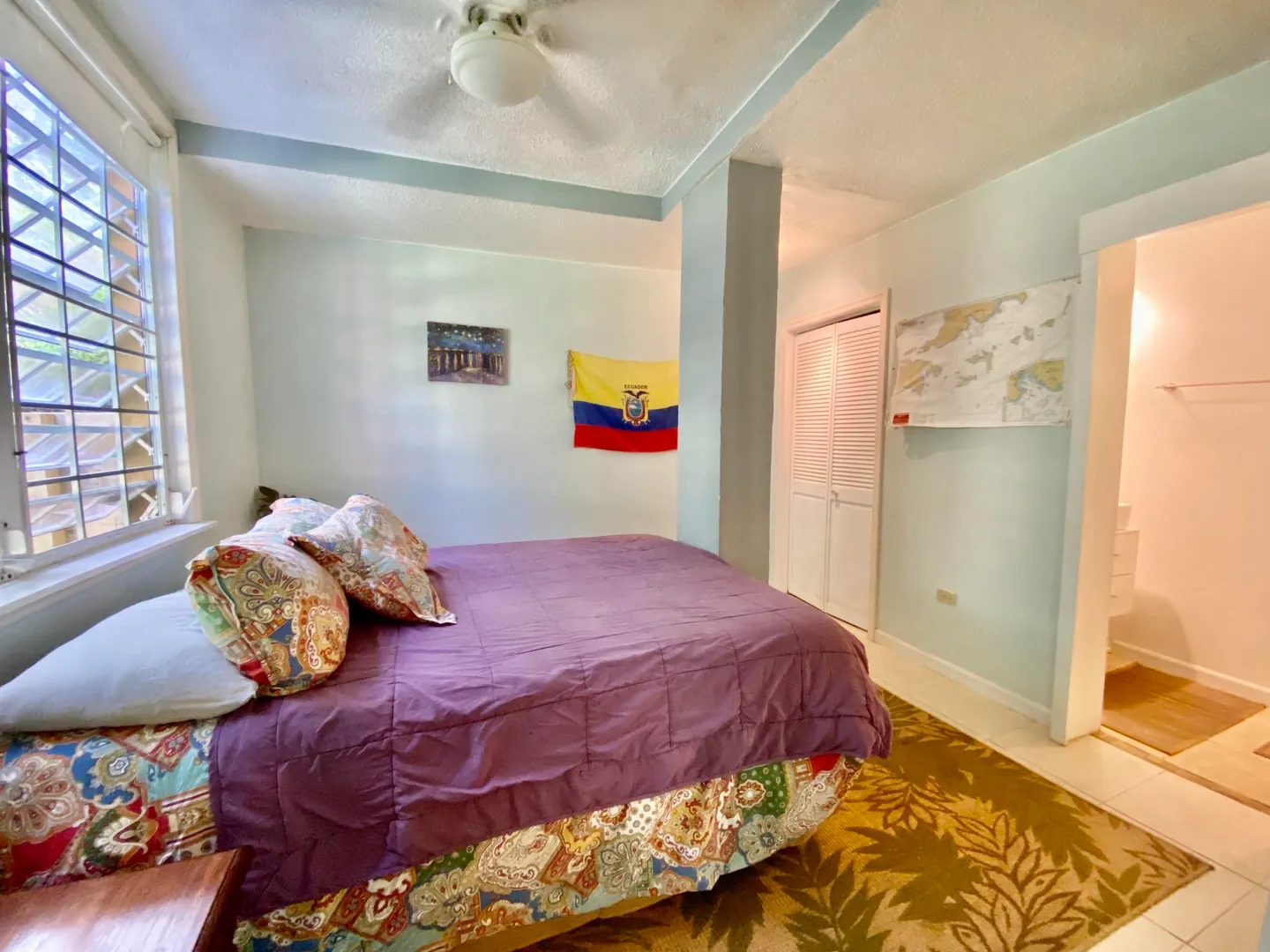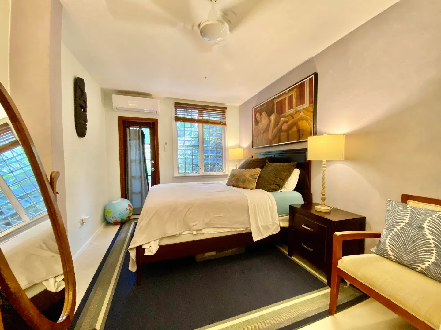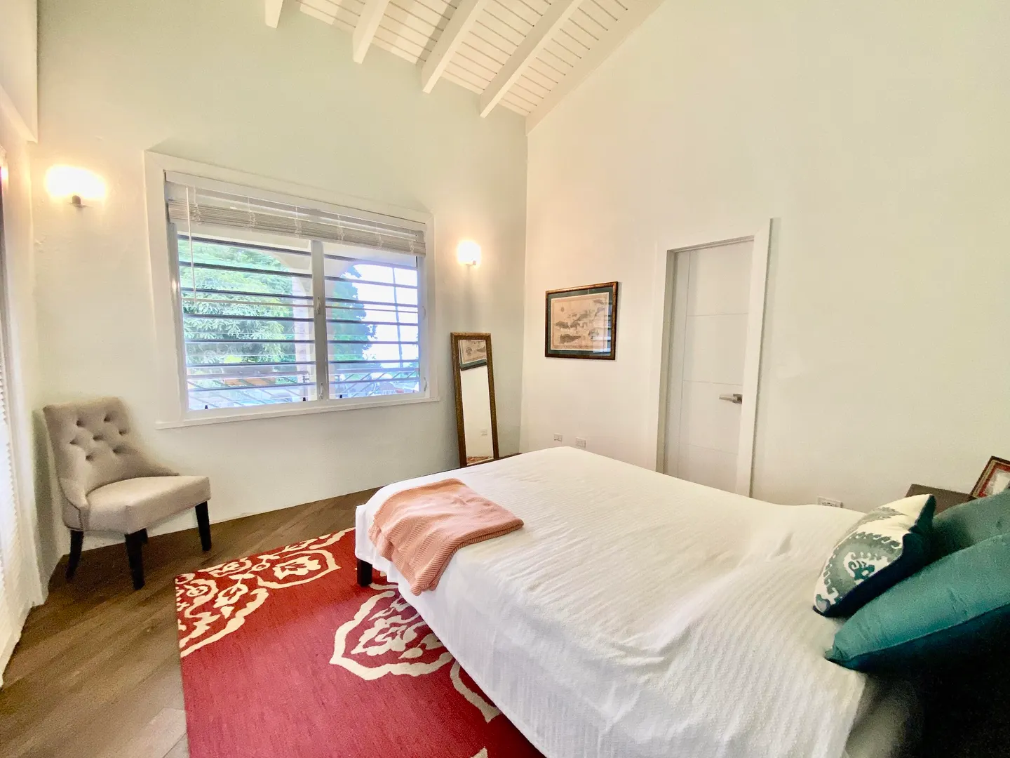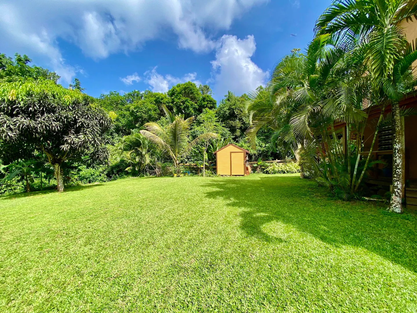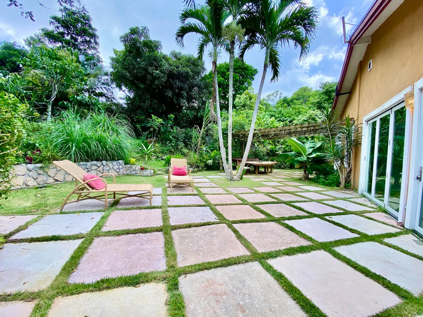 This house is located on the tropical, lush north side of St. Thomas surrounded by various fruit trees, flat green yard space and a serene outdoor dining area. This well-built concrete house offers 4 bedrooms and 3 bathrooms with an office upstairs and a mother-in-law suite below. There is also a 2 bedroom/1.5 bathroom apartment below for rental income or guests. The main house and the mother-in-law suite are connected to solar and has net metering. The house is set up to add more panels so you can include the apartment. Two 30K gallon cisterns hold more than enough water for a full house!