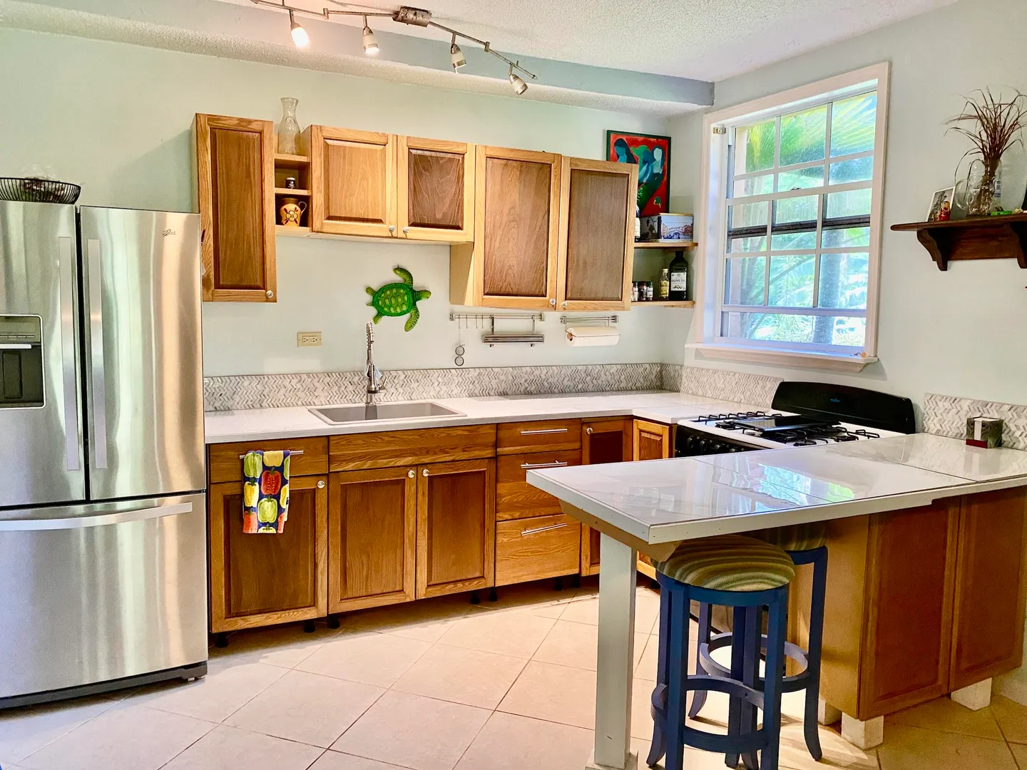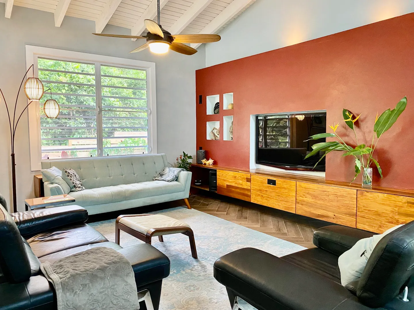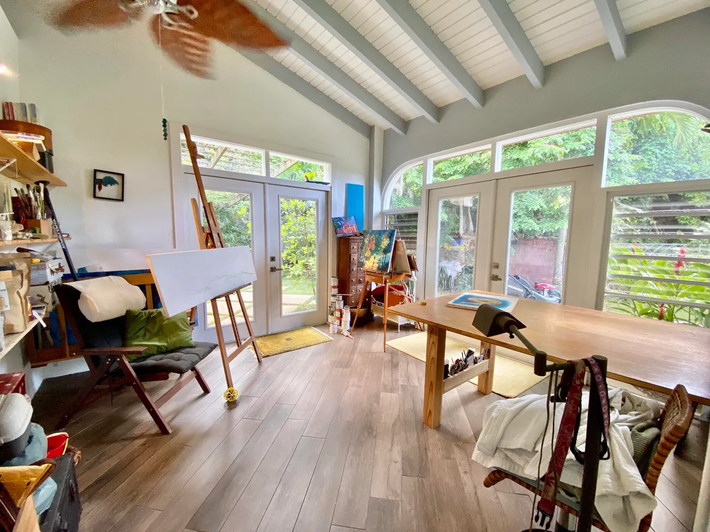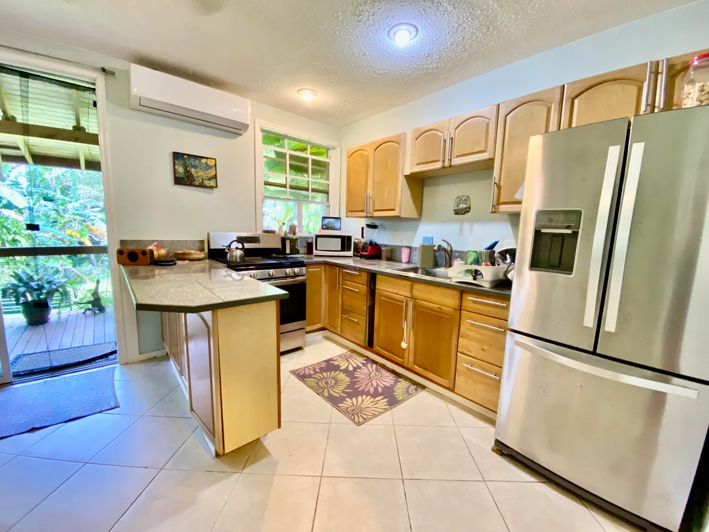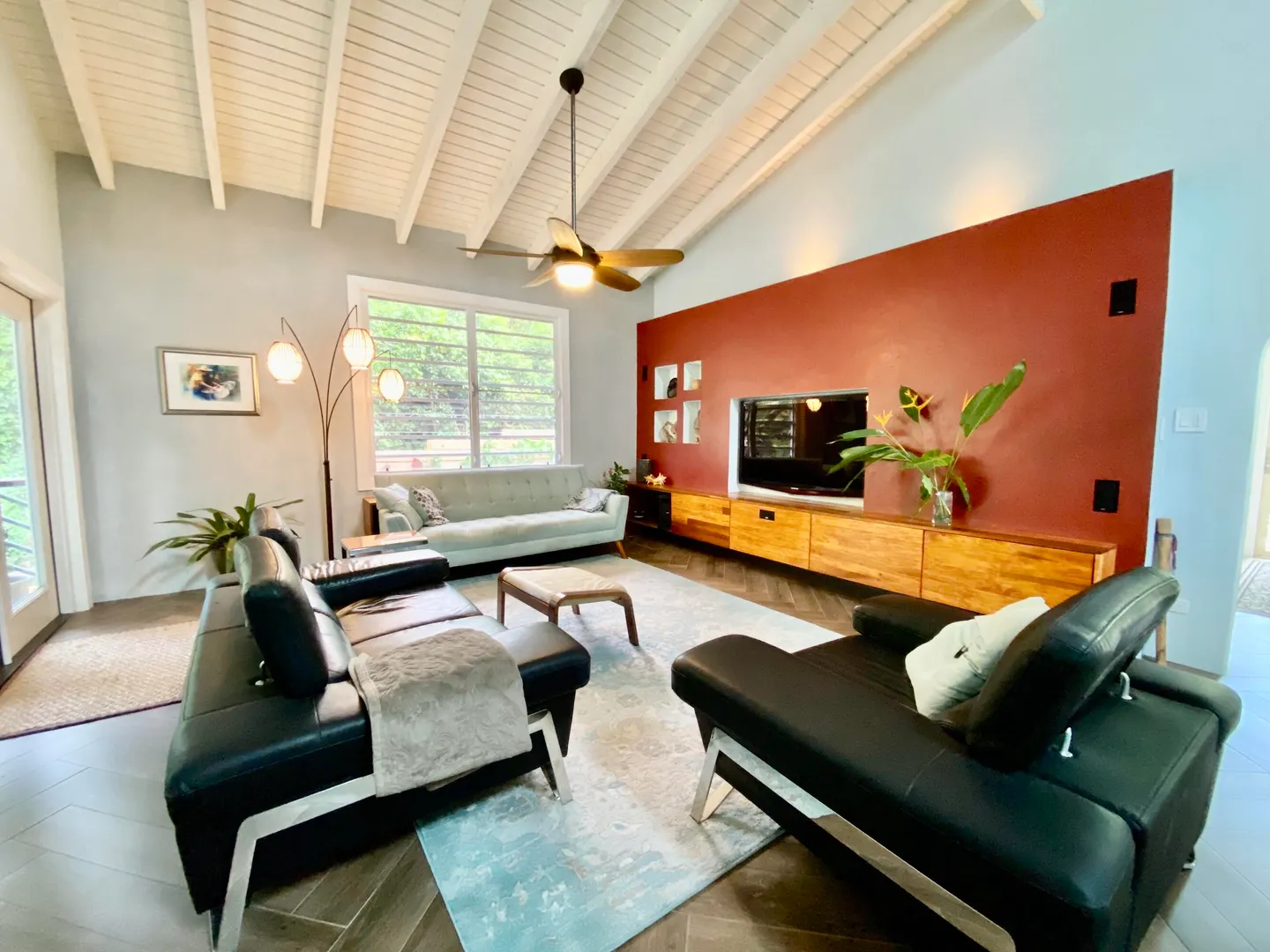 This house is located on the tropical, lush north side of St. Thomas surrounded by various fruit trees, flat green yard space and a serene outdoor dining area. This well-built concrete house offers 4 bedrooms and 3 bathrooms with an office upstairs and a mother-in-law suite below. There is also a 2 bedroom/1.5 bathroom apartment below for rental income or guests. The main house and the mother-in-law suite are connected to solar and has net metering. The house is set up to add more panels so you can include the apartment. Two 30K gallon cisterns hold more than enough water for a full house!