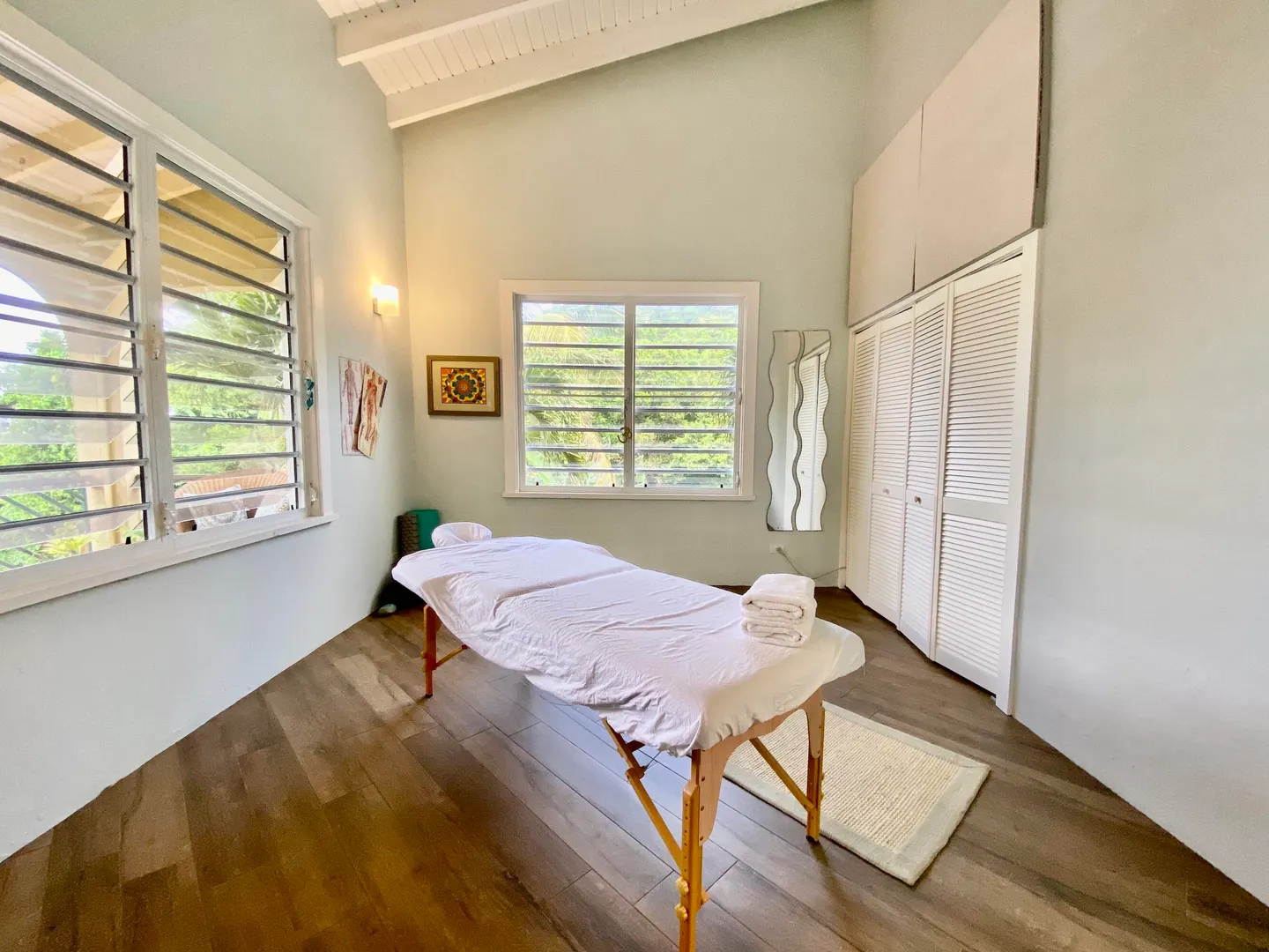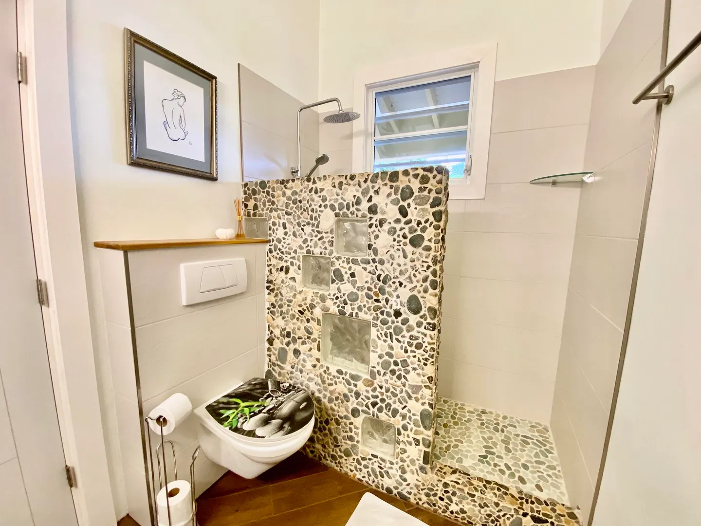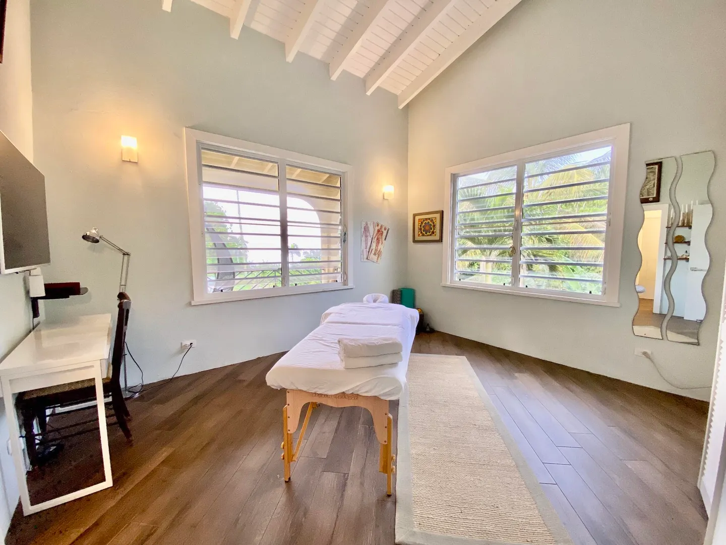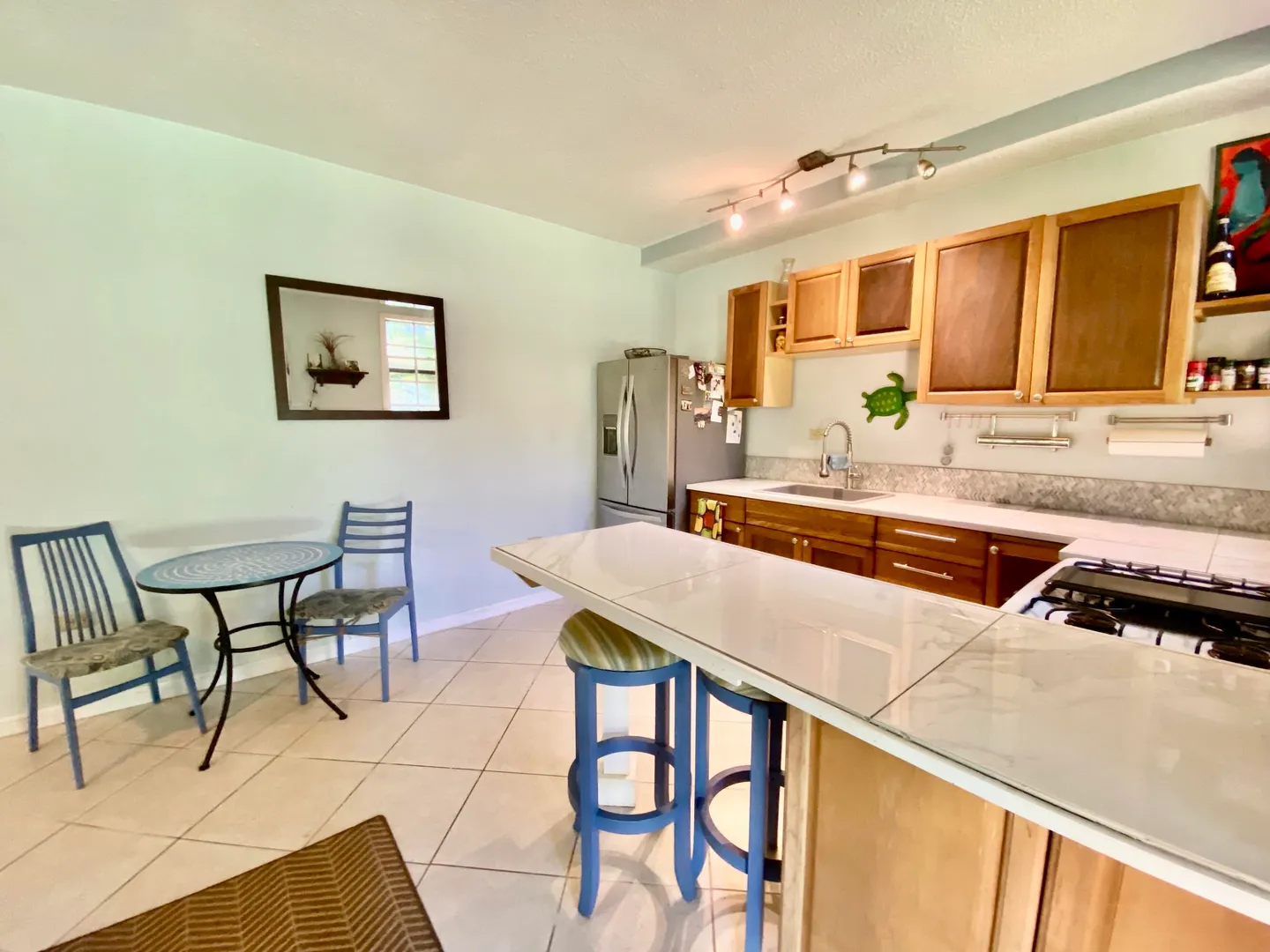This house is located on the tropical, lush north side of St. Thomas surrounded by various fruit trees, flat green yard space and a serene outdoor dining area. This well-built concrete house offers 4 bedrooms and 3 bathrooms with an office upstairs and a mother-in-law suite below. There is also a 2 bedroom/1.5 bathroom apartment below for rental income or guests. The main house and the mother-in-law suite are connected to solar and has net metering. The house is set up to add more panels so you can include the apartment. Two 30K gallon cisterns hold more than enough water for a full house!