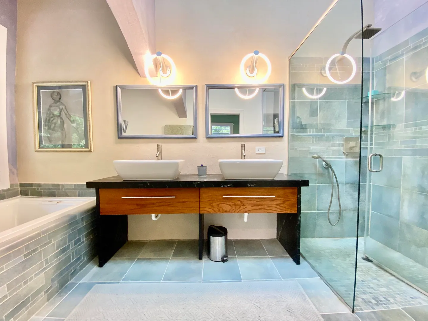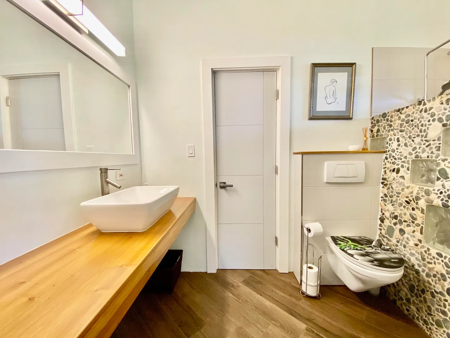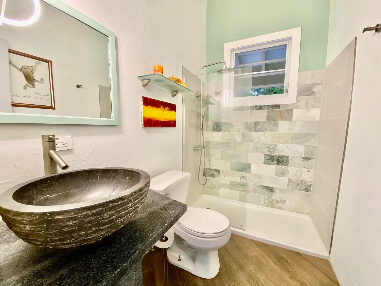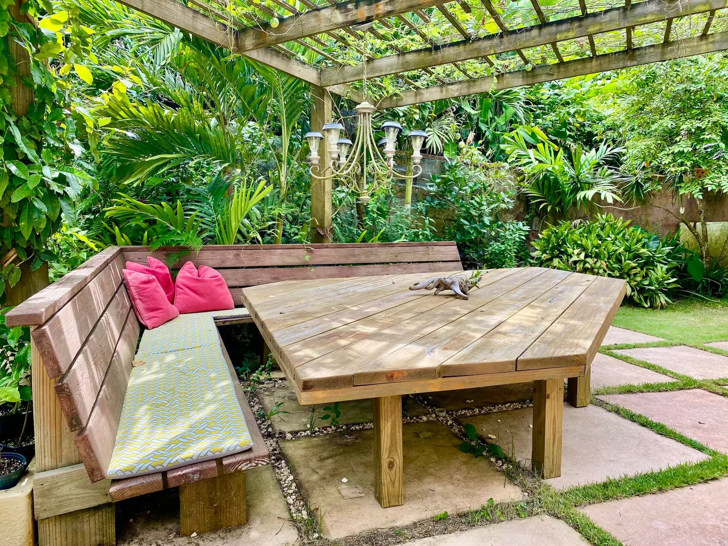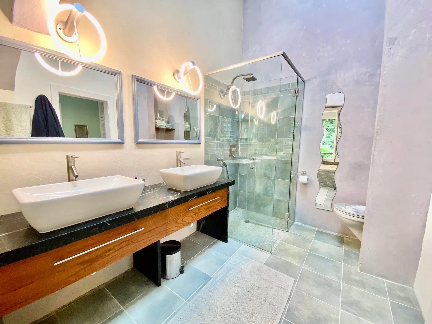 This house is located on the tropical, lush north side of St. Thomas surrounded by various fruit trees, flat green yard space and a serene outdoor dining area. This well-built concrete house offers 4 bedrooms and 3 bathrooms with an office upstairs and a mother-in-law suite below. There is also a 2 bedroom/1.5 bathroom apartment below for rental income or guests. The main house and the mother-in-law suite are connected to solar and has net metering. The house is set up to add more panels so you can include the apartment. Two 30K gallon cisterns hold more than enough water for a full house!