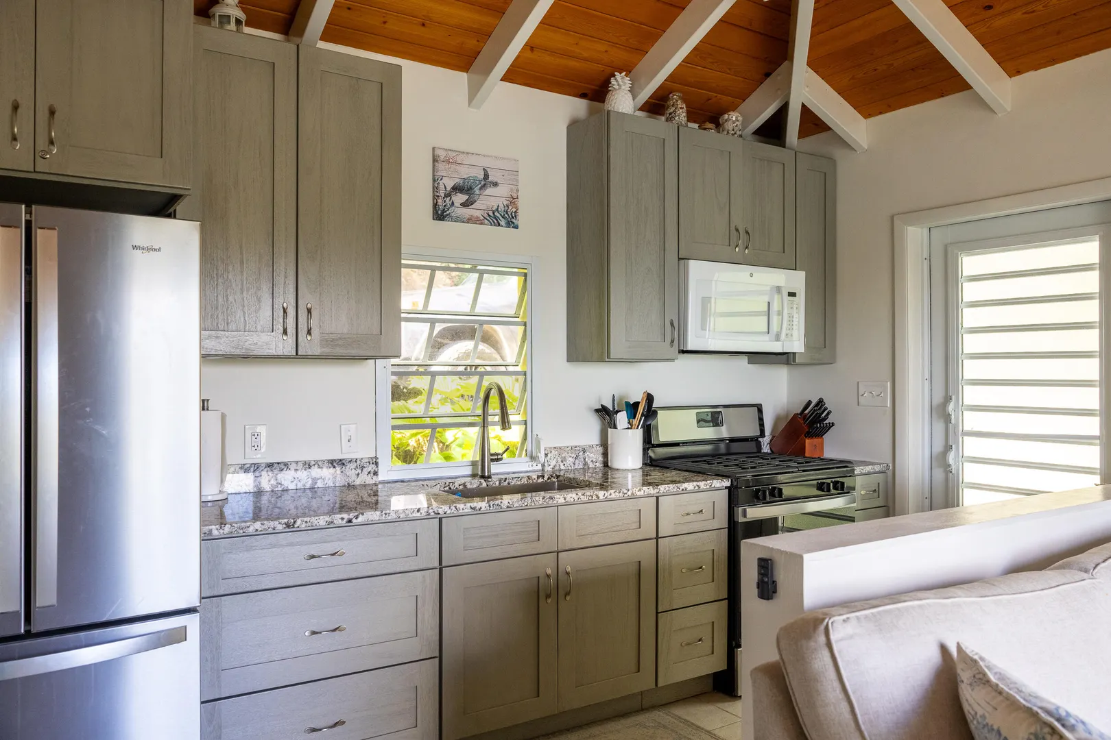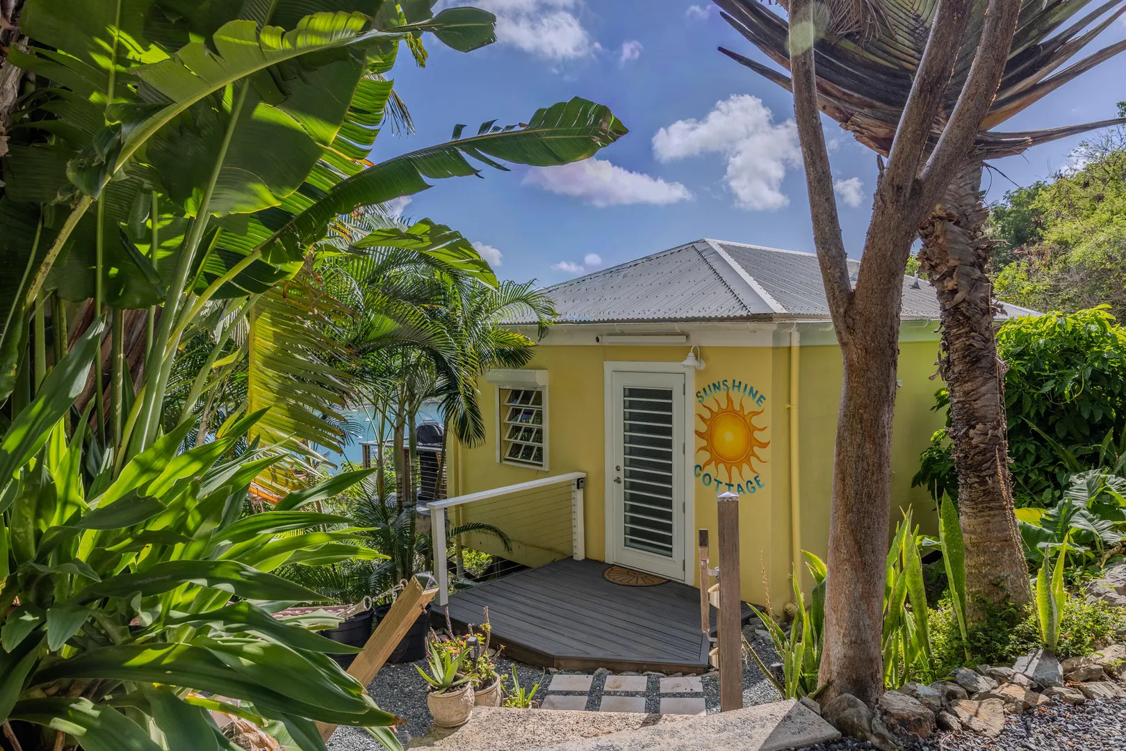Turn-key, bright, and breezy, Sunshine Cottage overlooks Coral Bay Harbor, with cooling trade winds and sunrise views. The property, with lush landscaping offers privacy with a shared gated, paved drive serving just one neighboring home, and is located just up the hill from Coral Bay's restaurants and grocery stores. Beach access is only 10 minutes away. Thoughtful updates make this comfortable and efficient space an easy full-time residence or a continued short-term rental, including eucalyptus cabinetry, granite countertops, composite decking, pergola and sunshade, grill, stainless cable railings, A/C, and added interior and lower-level storage.Well maintained, conveniently located, and with a history of five-star reviews, this property offers a great opportunity for its next owner.