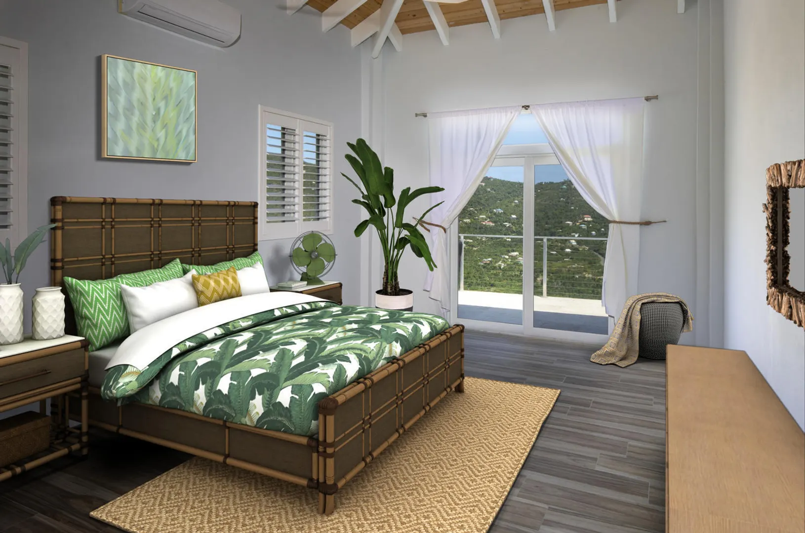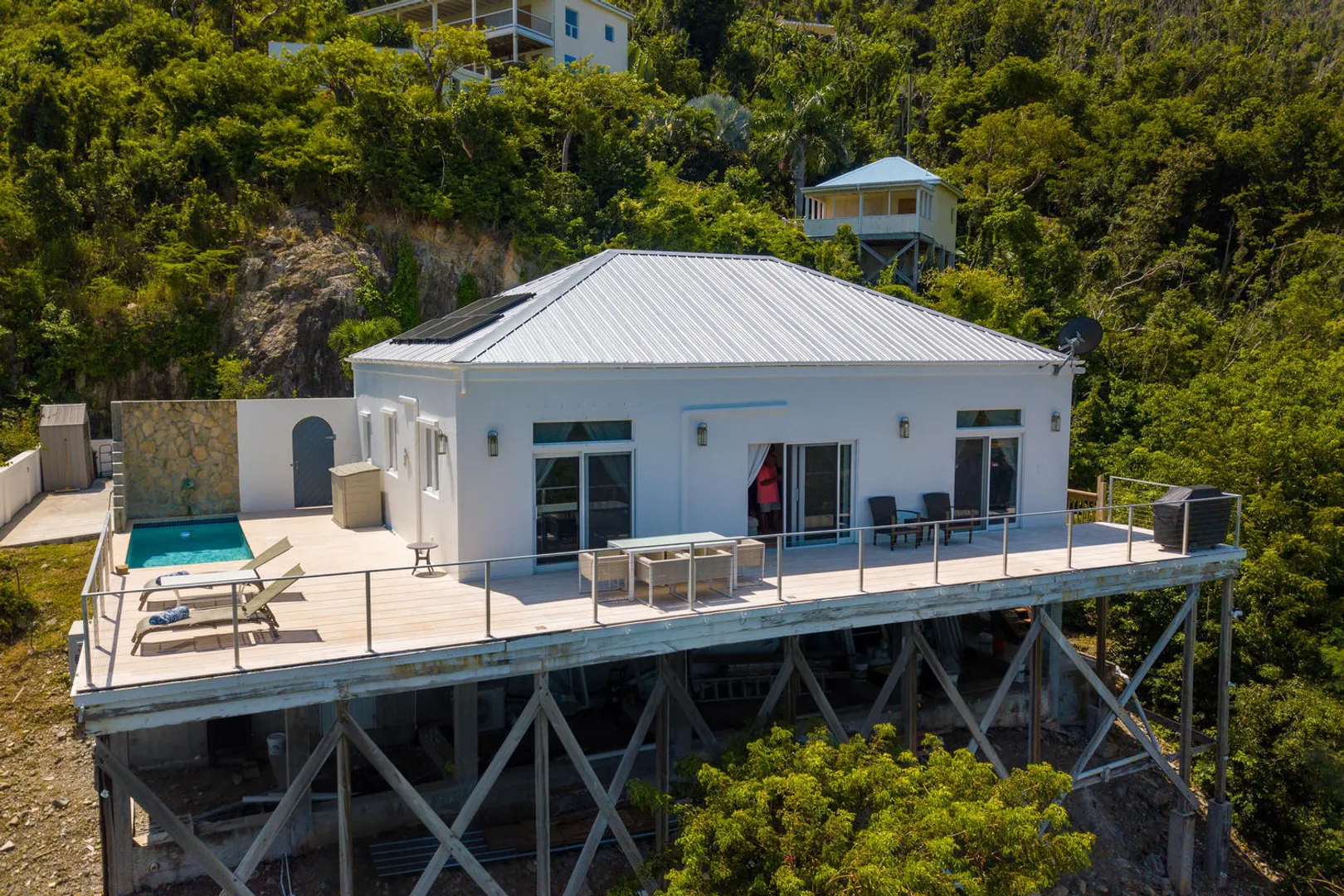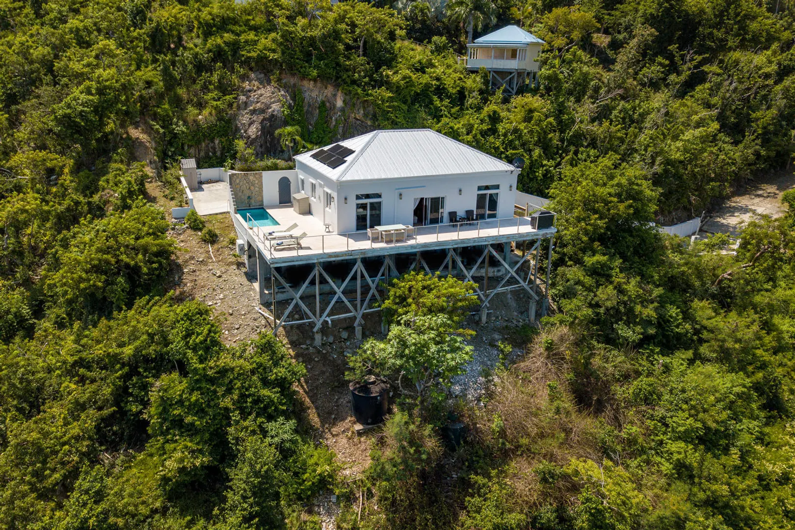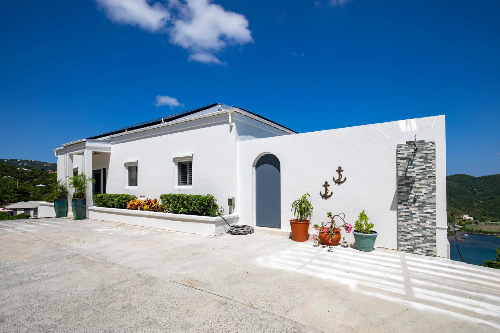 Modern luxury meets coastal casual in this masonry constructed villa with incredible views of Coral Bay, East End, Caribbean Sea & the BVI's. Villa Lair-a'Mar has been completely remodeled top to bottom with a painstaking eye on fine design details and finishes. All new appliances, solar w/2 Tesla Powerwalls, A/C, cabinetry, hot water heater, furniture and lighting/plumbing fixtures leave nothing for the new owner but to enjoy. This home boasts an air-conditioned open floor plan with modern kitchen & large seating area for entertaining or lounging. Each large, air-conditioned king suite has direct access to the expansive deck area and pool. The single level floor plan provides easy access to all this villa has to offer and the oversize drive with turn-around space is an island rarity.Villa Lair-a'Mar represents a rare opportunity for an as-new, stunningly designed and decorated vacation or short-term rental home where every detail has been attended to. All of the thoughtful upgrades you would want have been added including 6.5 KW solar with net-metering and 2 Tesla PowerWalls, split A/C in each room, energy efficient Big-Ass Fans, UV water treatment, all new bathrooms, new designer chef's kitchen and stainless-steel appliances, including a garbage disposal, with quartz countertops, new hot water heater, new roof and much more. Prior to the complete remodel this villa was a highly successful short-term rental (FKA Villa Fun & Contentment). Lower level of the property provides opportunity for additional expansion of living space or stand-alone apartment. Seller is licensed Realtor.