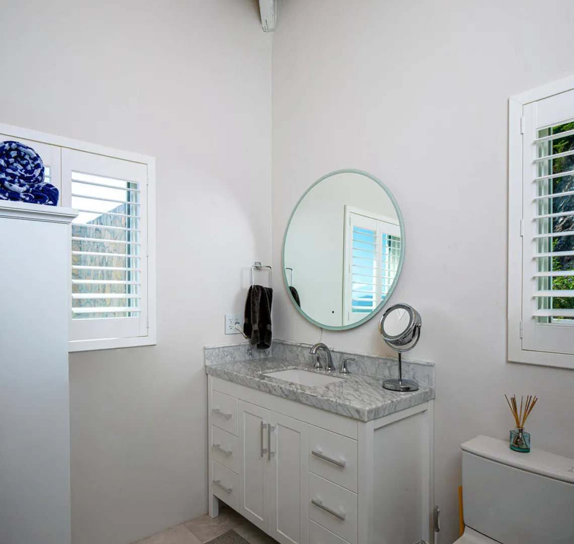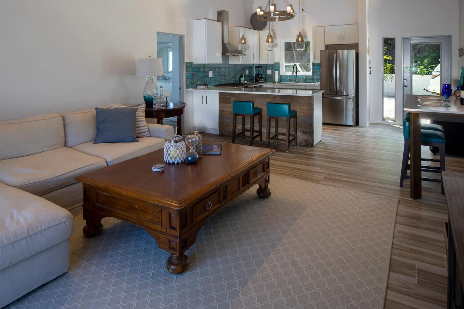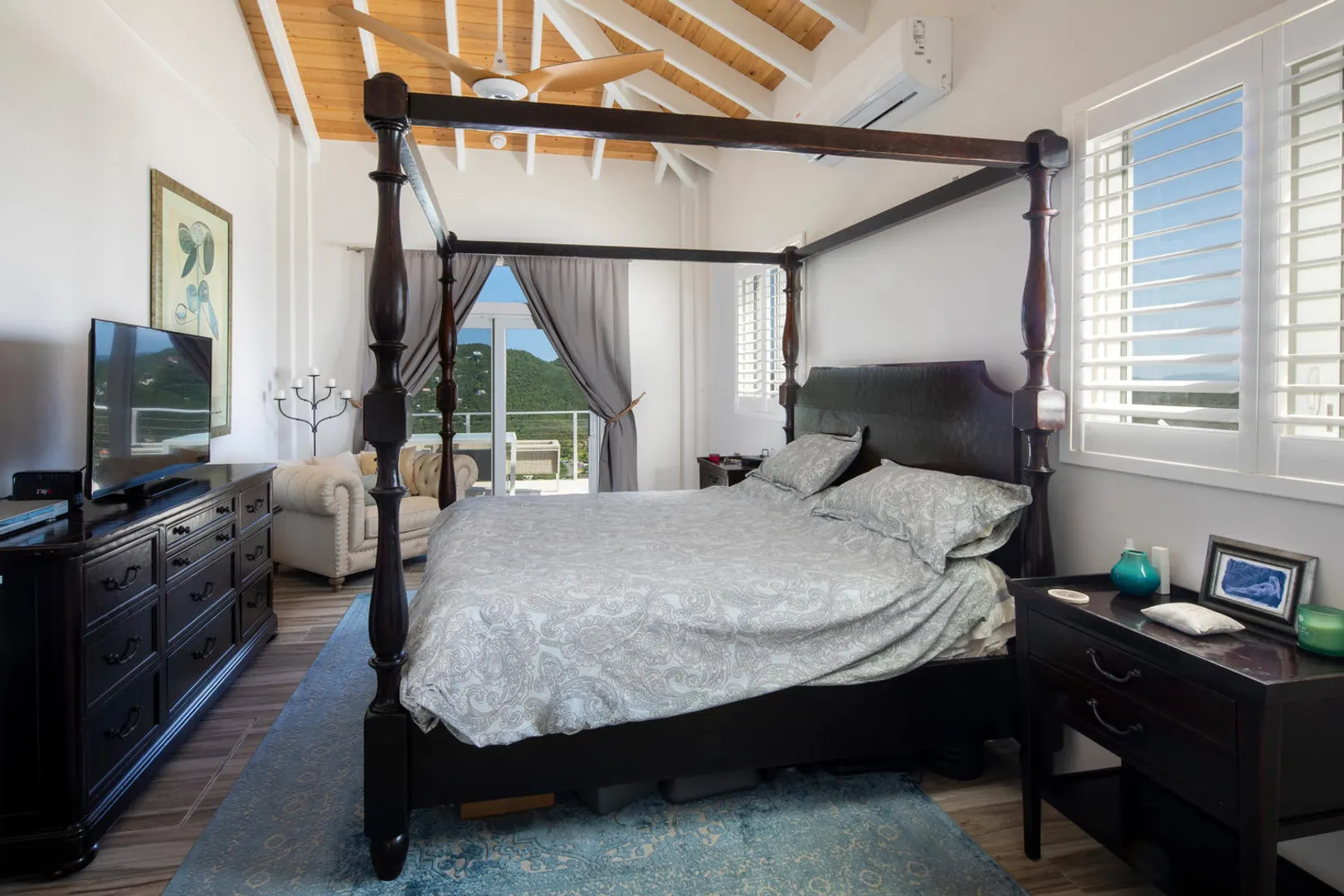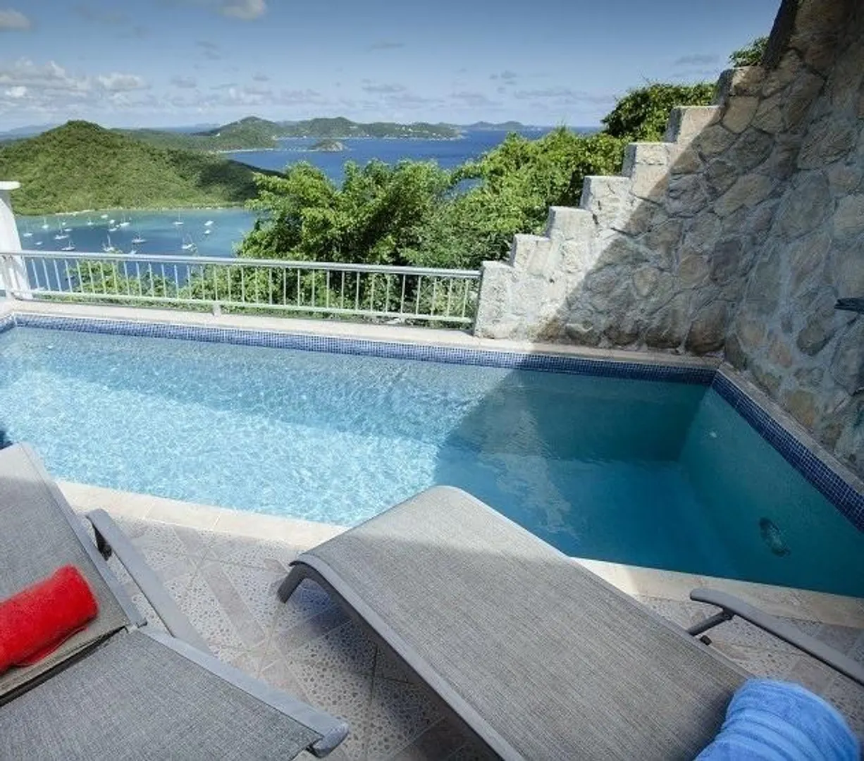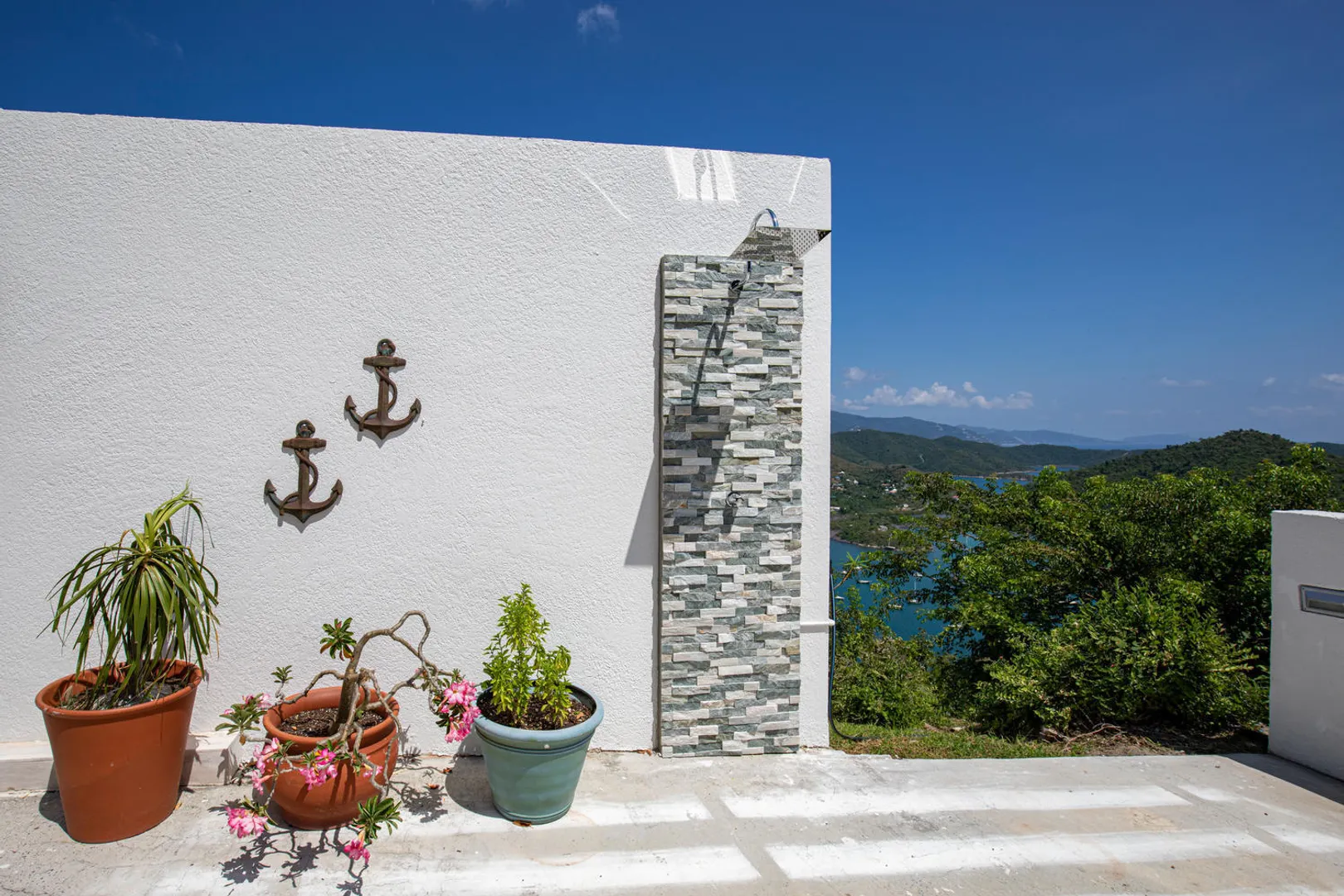 Modern luxury meets coastal casual in this masonry constructed villa with incredible views of Coral Bay, East End, Caribbean Sea & the BVI's. Villa Lair-a'Mar has been completely remodeled top to bottom with a painstaking eye on fine design details and finishes. All new appliances, solar w/2 Tesla Powerwalls, A/C, cabinetry, hot water heater, furniture and lighting/plumbing fixtures leave nothing for the new owner but to enjoy. This home boasts an air-conditioned open floor plan with modern kitchen & large seating area for entertaining or lounging. Each large, air-conditioned king suite has direct access to the expansive deck area and pool. The single level floor plan provides easy access to all this villa has to offer and the oversize drive with turn-around space is an island rarity.Villa Lair-a'Mar represents a rare opportunity for an as-new, stunningly designed and decorated vacation or short-term rental home where every detail has been attended to. All of the thoughtful upgrades you would want have been added including 6.5 KW solar with net-metering and 2 Tesla PowerWalls, split A/C in each room, energy efficient Big-Ass Fans, UV water treatment, all new bathrooms, new designer chef's kitchen and stainless-steel appliances, including a garbage disposal, with quartz countertops, new hot water heater, new roof and much more. Prior to the complete remodel this villa was a highly successful short-term rental (FKA Villa Fun & Contentment). Lower level of the property provides opportunity for additional expansion of living space or stand-alone apartment. Seller is licensed Realtor.