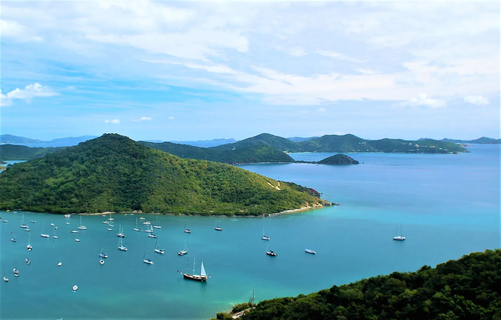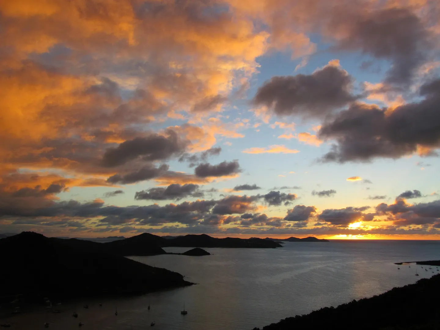 • View: British Virgin Islands, Caribbean, East/sunrise, Harbor, Mountain, Panoramic, Valley