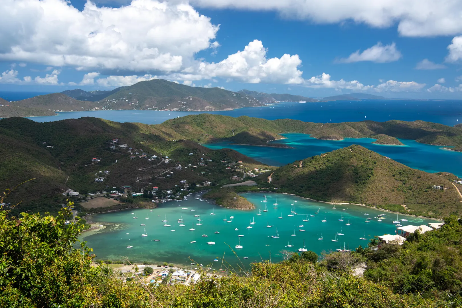 • View: British Virgin Islands, Caribbean, East/sunrise, Harbor, Mountain, Panoramic, South Shore, Valley
