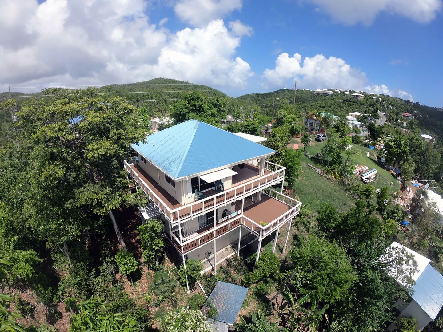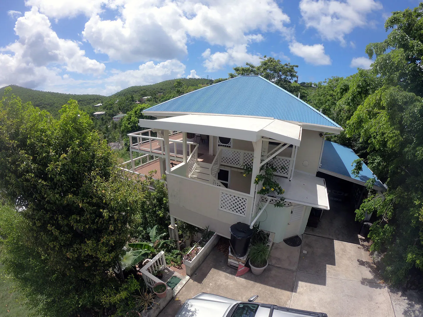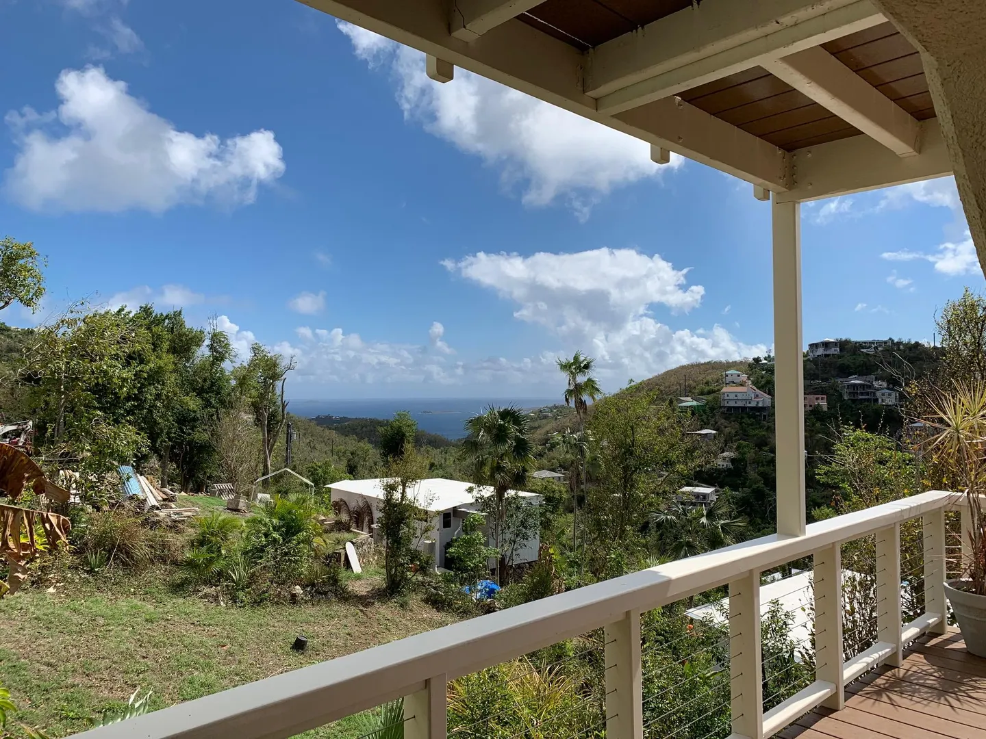 Masonry home with water views, easy access and lots of new improvements! The 4 bedroom / 3 bath main house would be a great family home and/or lots of short term rental potential. Interior access to all the bedrooms and a gardeners dream with gentle sloping yard area. There is a detached cottage perfect for a caretaker or additional rental income. New improvements include new windows, new metal roof, painting, new cable deck railings and new composite decking. Additional lower bedroom w) bath and sitting area would make a perfect safe room during stormy weather. Walk to Gift Hill School! Short drive to Cruz Bay. Must see!