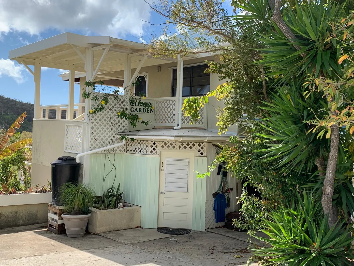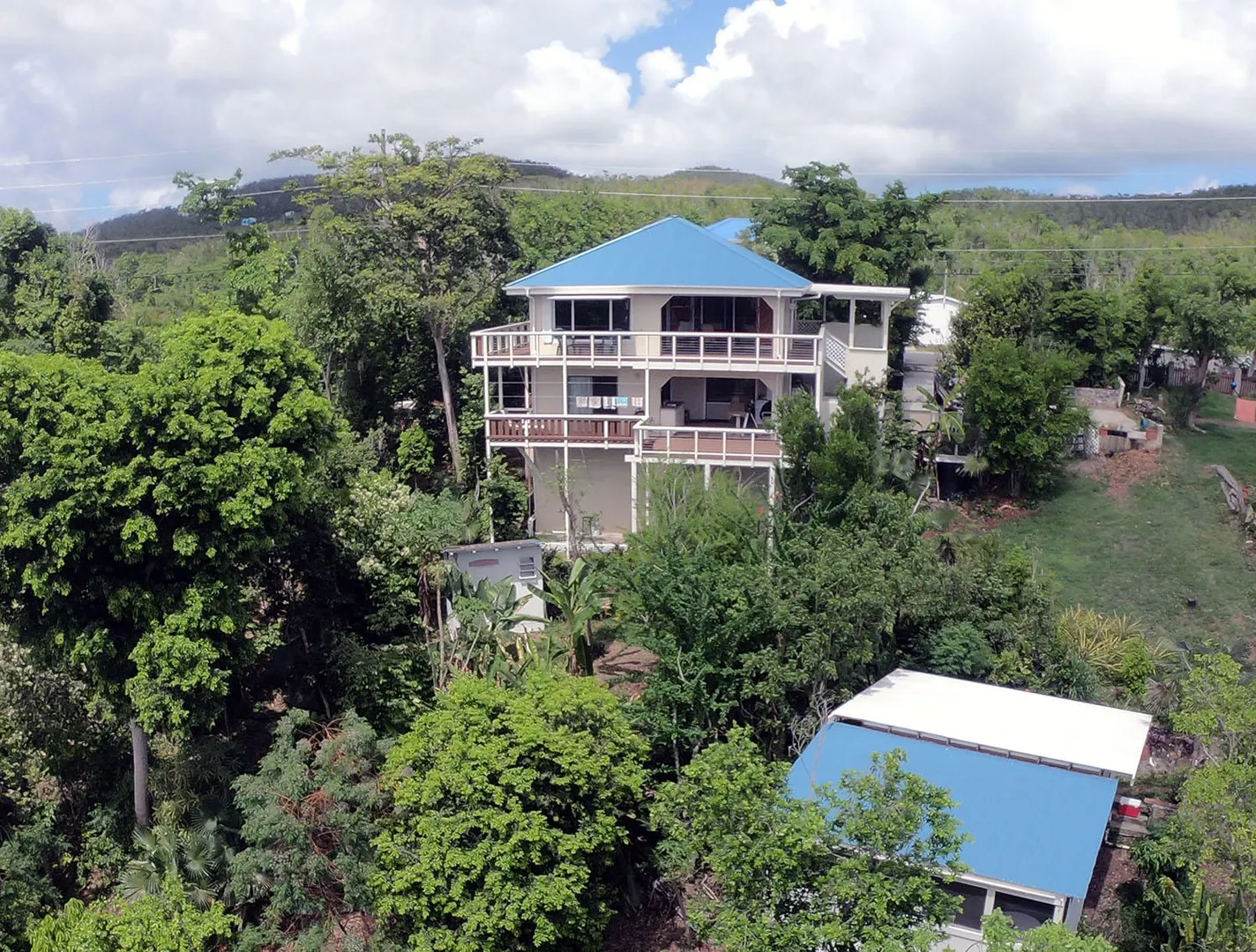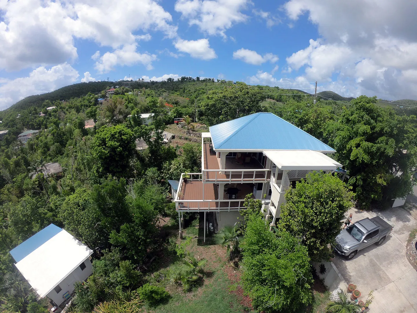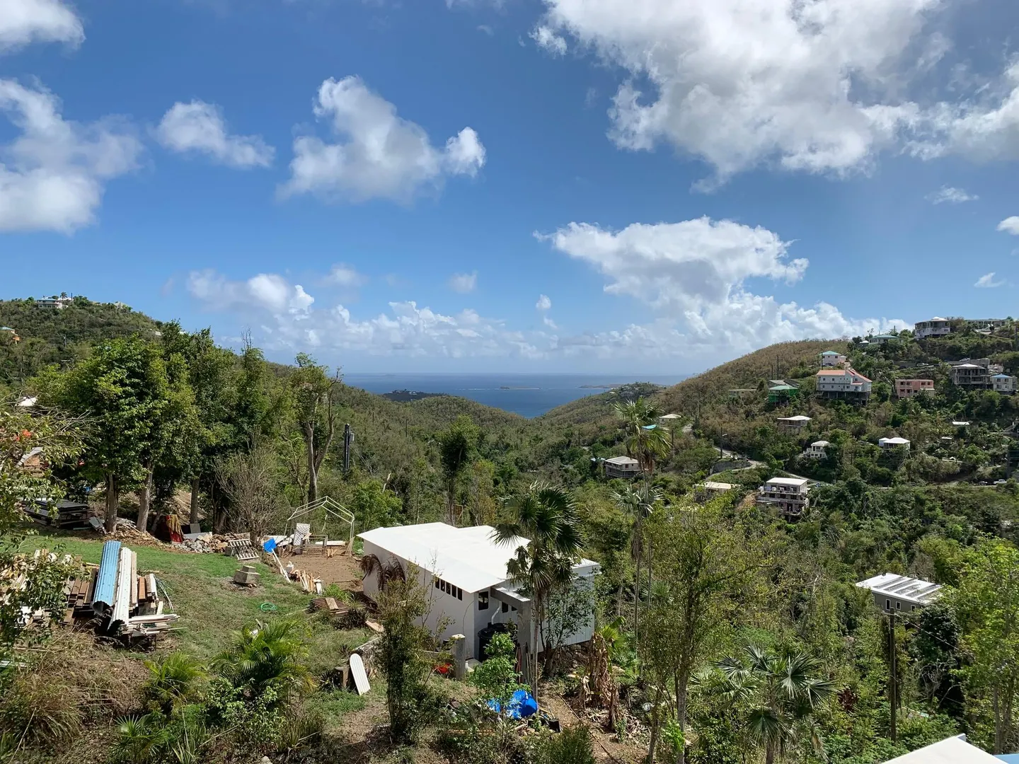 Masonry home with water views, easy access and lots of new improvements! The 4 bedroom / 3 bath main house would be a great family home and/or lots of short term rental potential. Interior access to all the bedrooms and a gardeners dream with gentle sloping yard area. There is a detached cottage perfect for a caretaker or additional rental income. New improvements include new windows, new metal roof, painting, new cable deck railings and new composite decking. Additional lower bedroom w) bath and sitting area would make a perfect safe room during stormy weather. Walk to Gift Hill School! Short drive to Cruz Bay. Must see!