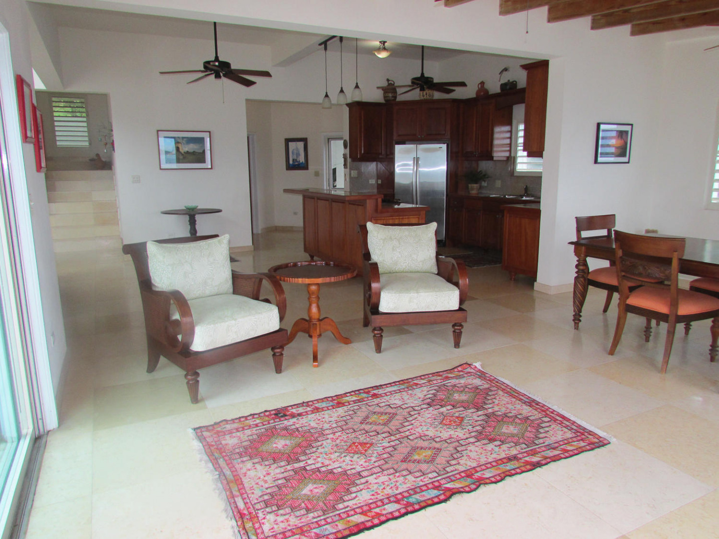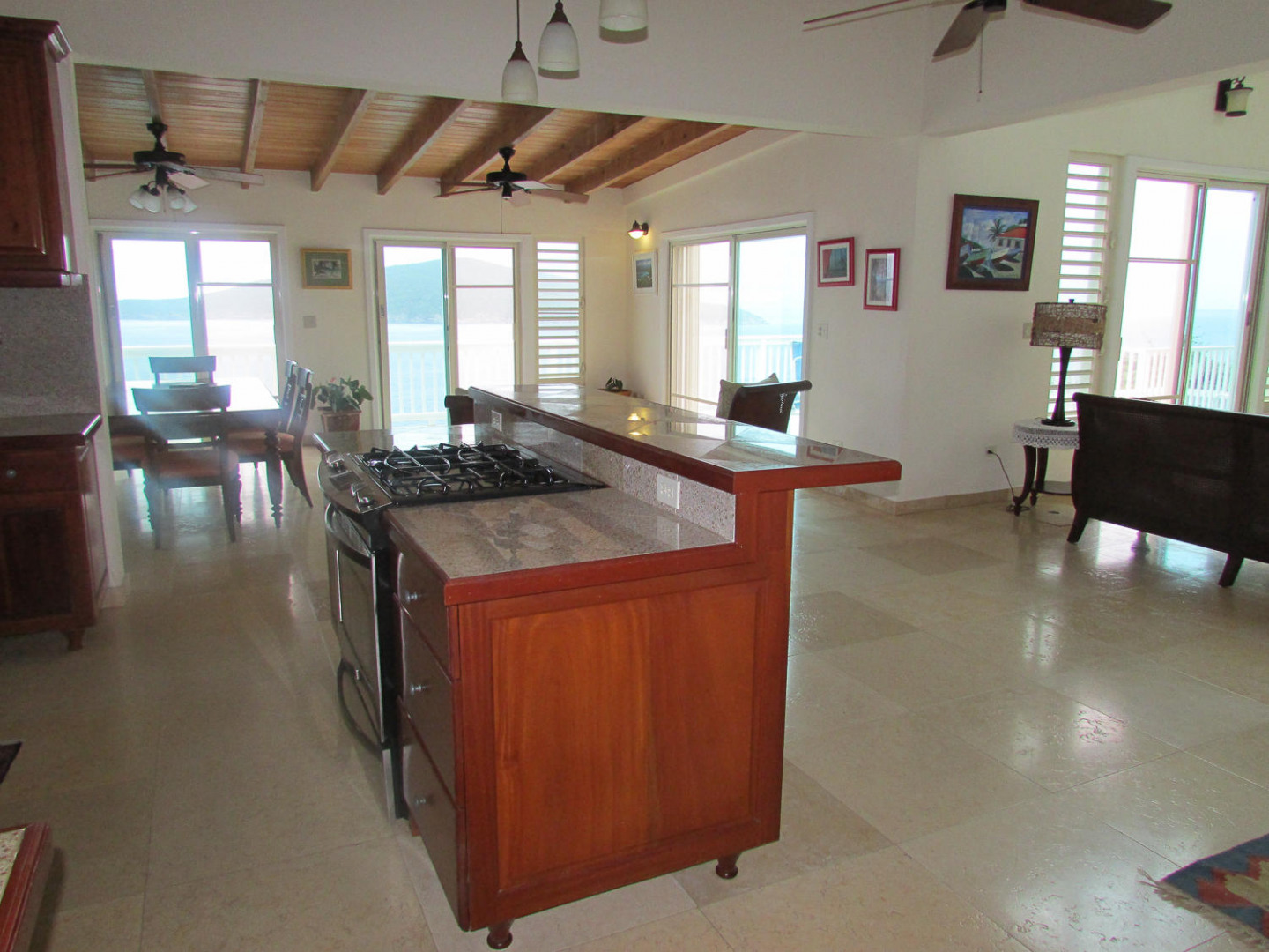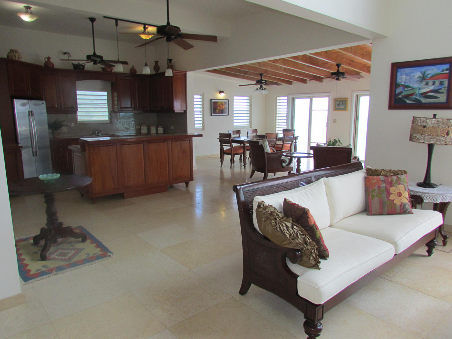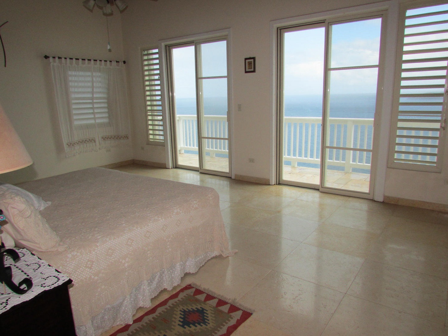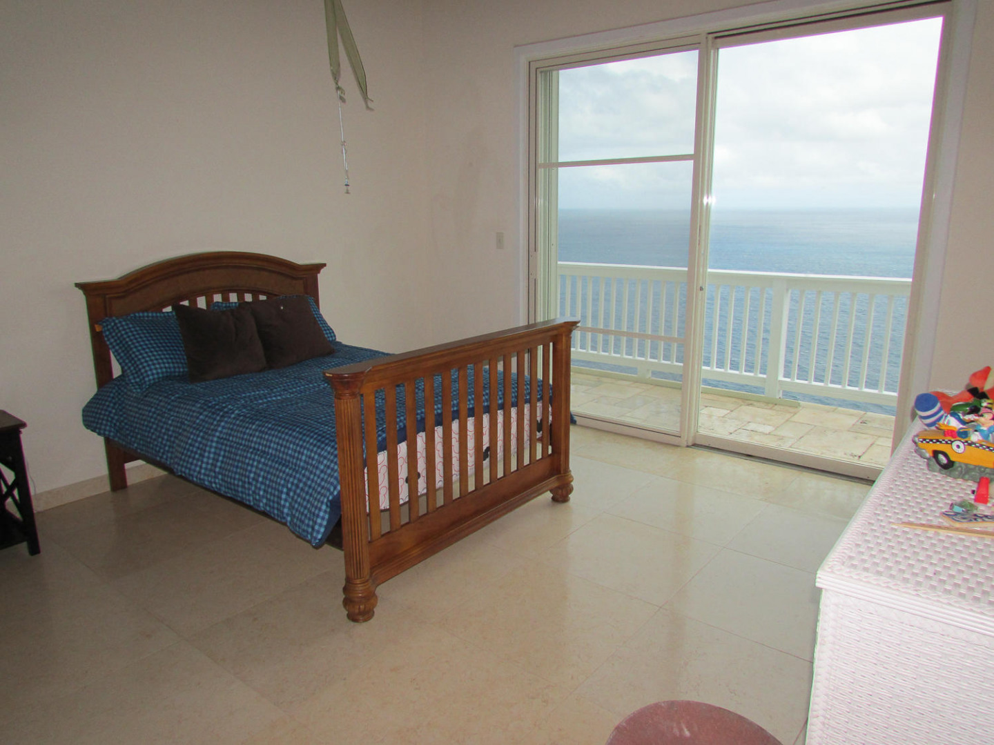 THIS WATERFRONT HOME offers dramatic down-island views and a dramatic cathedral-ceilinged Great Room. Ocean breezes and natural light pour into the Great Room's 2-story windows. Step onto the deck and watch the waves crashing below. Each bedroom has its own bathroom and waterfront balcony. Granite. Limestone tiles. Walking distance to Platform Beach and the spectacular Peterborg Point. See MORE:ADDITIONAL FEATURES... See "As-Built" under DOCUMENTS Tab Poured concrete structure Hurricane impact sliders and windows (except for louvered windows) 24-inch limestone tiles throughout Twelve foot to 25-foot ceilings Mahogany cabinetry Cypress ceilings Roughed-in for split AC units throughout the house Roughed-in apartment below the house Pool (to be tiled) is a monolithic pour with epoxy steel reinforcements Wetland septic system, 85-ft poured concrete trough from the 3X3 septic tank to the filtration bed Two hot water heaters Five cisterns, totalling 40,000 gallons. Owner says he's never bought water. Door handles, stainless steel